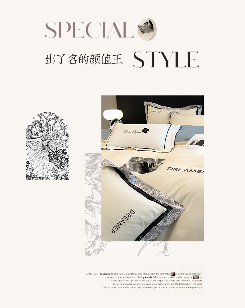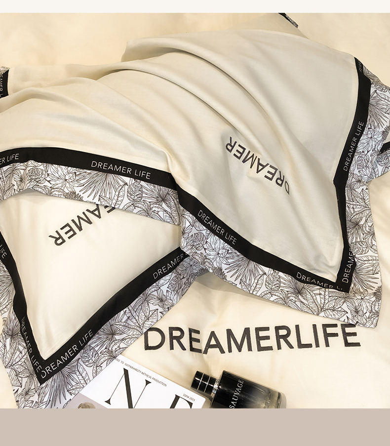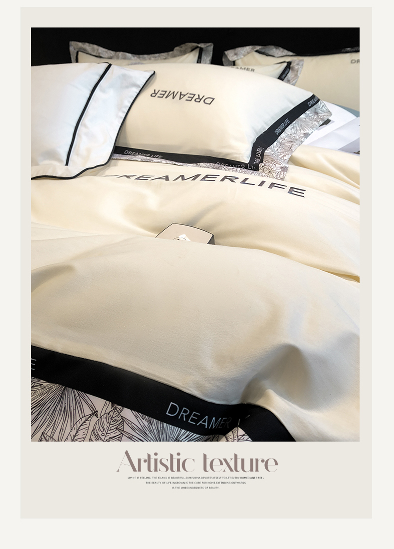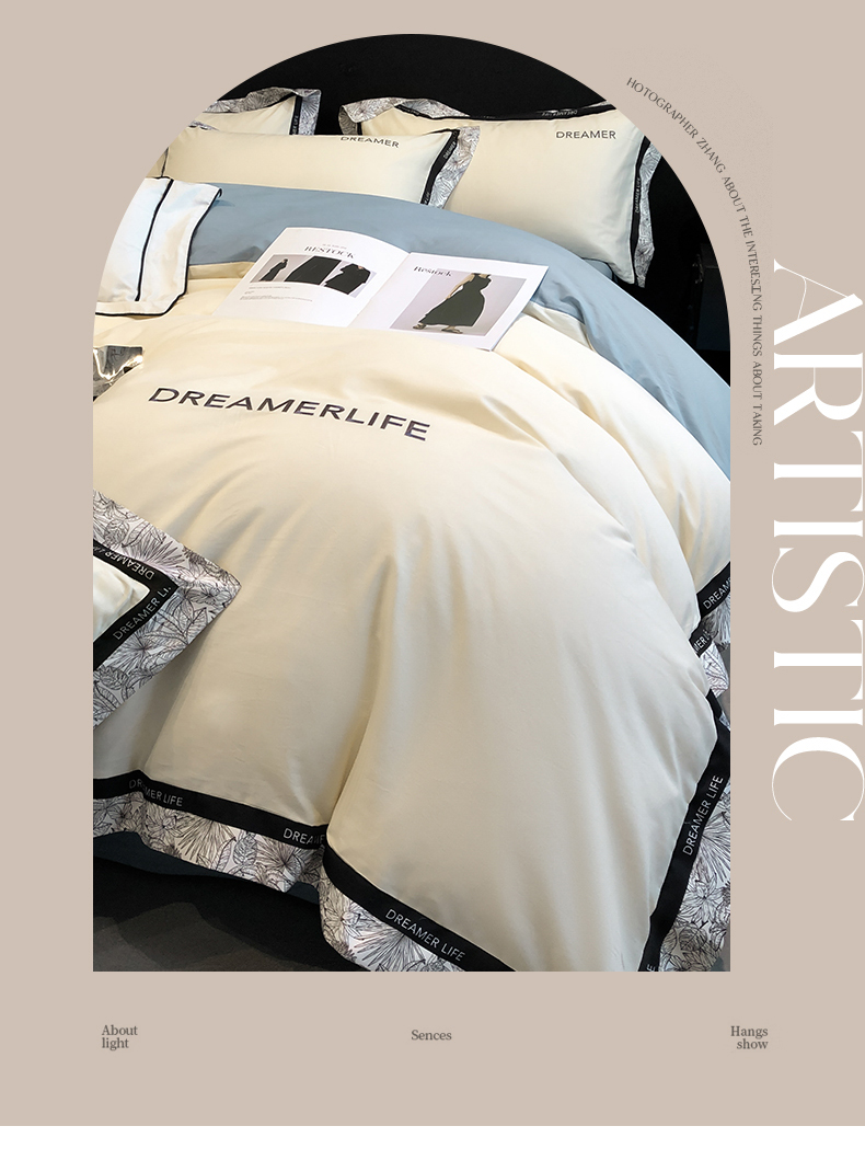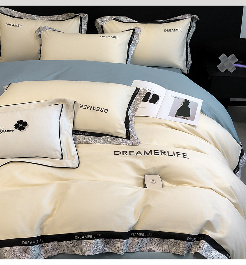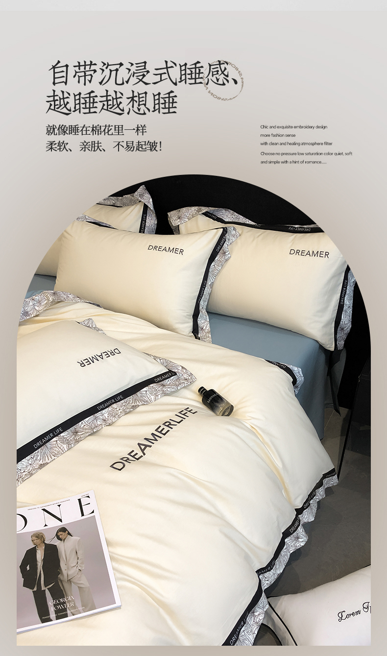 眷恋家纺 2024新款全棉数码拼接刺绣四件套 奶昔白+海清