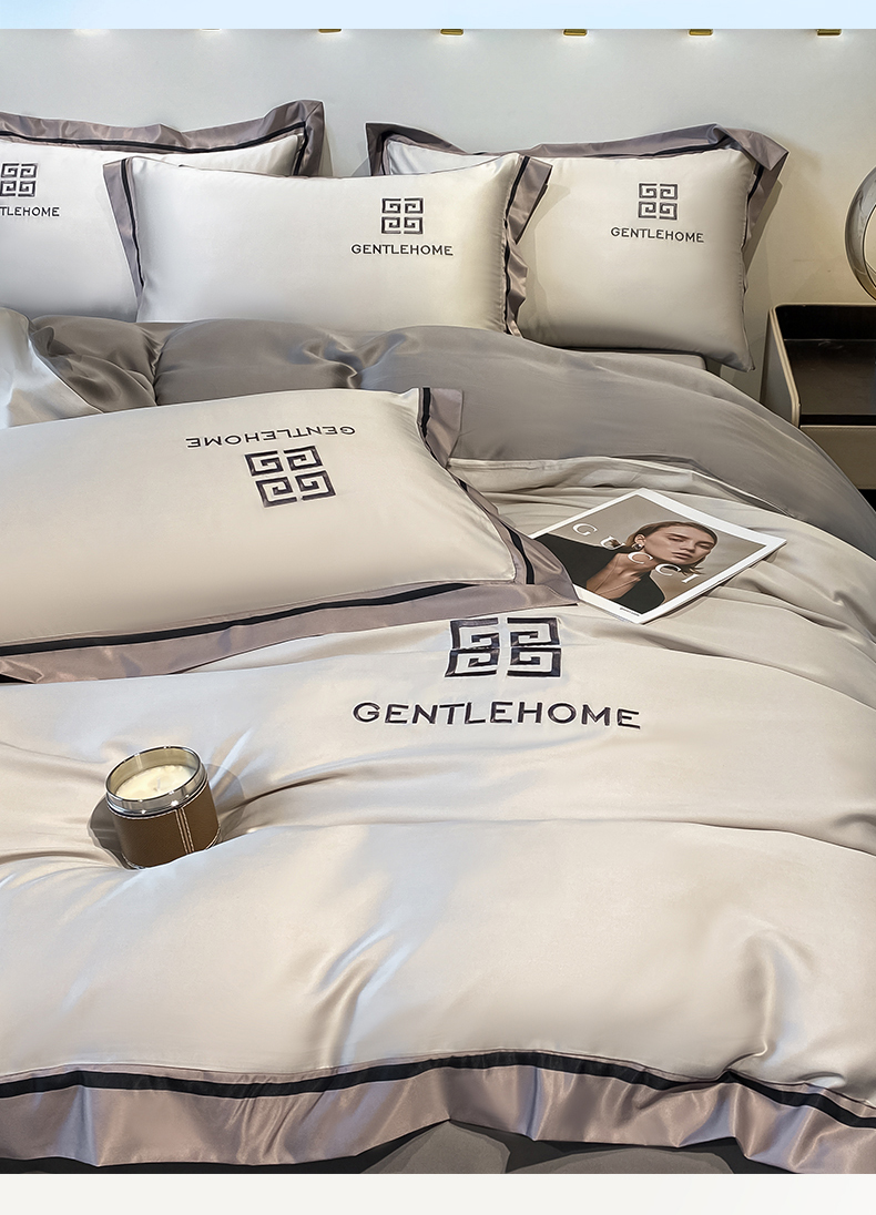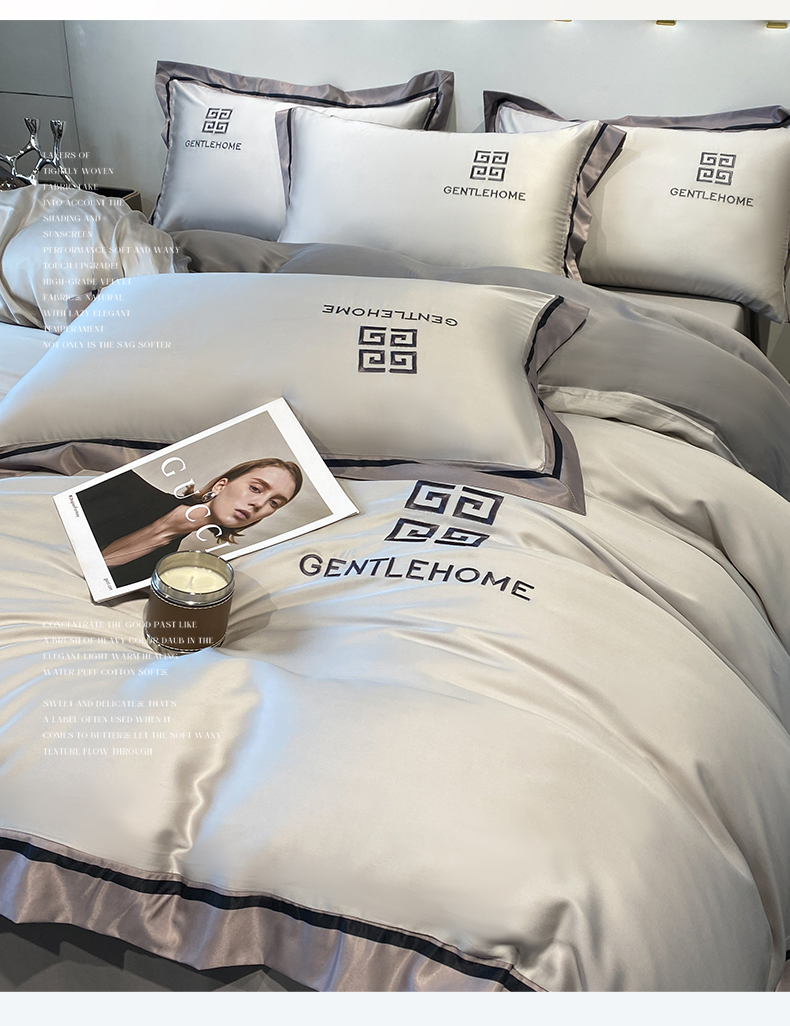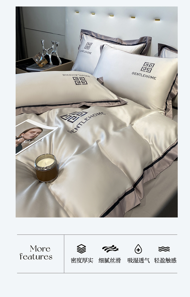 商品名称:眷恋家纺 2024新品水洗真丝宽边四件套-挪威系列 挪威-山灰+中灰