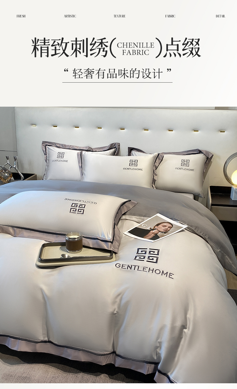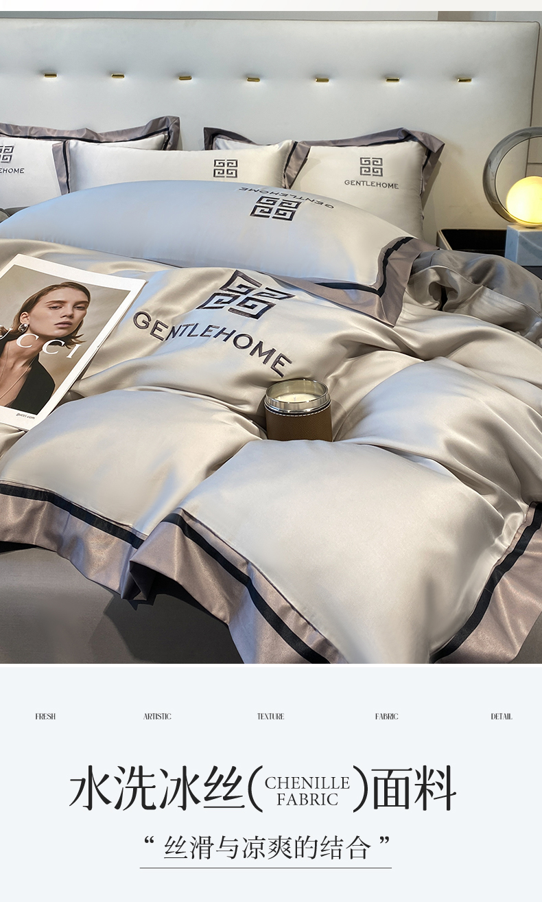 眷恋家纺 2024新品水洗真丝宽边四件套-挪威系列 挪威-山灰+中灰