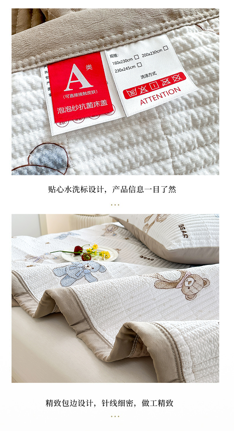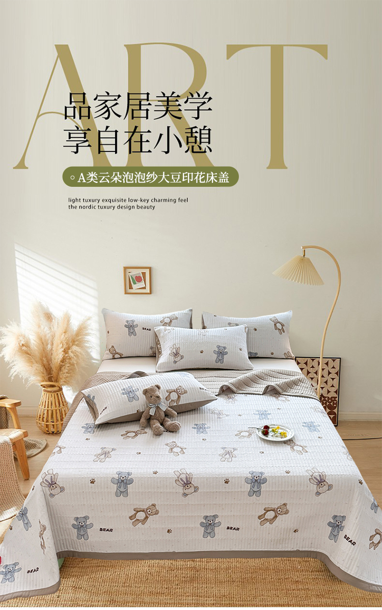 商品名称:(总)2025春夏A类小清新双层泡泡纱床盖三件套纯棉全棉双层纱棉麻床盖