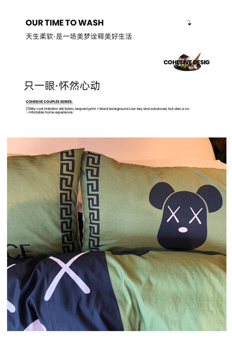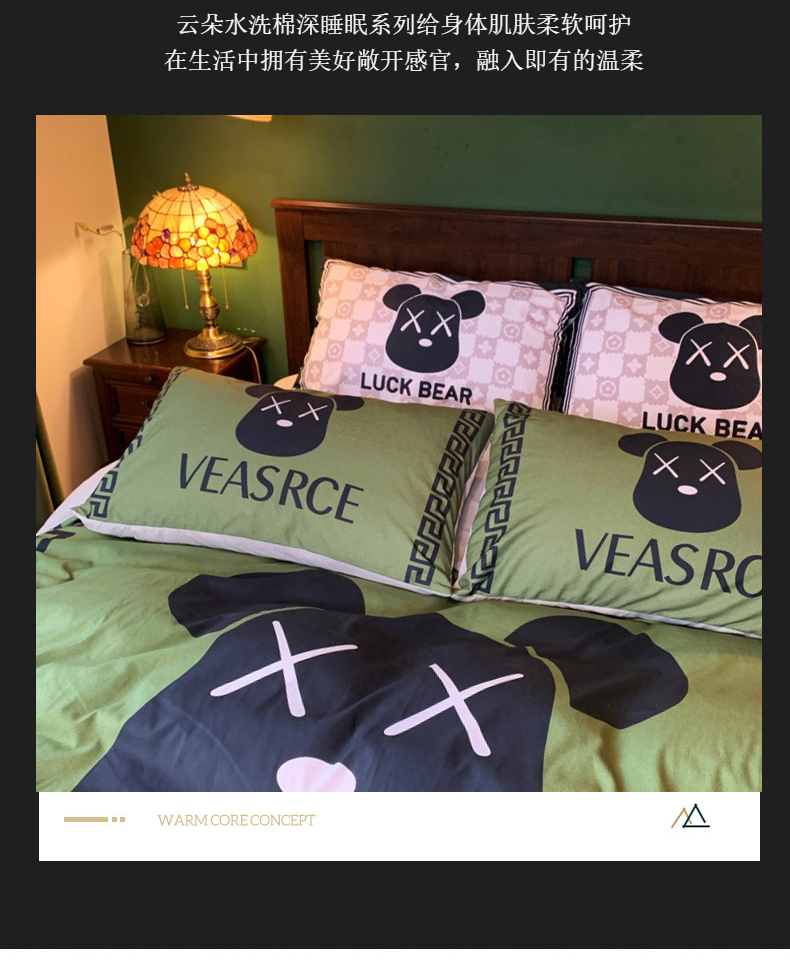 商品名称:色鬼布艺 2024新款花沐春夏云朵水洗棉四件套 【云朵棉】小绿熊