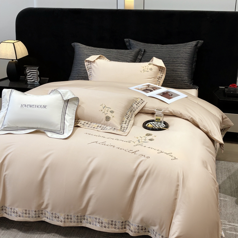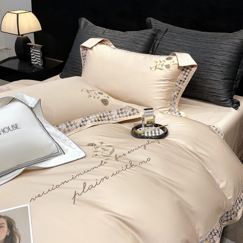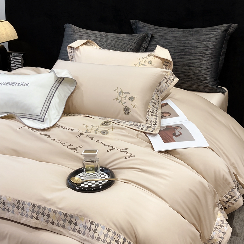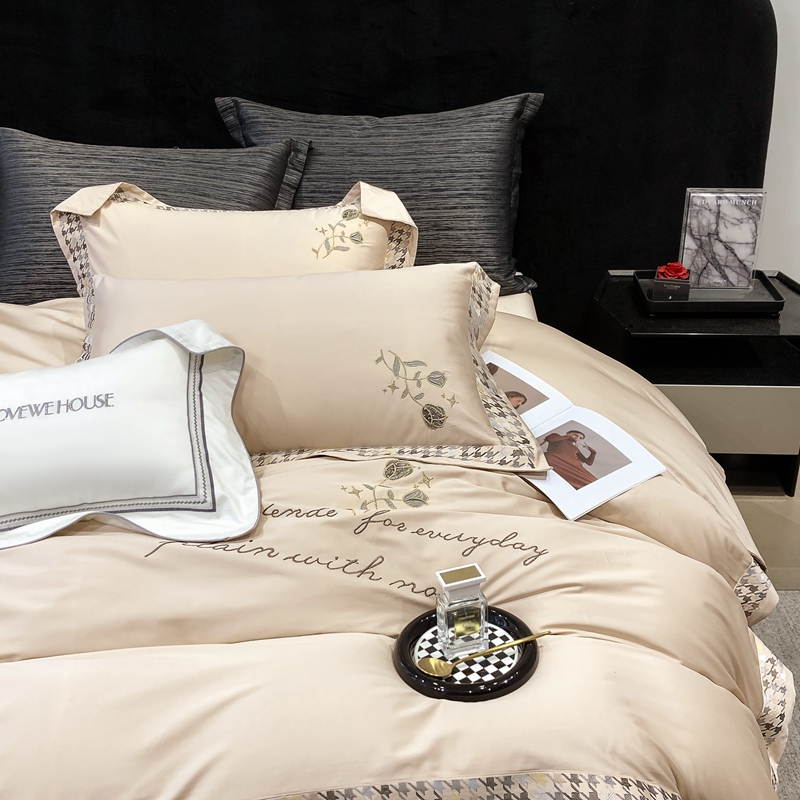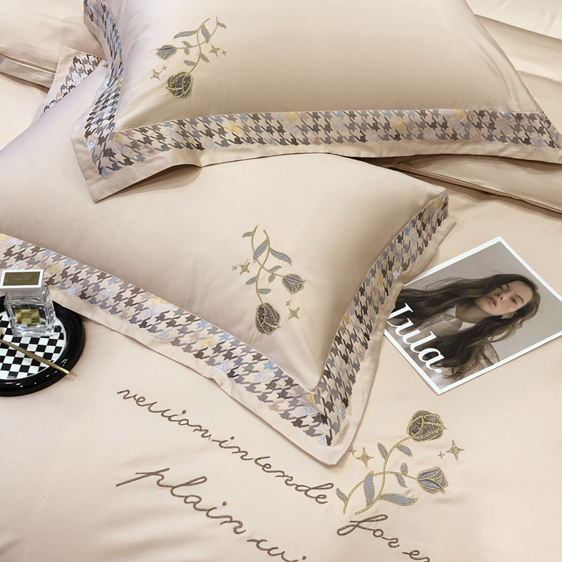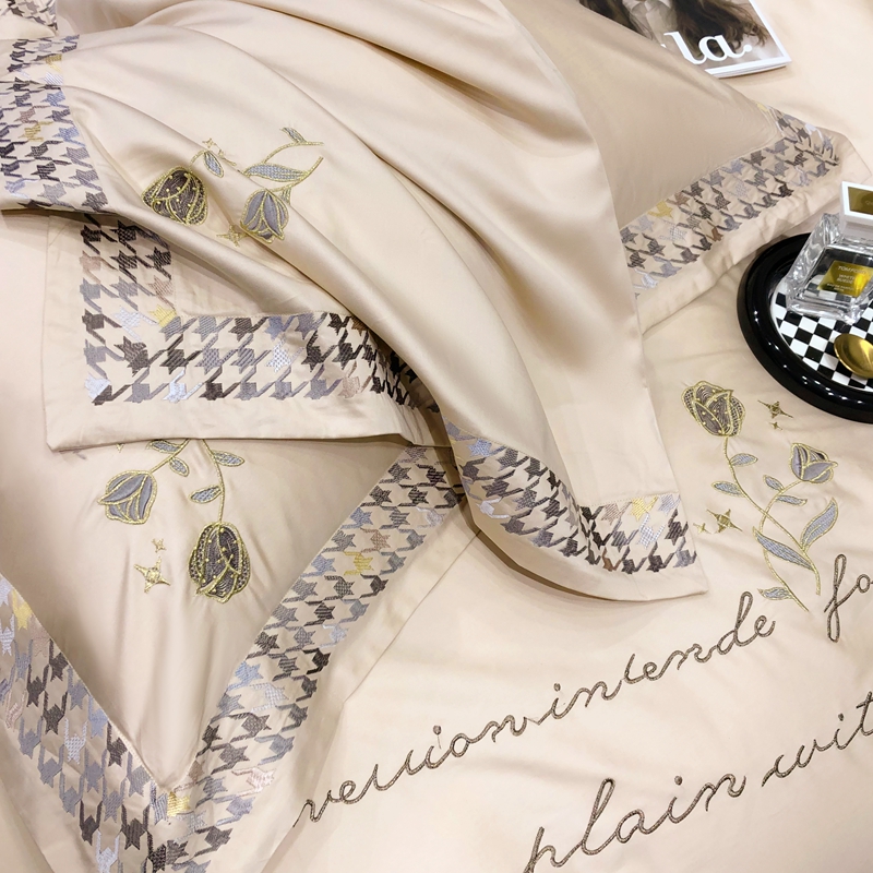 若未家居 2025新款长绒棉高精密刺绣款百万针工艺套件 千鸟格刺绣-锦簇 香槟色