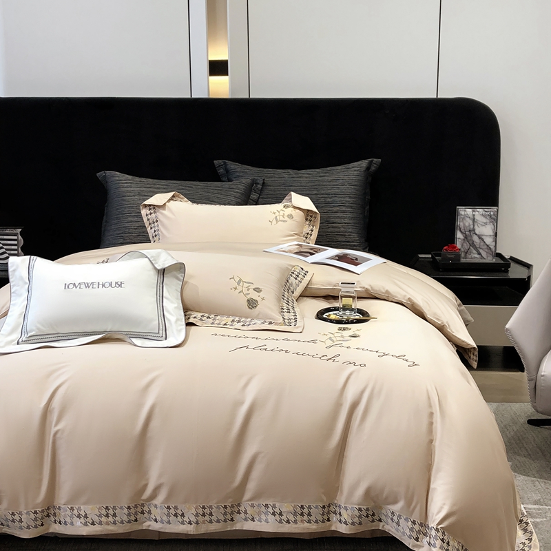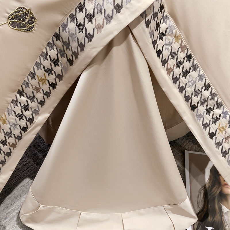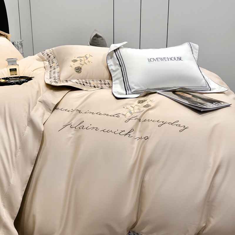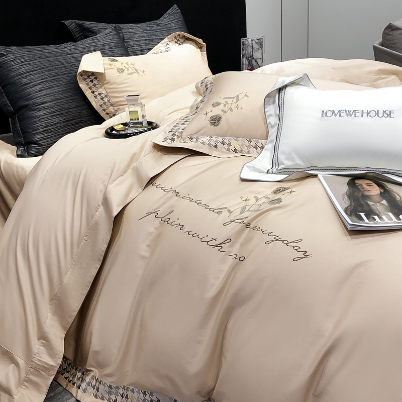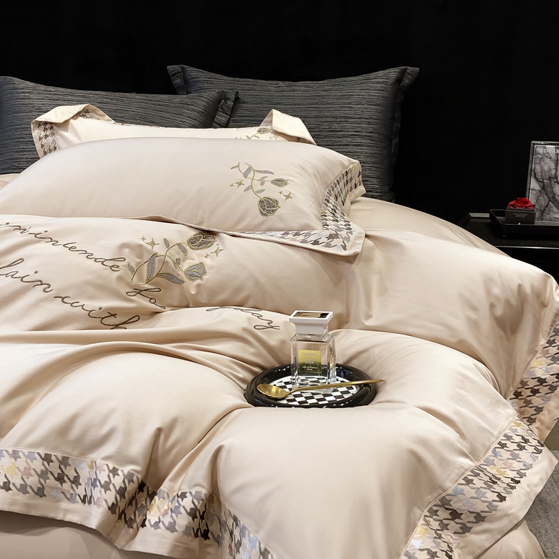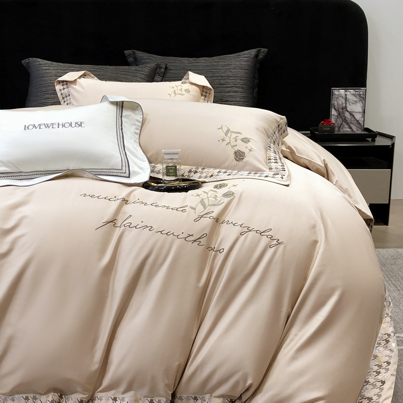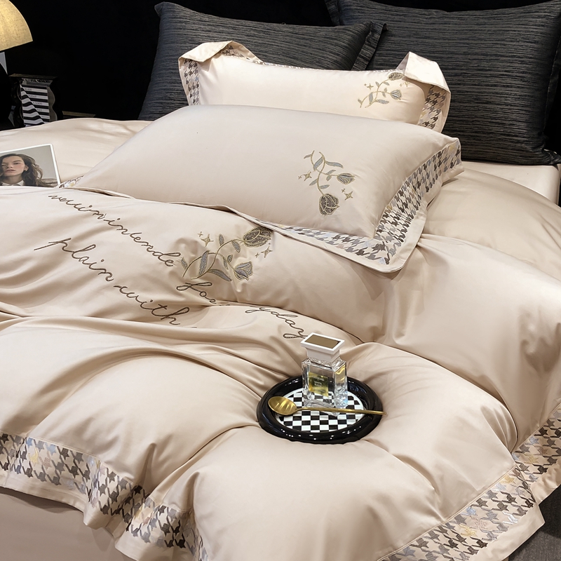 若未家居 2025新款长绒棉高精密刺绣款百万针工艺套件 千鸟格刺绣-锦簇 香槟色