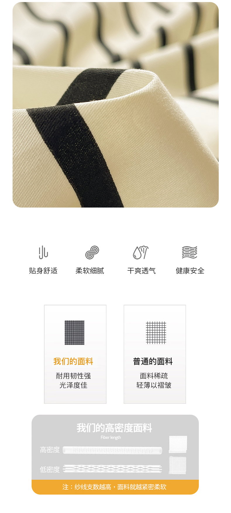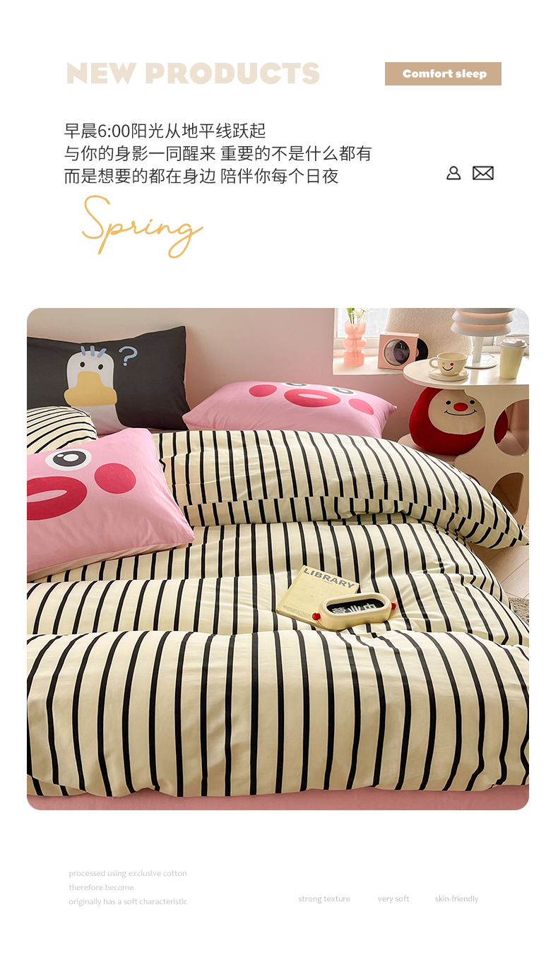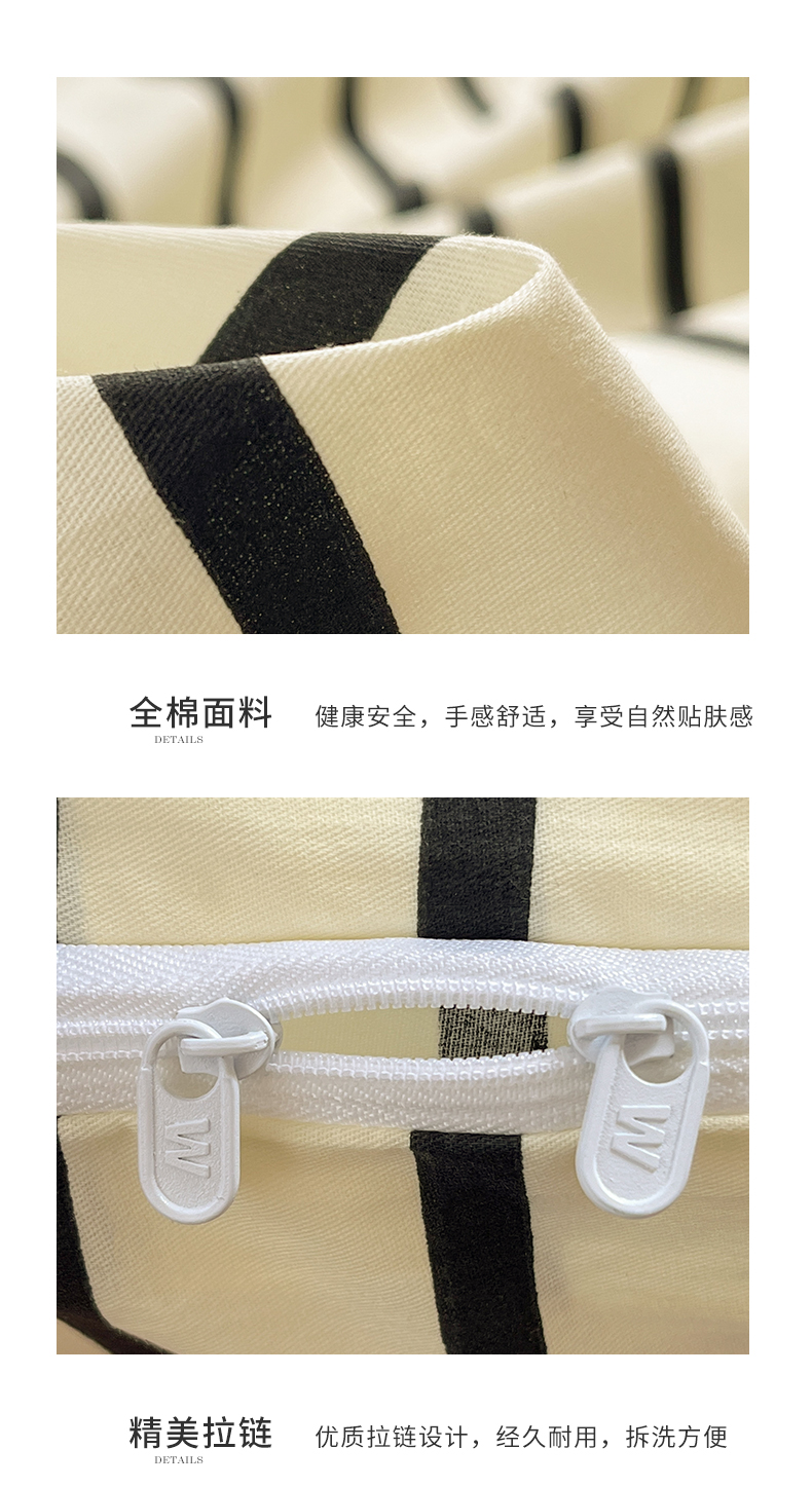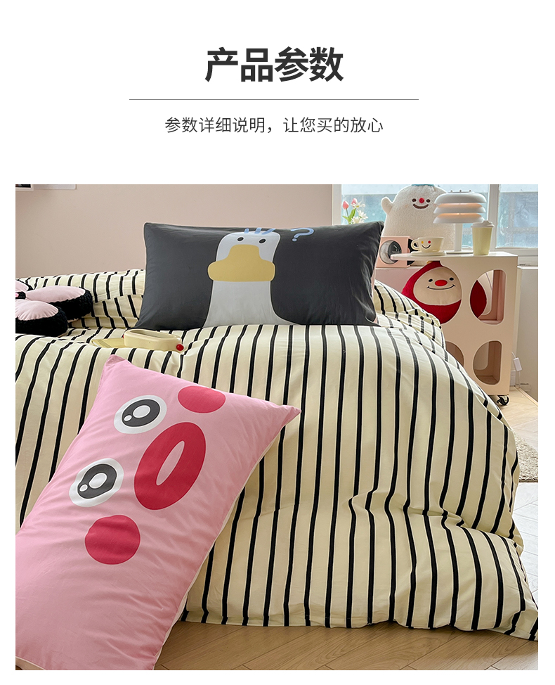 商品名称:2024新款大版枕套数码印花全棉四件套 黑条纹