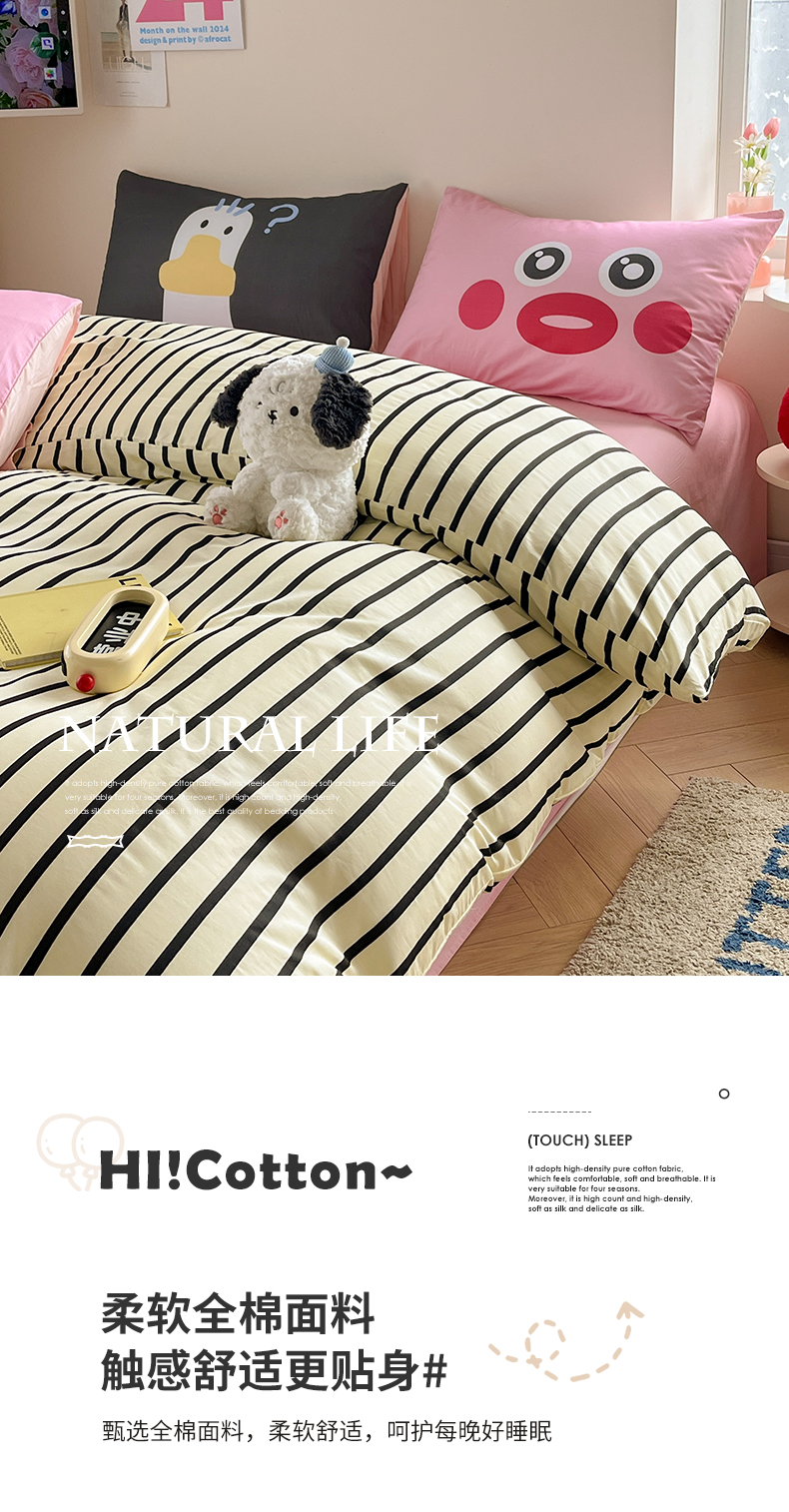 2024新款大版枕套数码印花全棉四件套 黑条纹