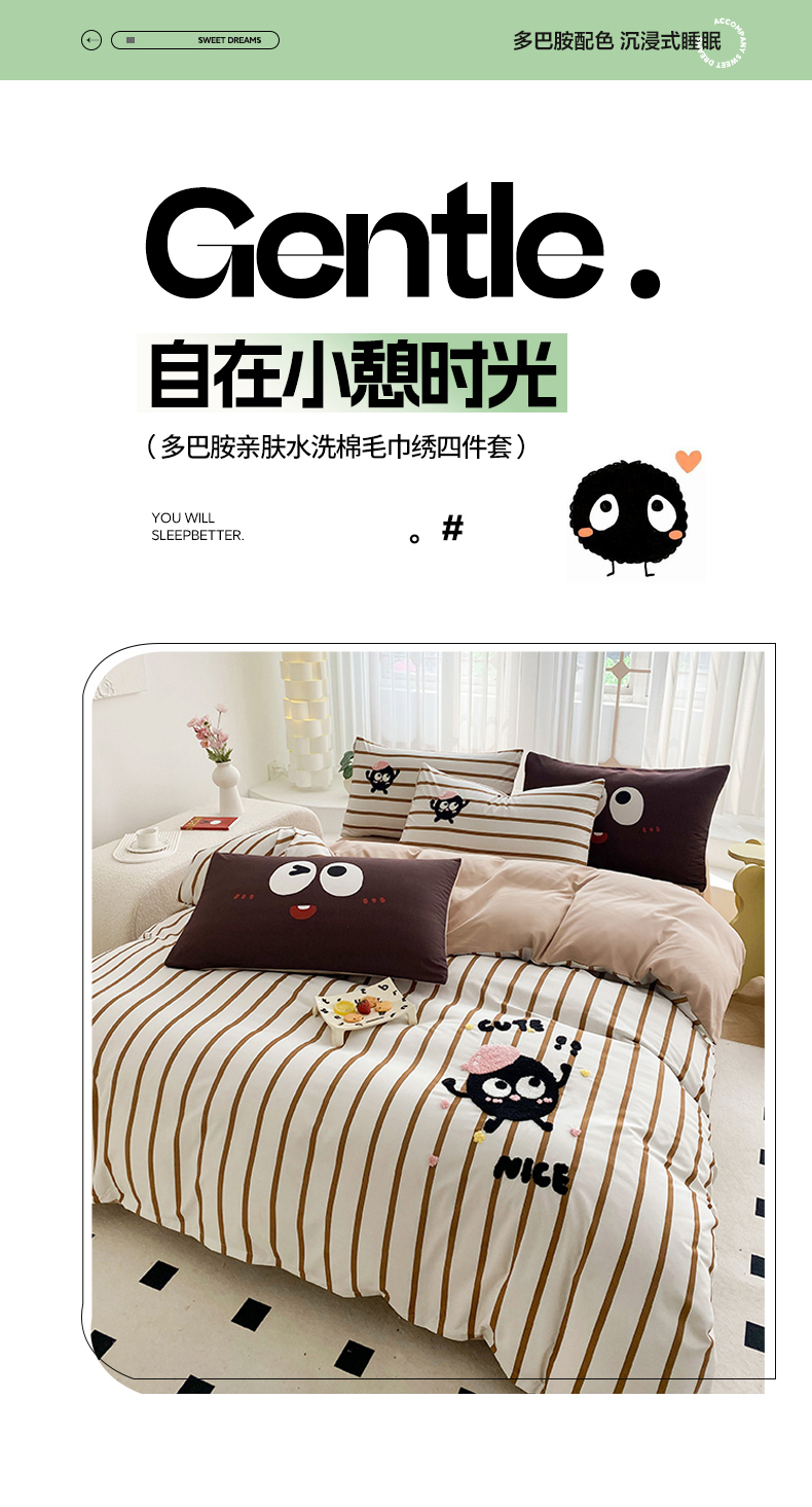 当前位置: 91家纺网 > 商品网购 > 床品套件 > 四件套 > 水洗棉四件套 > 眷恋家纺 2024新款多巴胺水洗棉毛巾绣四件套 煤球-焦糖咖
