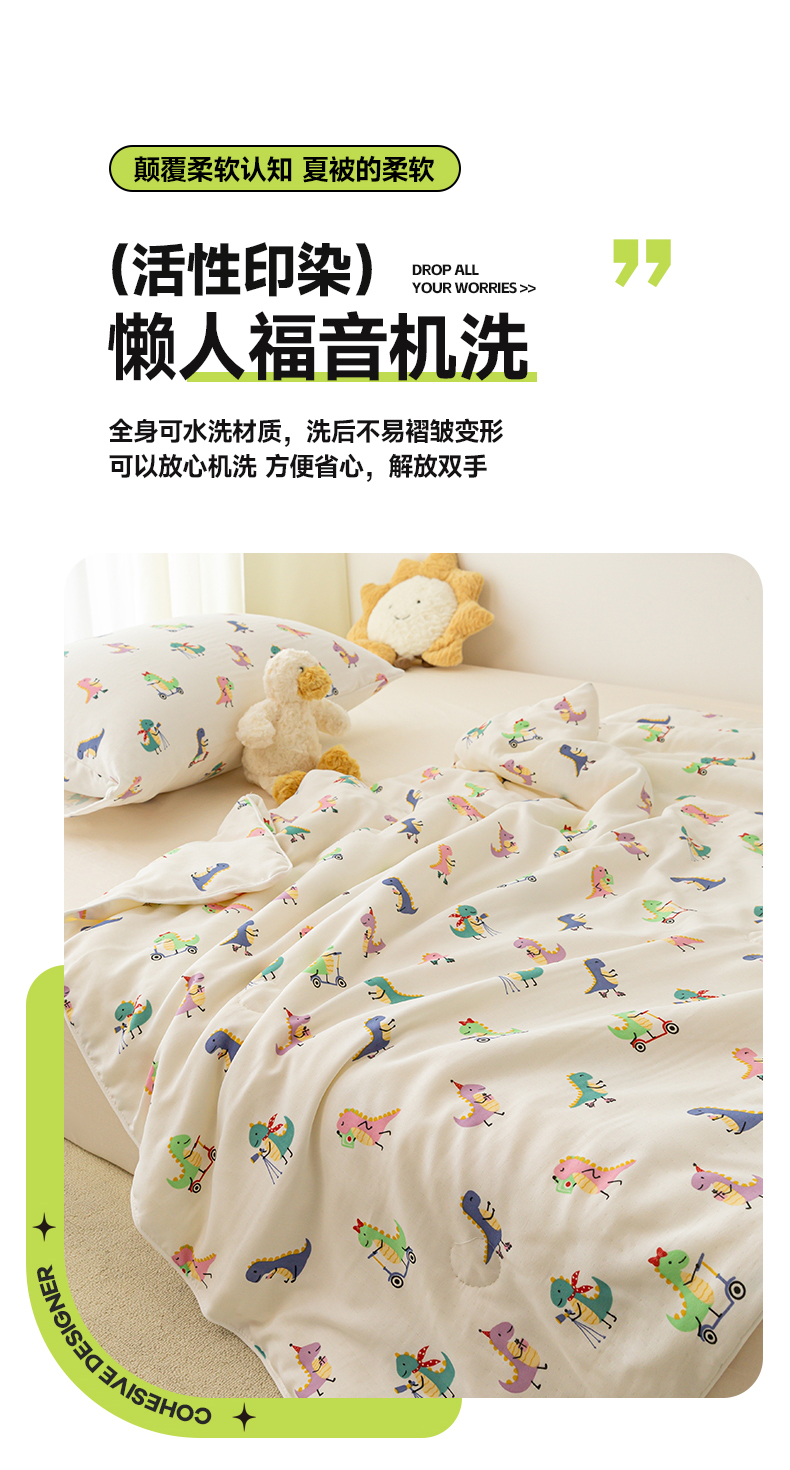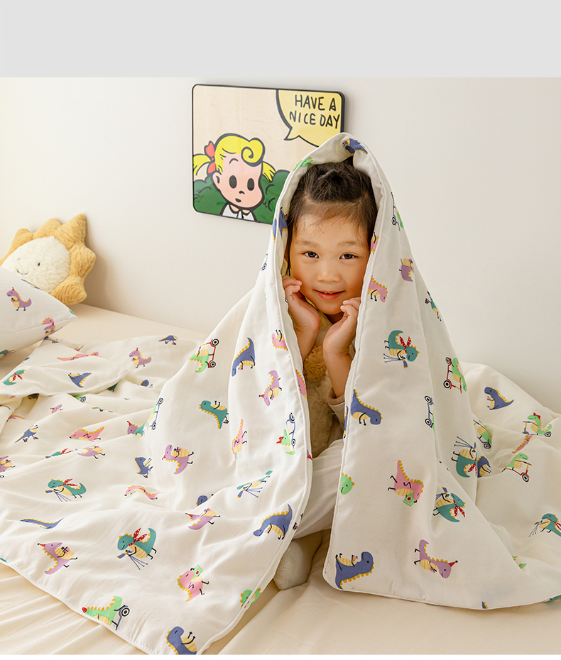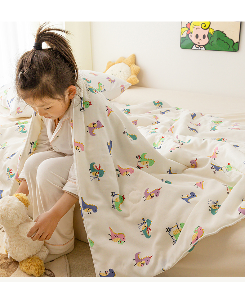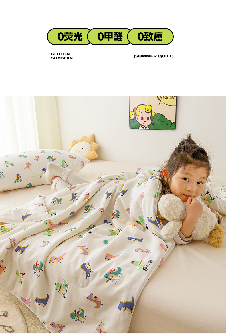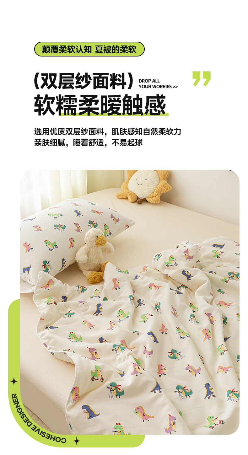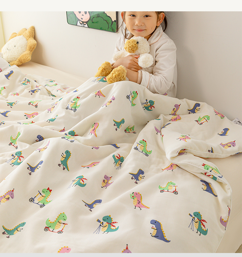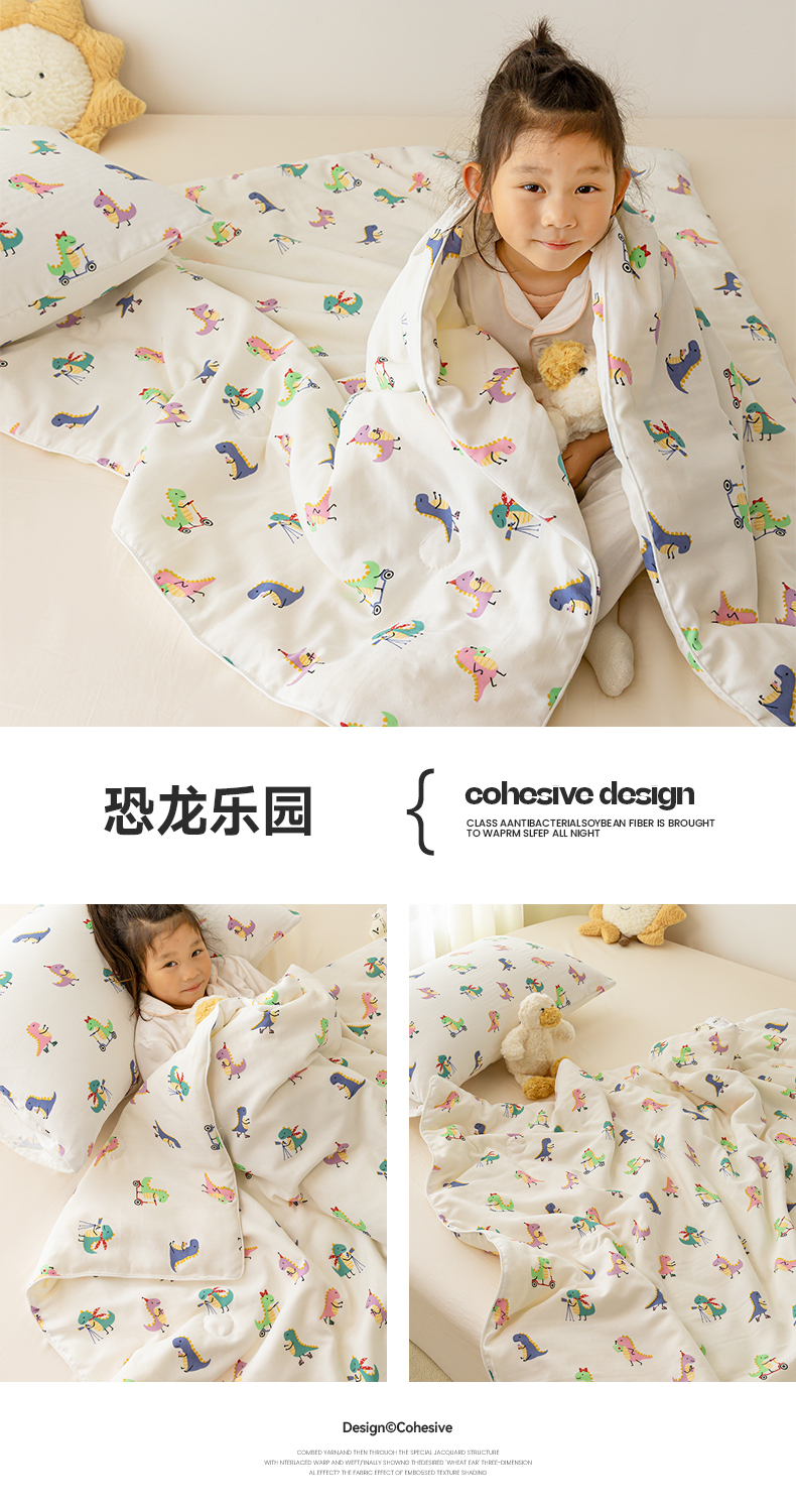 商品名称:寐眠 2024新款双层纱大豆儿童夏被 恐龙乐园