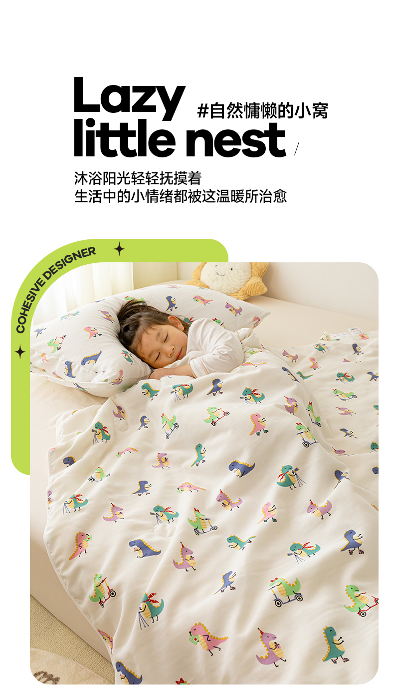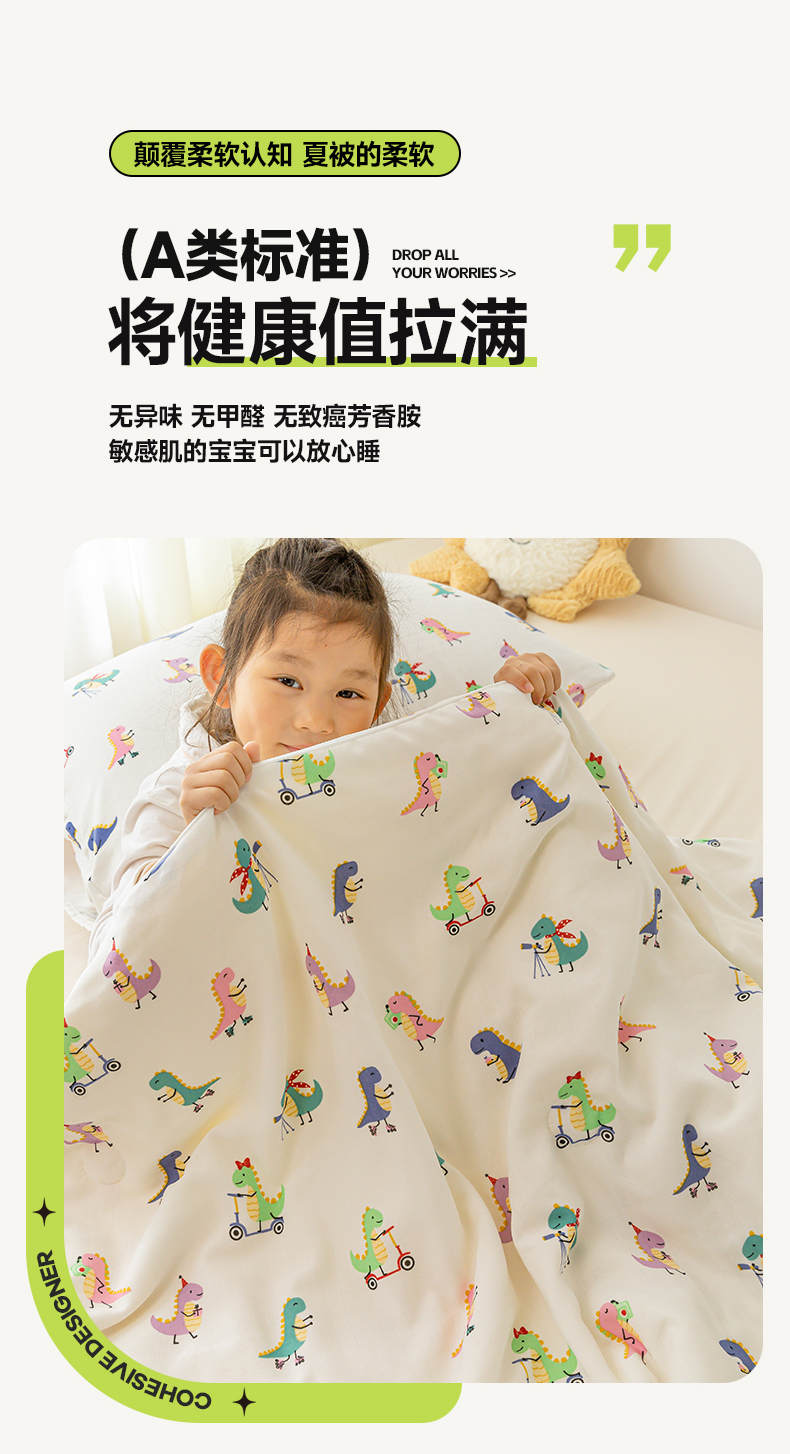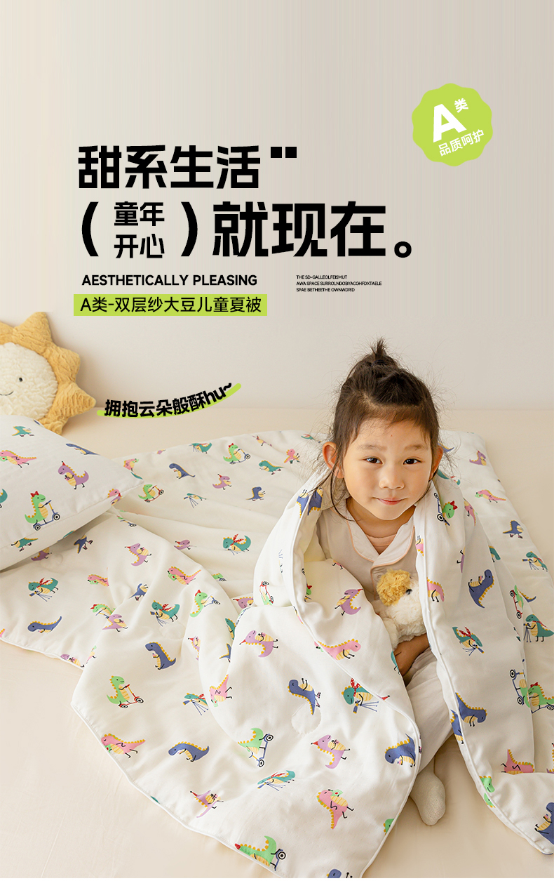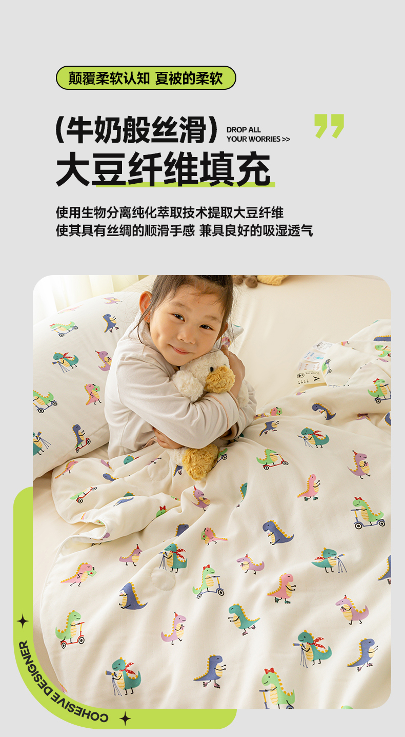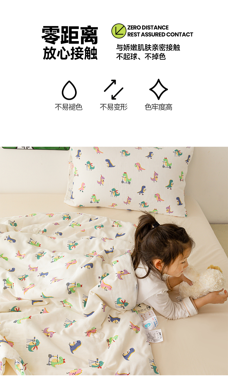 商品名称:寐眠 2024新款双层纱大豆儿童夏被 恐龙乐园