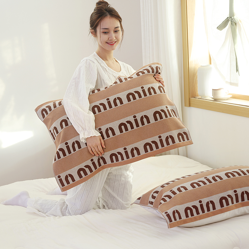 • 91家纺网 家纺一手货源 找家纺 朴尔毛巾被2024年新品全棉细纱编织纹AB版透气枕巾 字母世界52*78cm