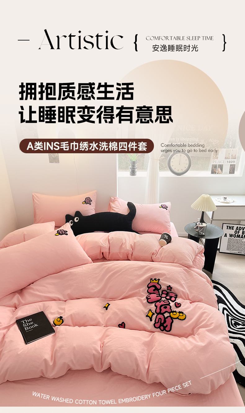 当前位置: 91家纺网 > 商品网购 > 床品套件 > 四件套 > 其它四件套 > 耀达家居 2024新款ins毛巾绣水洗棉四件套 公主发财