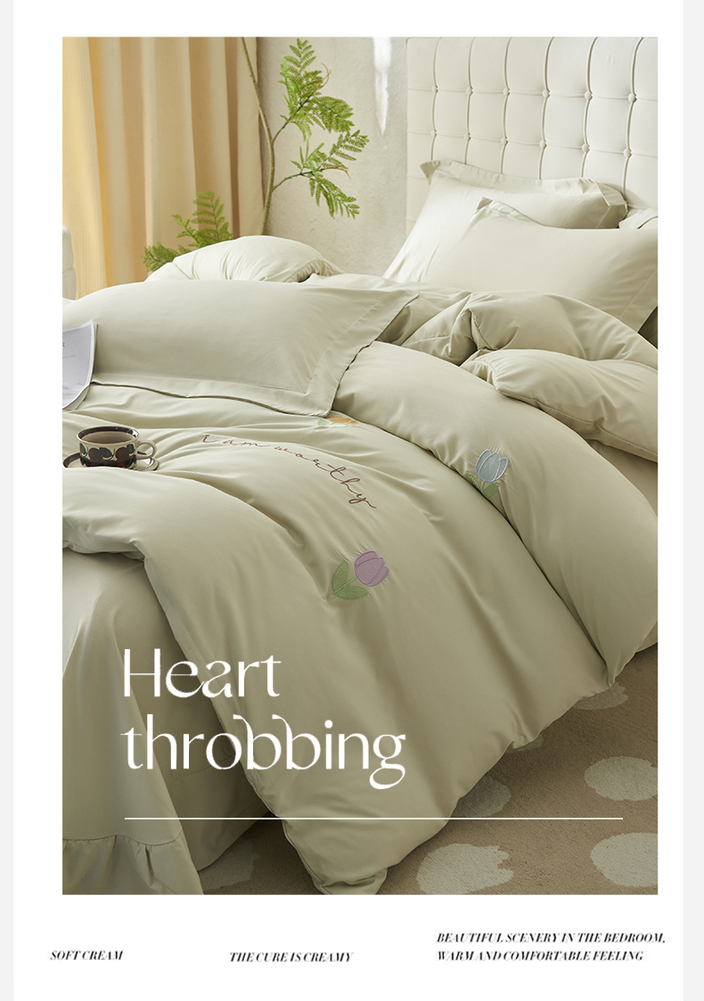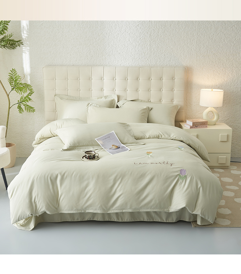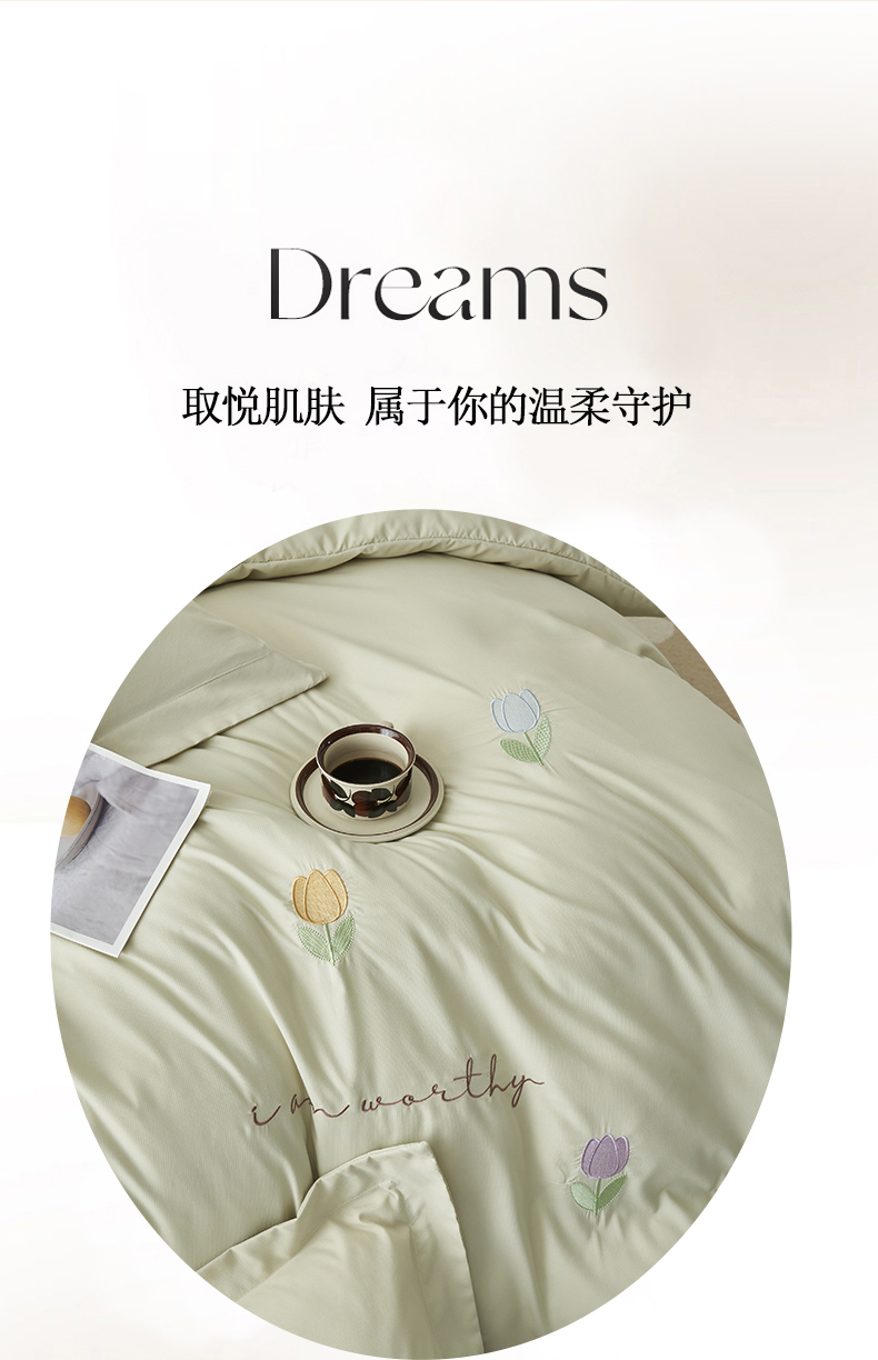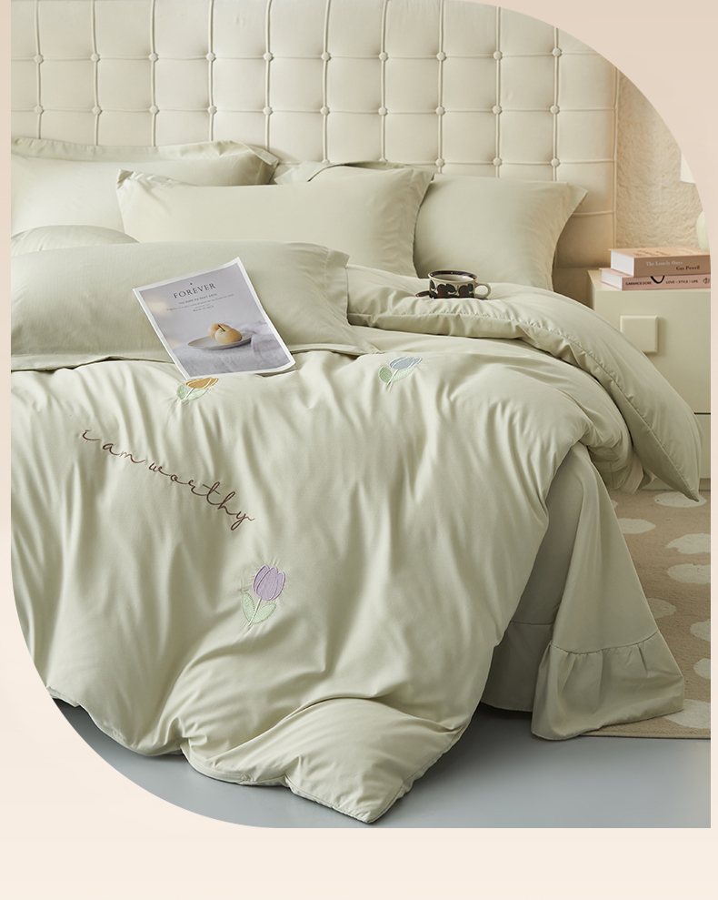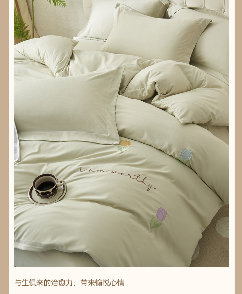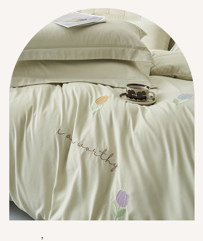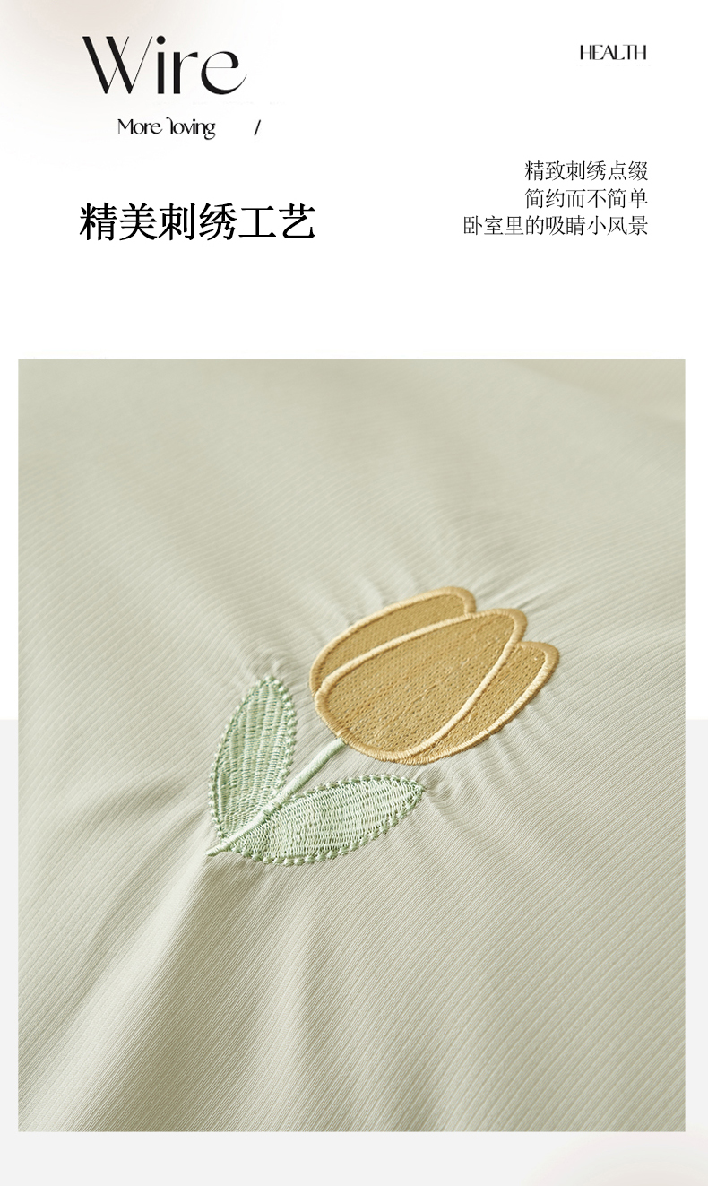 闲鱼家纺 2025新款A类亲肤刺绣四件套春雅系列 郁金香-抹茶