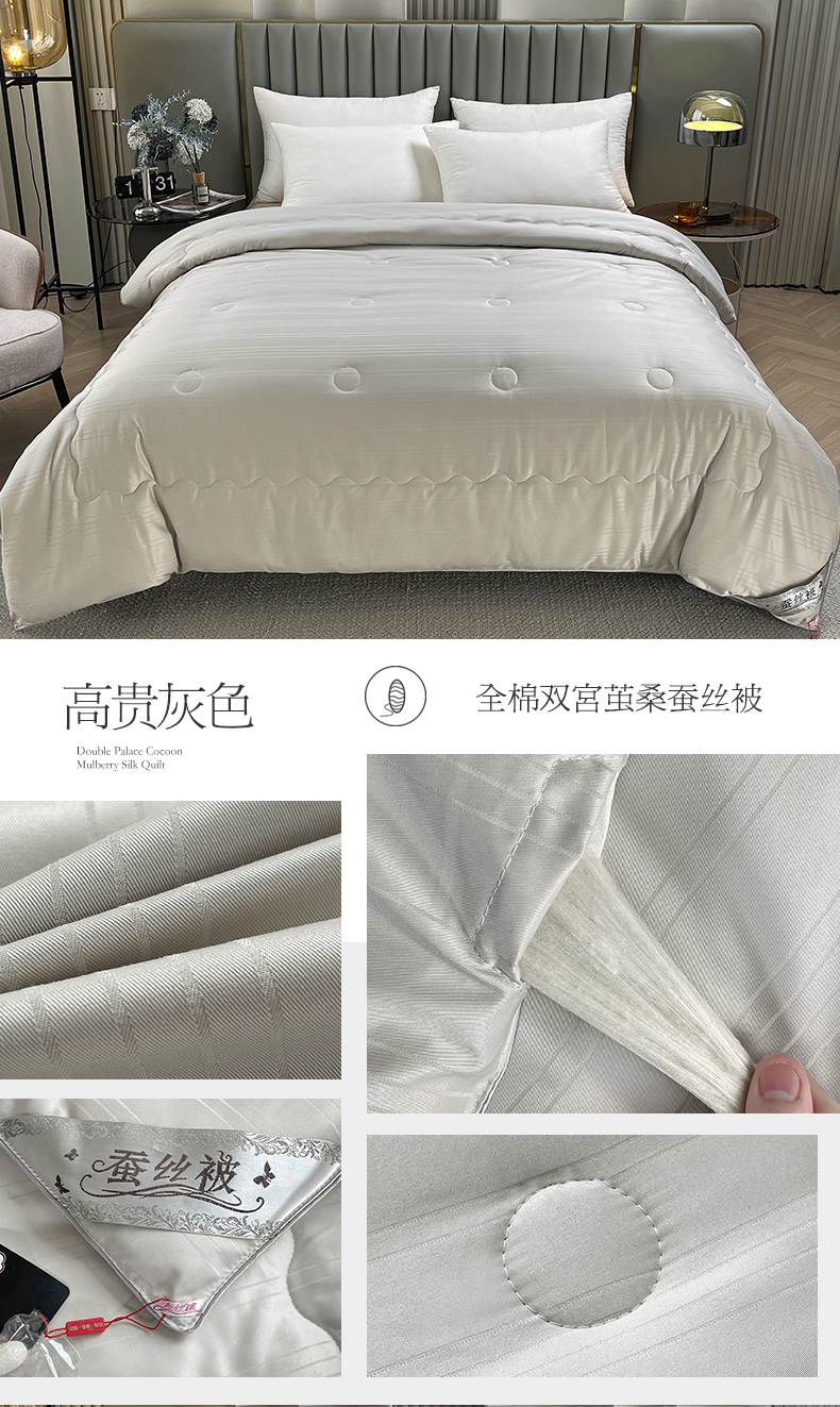 商品名称:尚品家纺 2024新款提花段条绗缝蚕丝被 高贵灰色