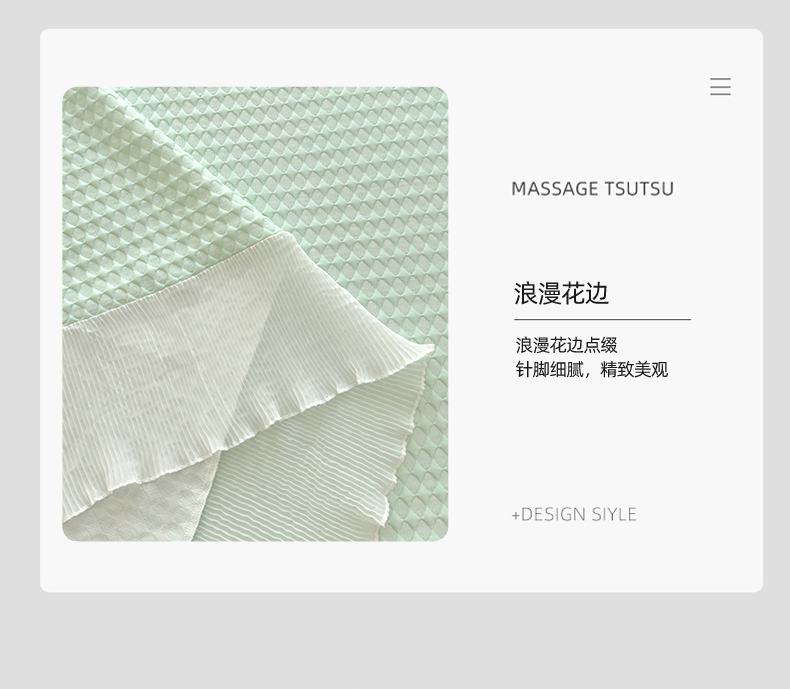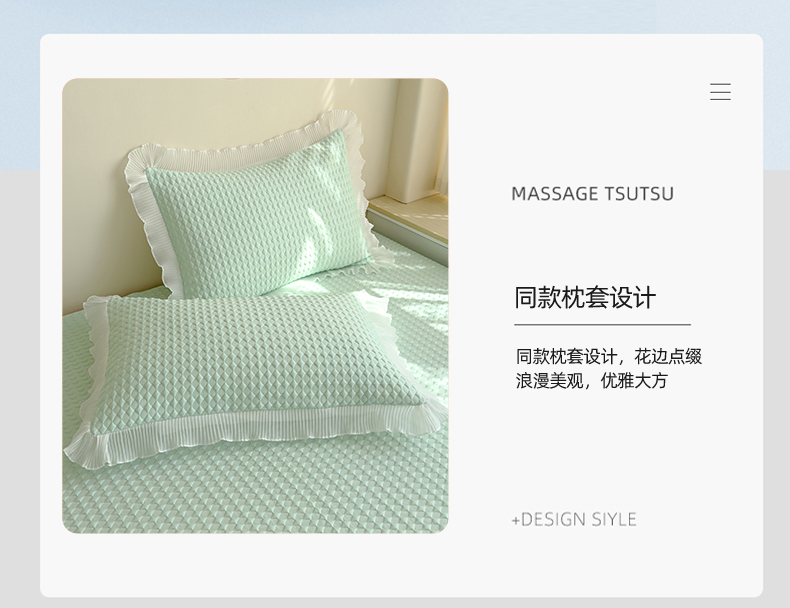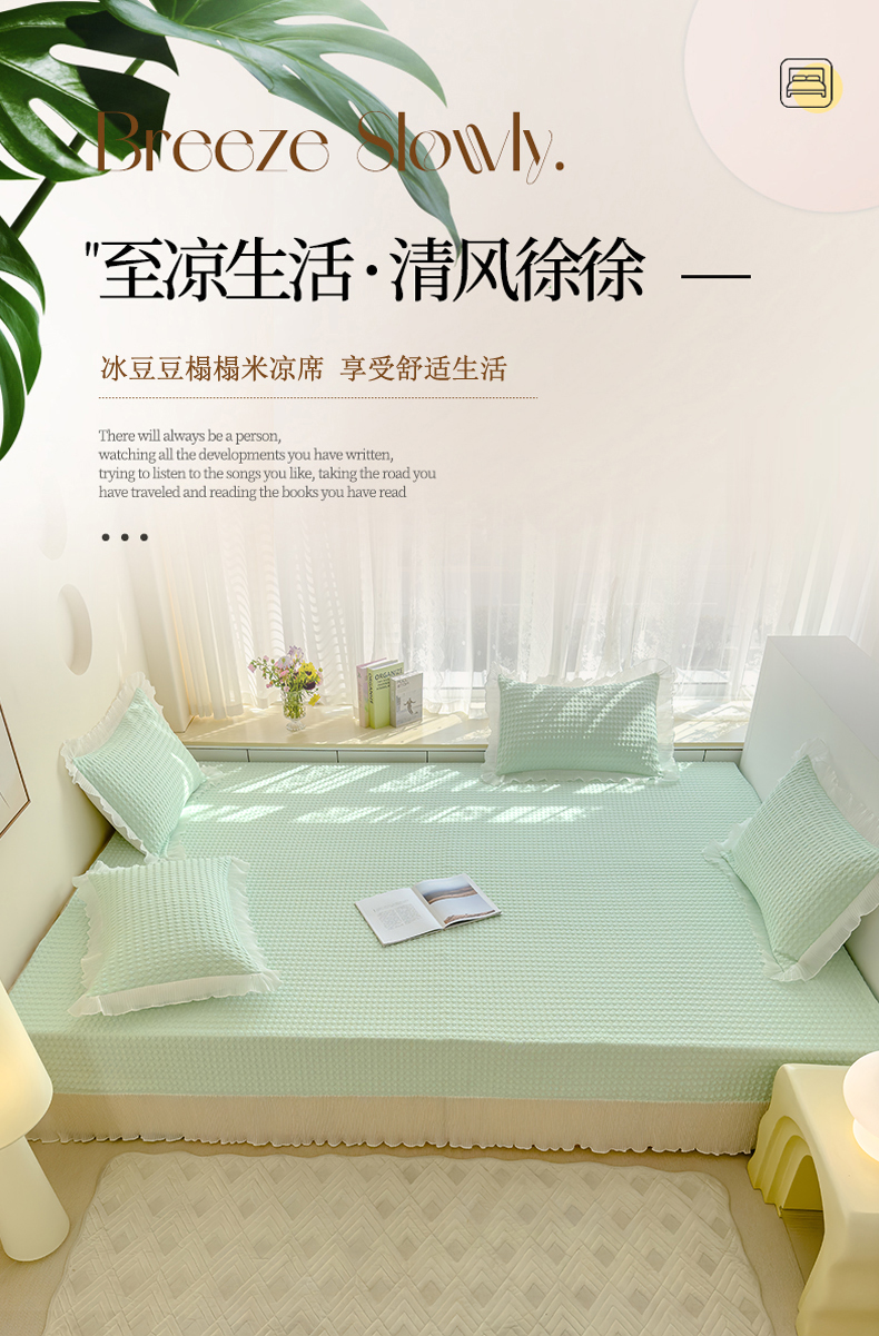 当前位置: 91家纺网 > 商品网购 > 床上用品 > 凉席 > 其他凉席 > 冬然家纺 2024新款素色花边系列冰豆豆榻榻米凉席 抹茶绿