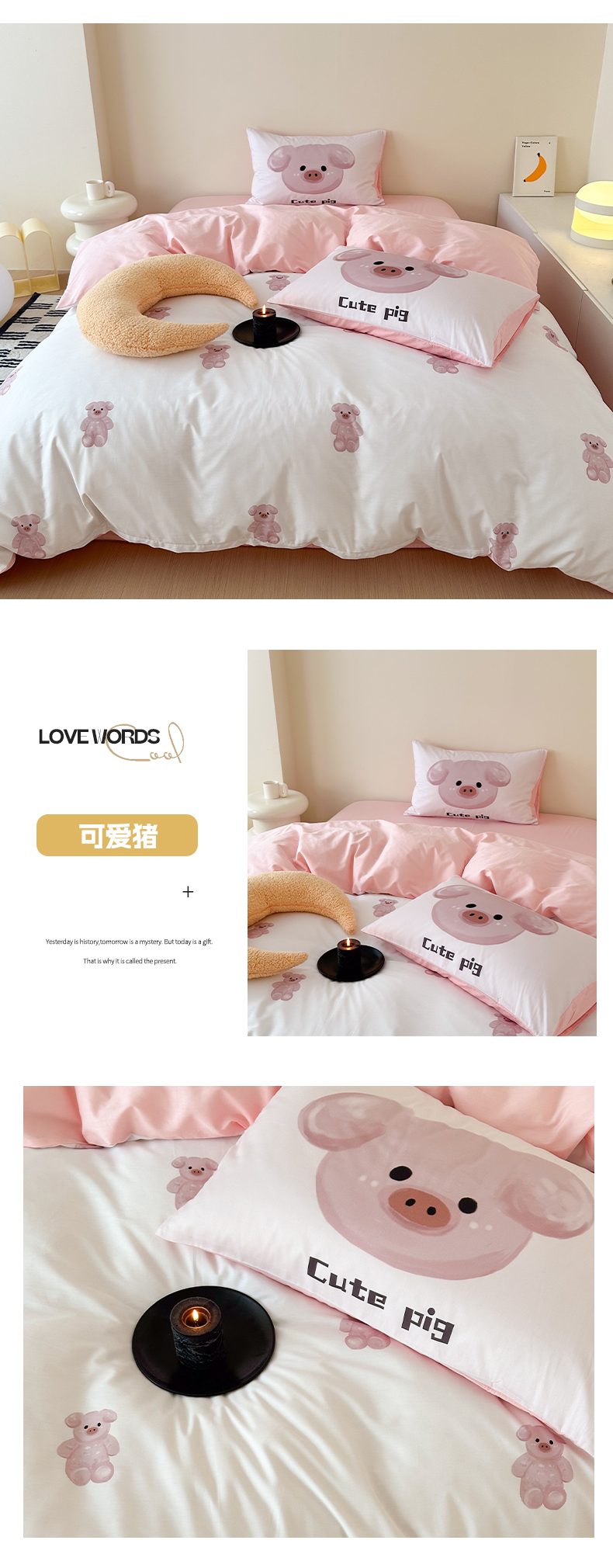 美乐迪家纺 2024ins韩风全棉四件套 可爱猪