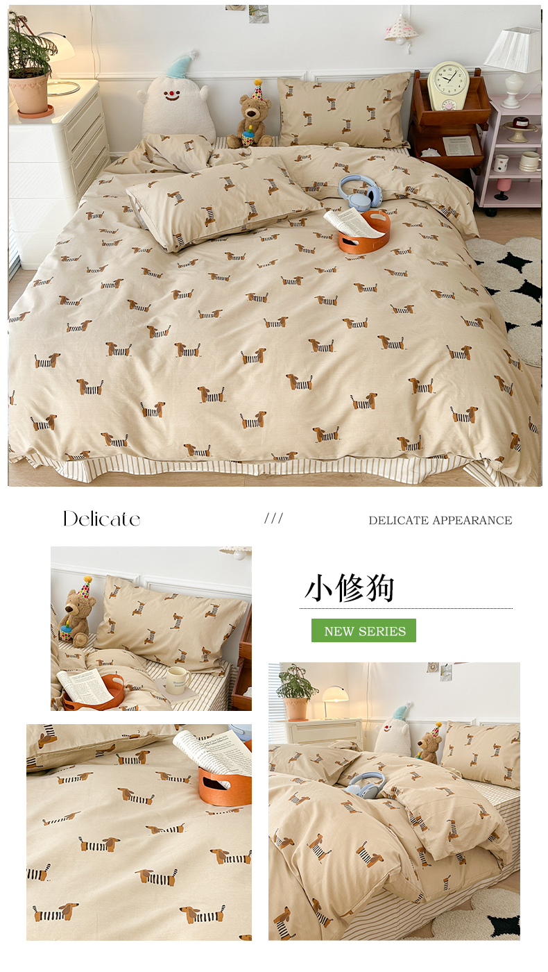 昔可家纺 2024开春新款全棉印花卡通四件套 小修狗