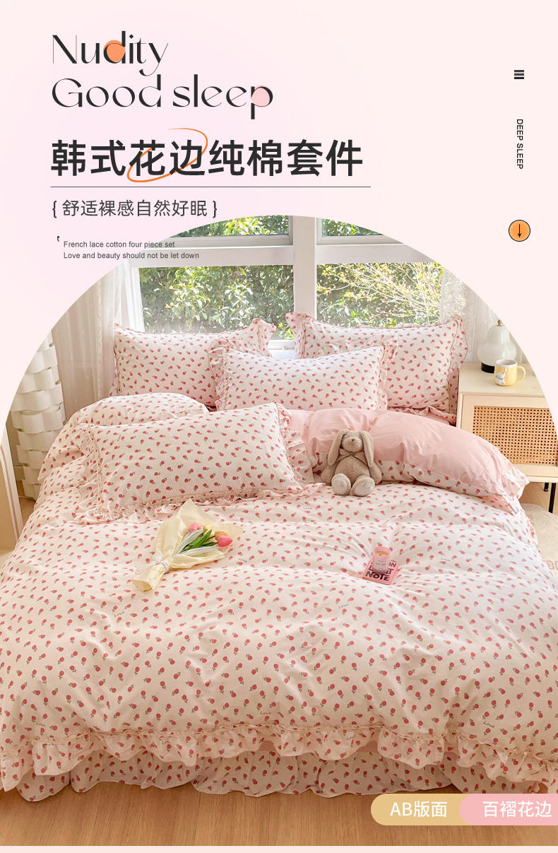 商品名称:艾唯希家纺 2024新款韩式花边全棉四件套 之甜