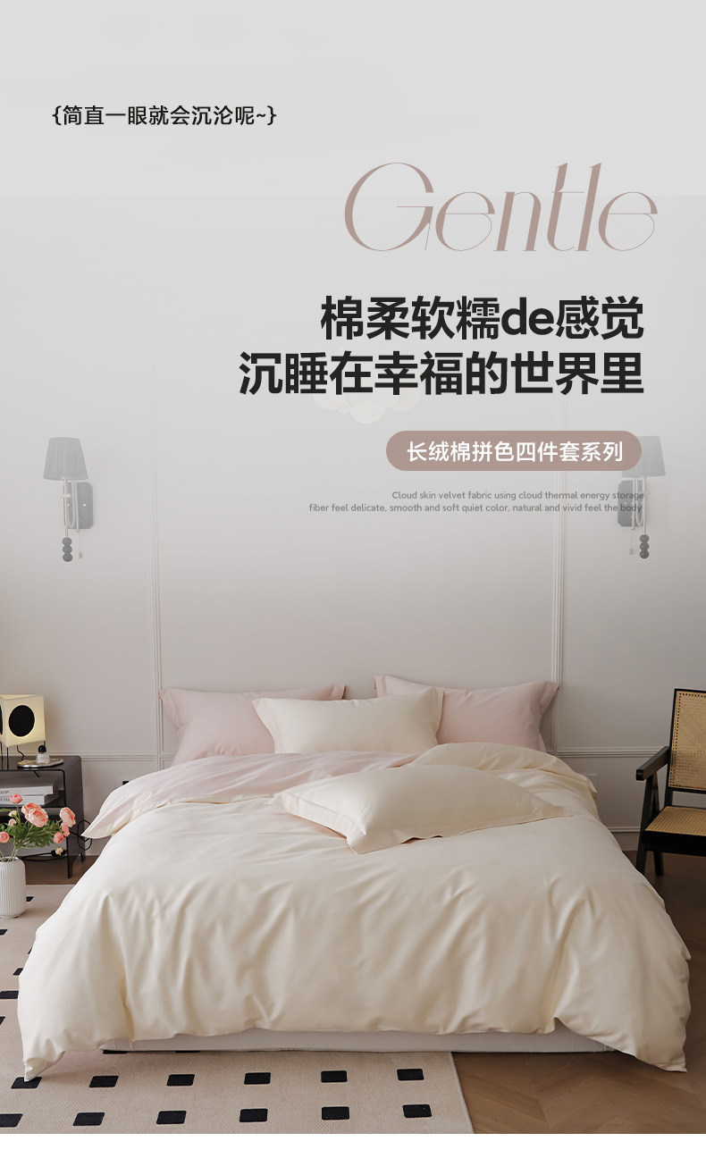商品名称:(总)新款绵柔软糯长绒棉拼色四件套