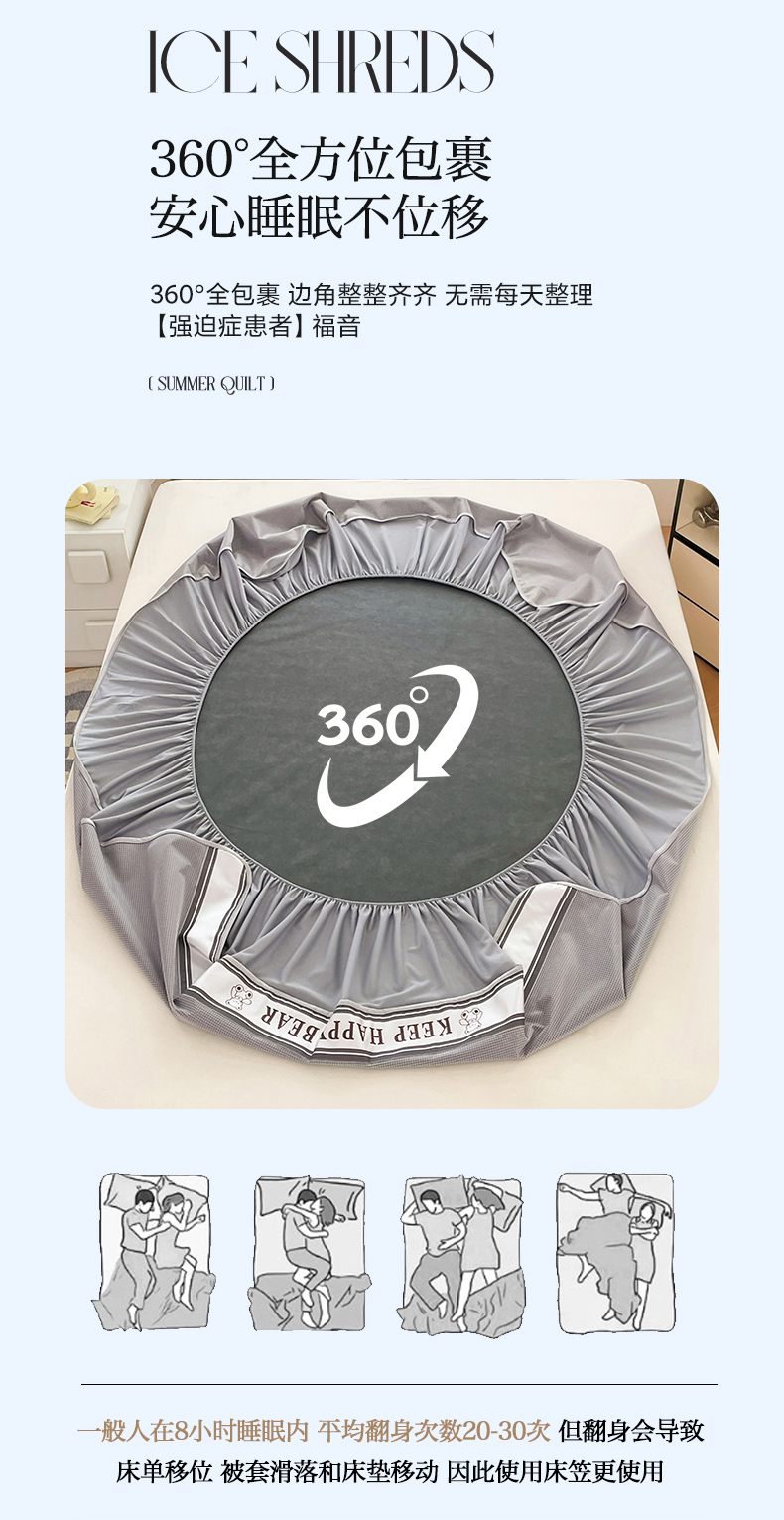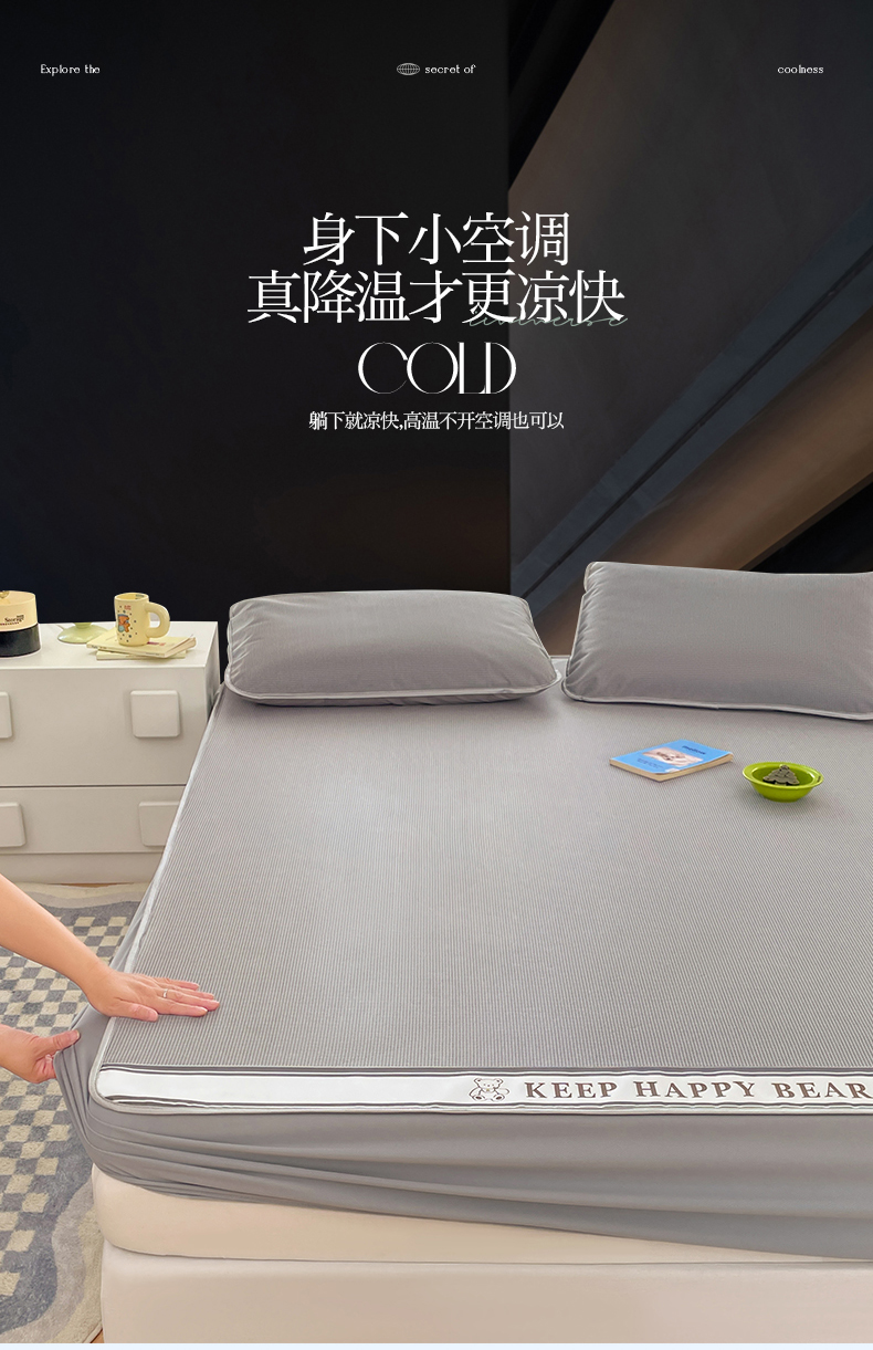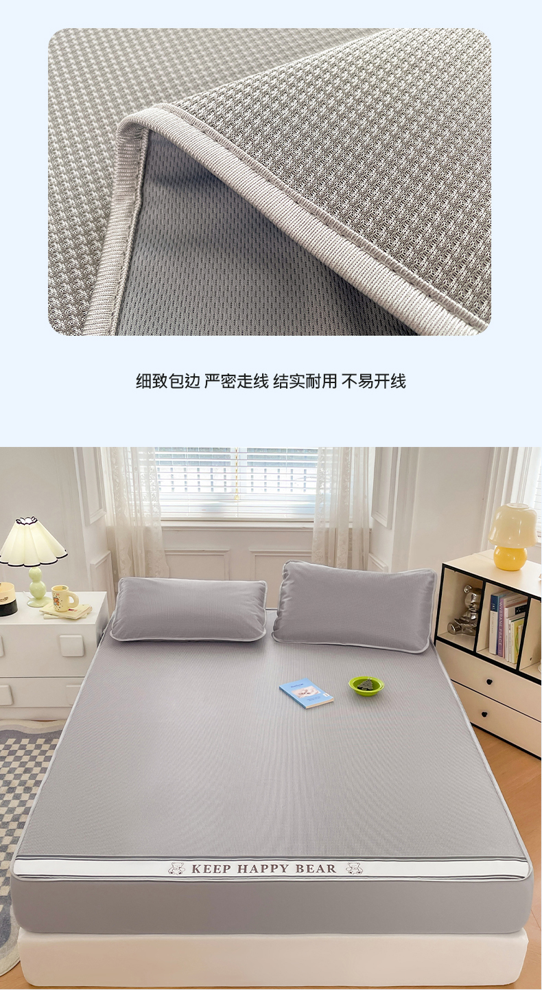 福来临家纺 2025新款1800D碳光冰丝席 小熊床笠-浅灰