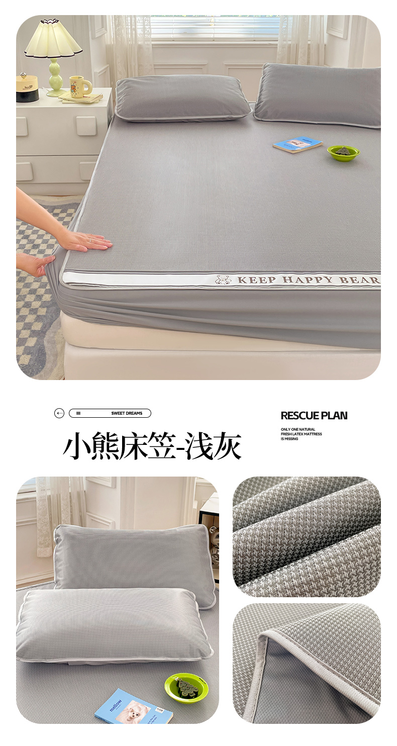 商品名称:福来临家纺 2025新款1800D碳光冰丝席 小熊床笠-浅灰