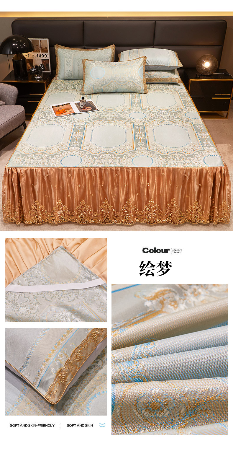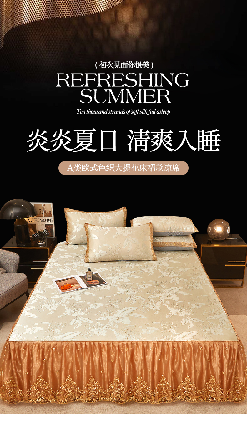 (总)罗艺轩 2024新款欧式色织大提花床裙凉席