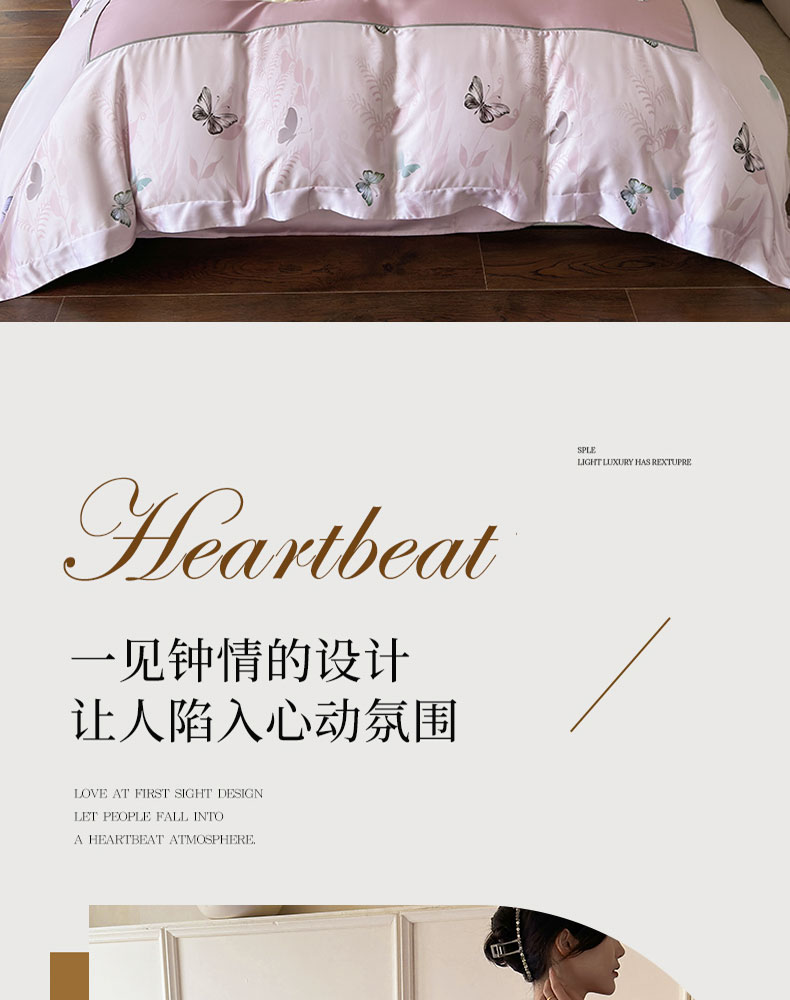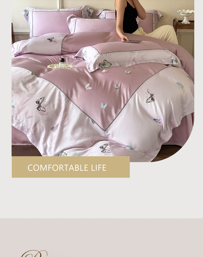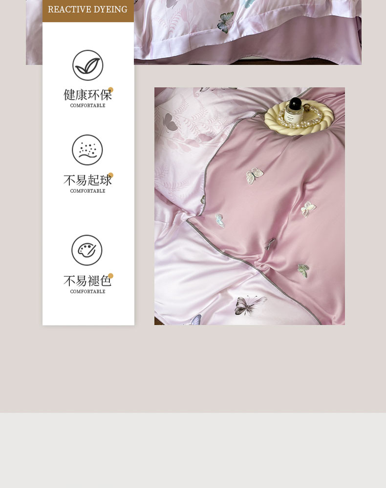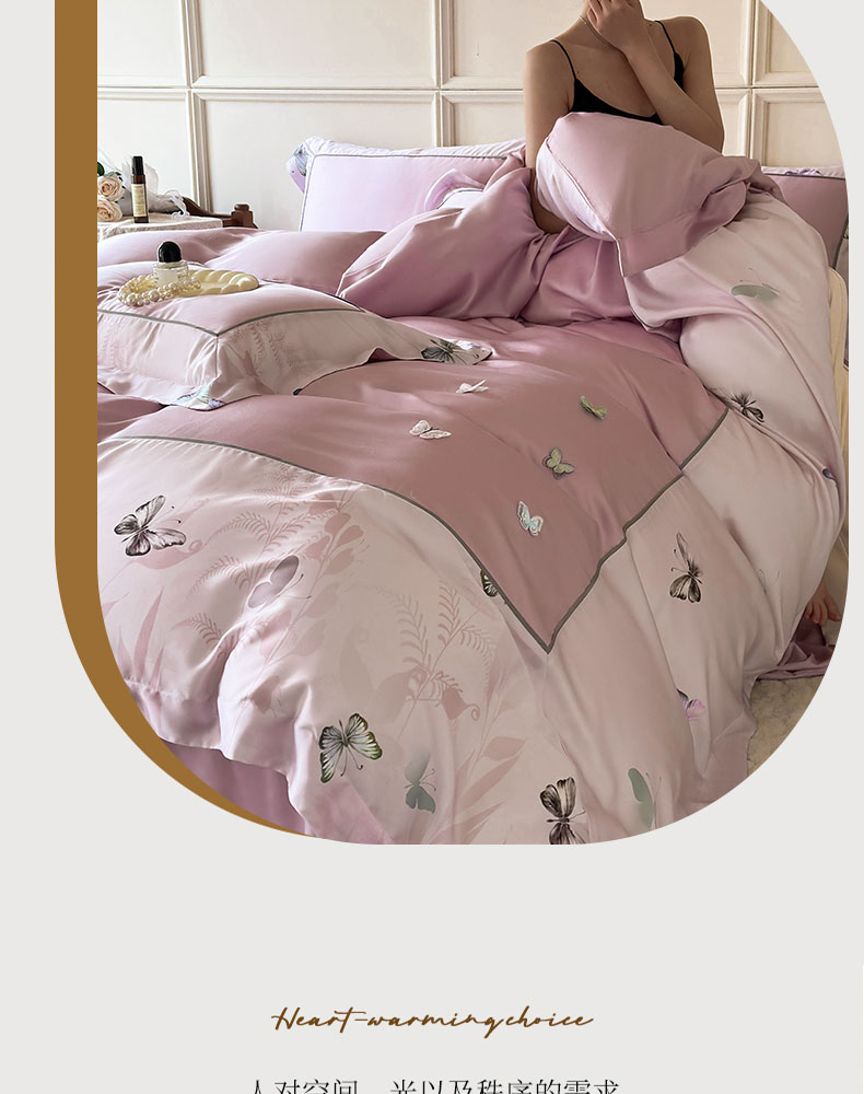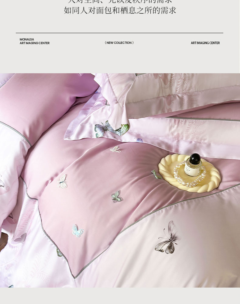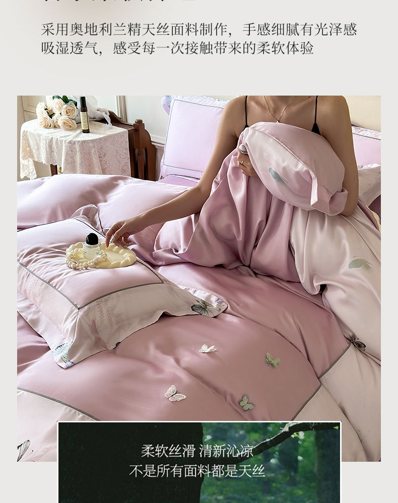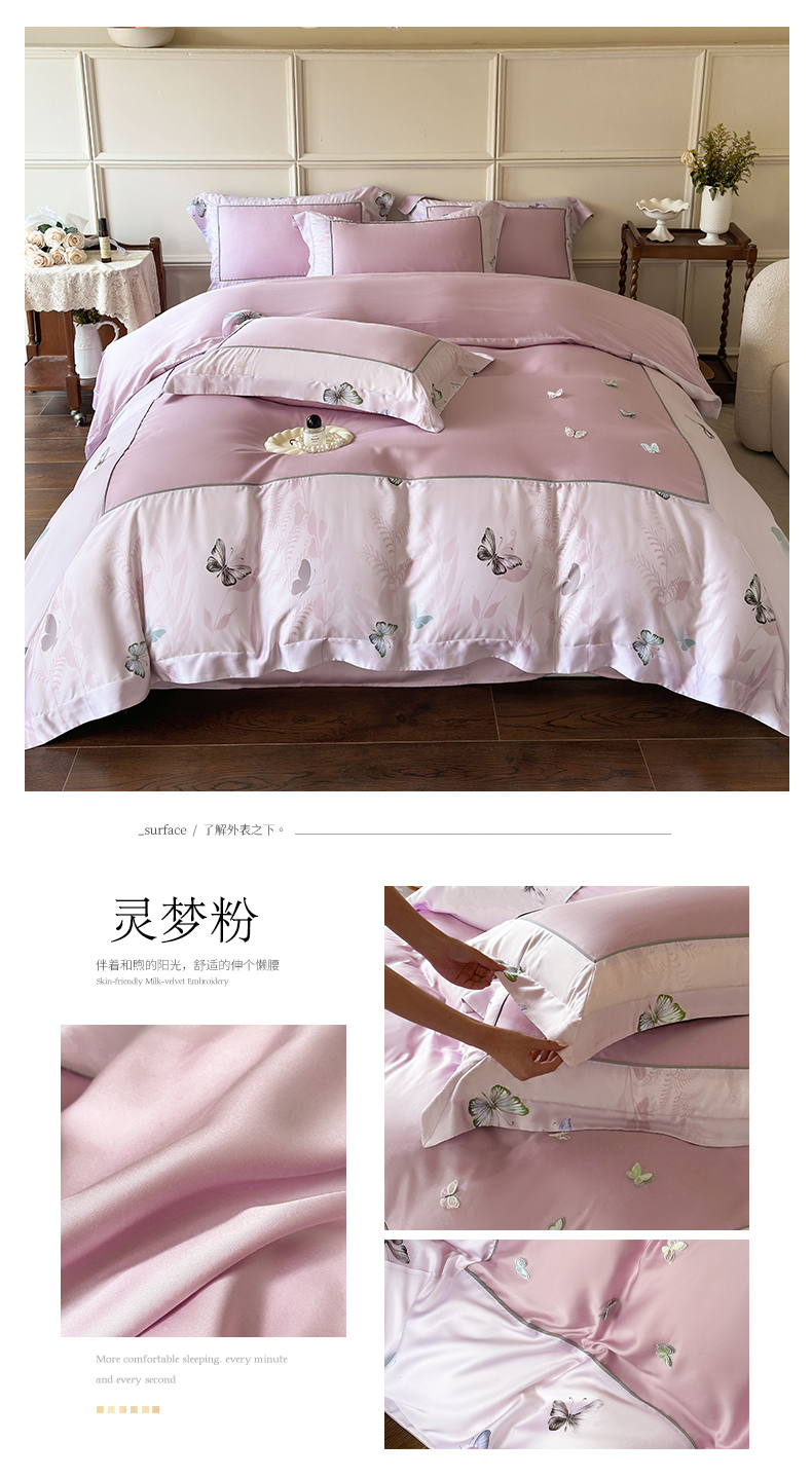 娇逸家居 2025新款60支兰精天丝数码印花立体绣花天丝四件套-蝶翎 灵梦粉