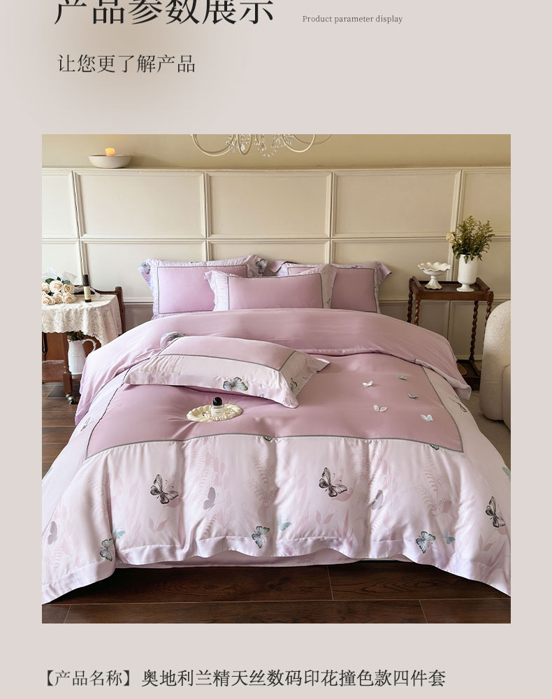 商品名称:娇逸家居 2025新款60支兰精天丝数码印花立体绣花天丝四件套-蝶翎 灵梦粉