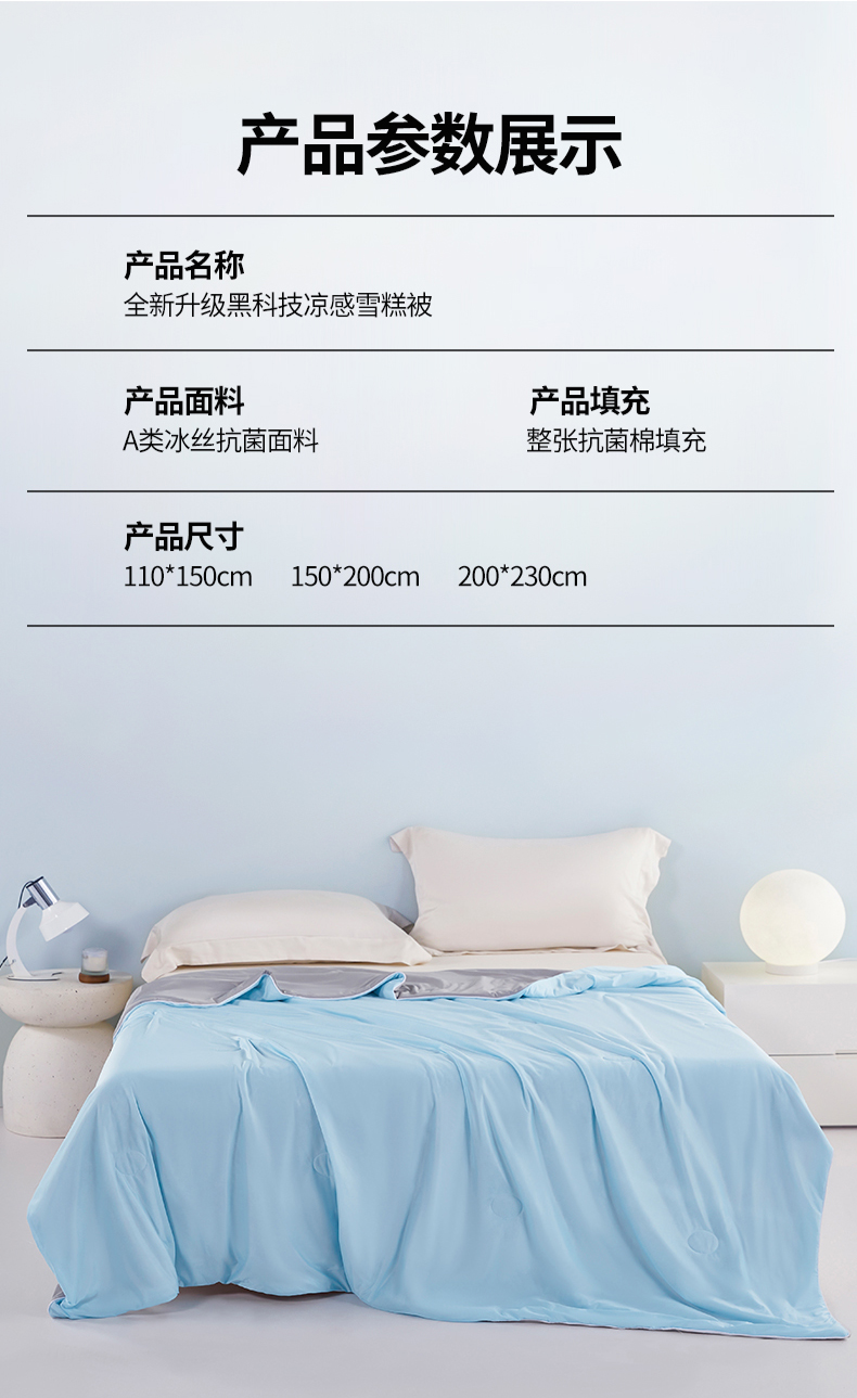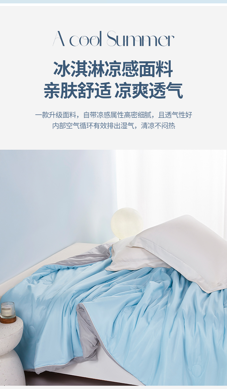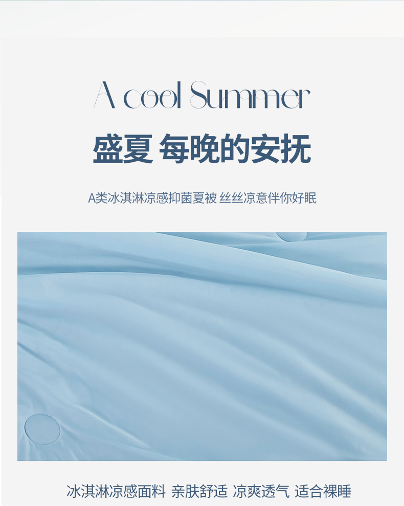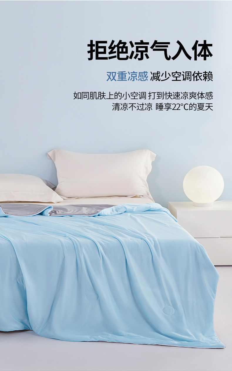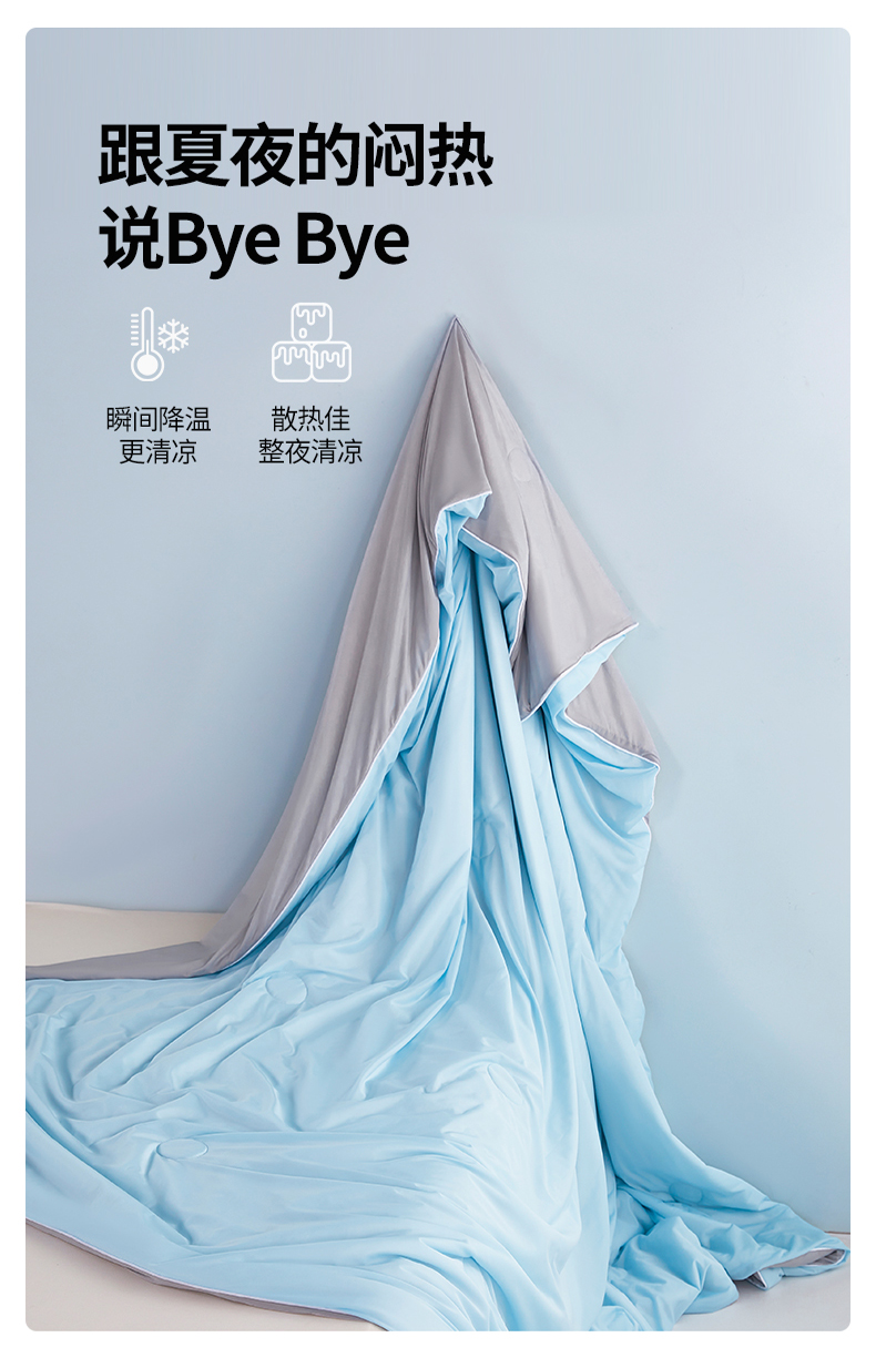 商品名称:美宜家 2025新款A类氨纶凉感丝冰激凌夏被被子被芯 蓝灰