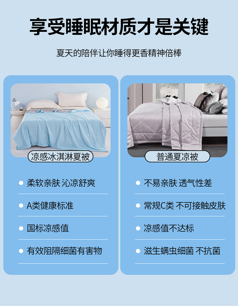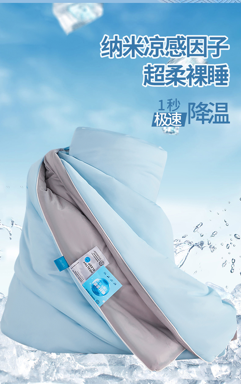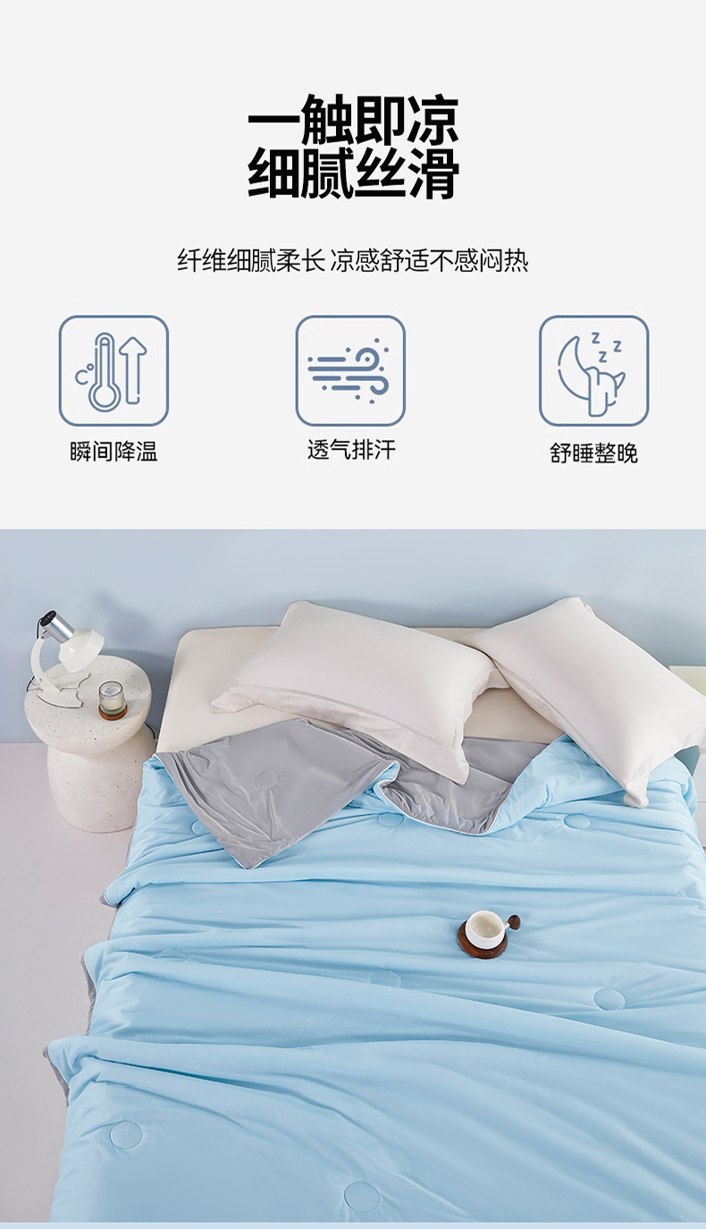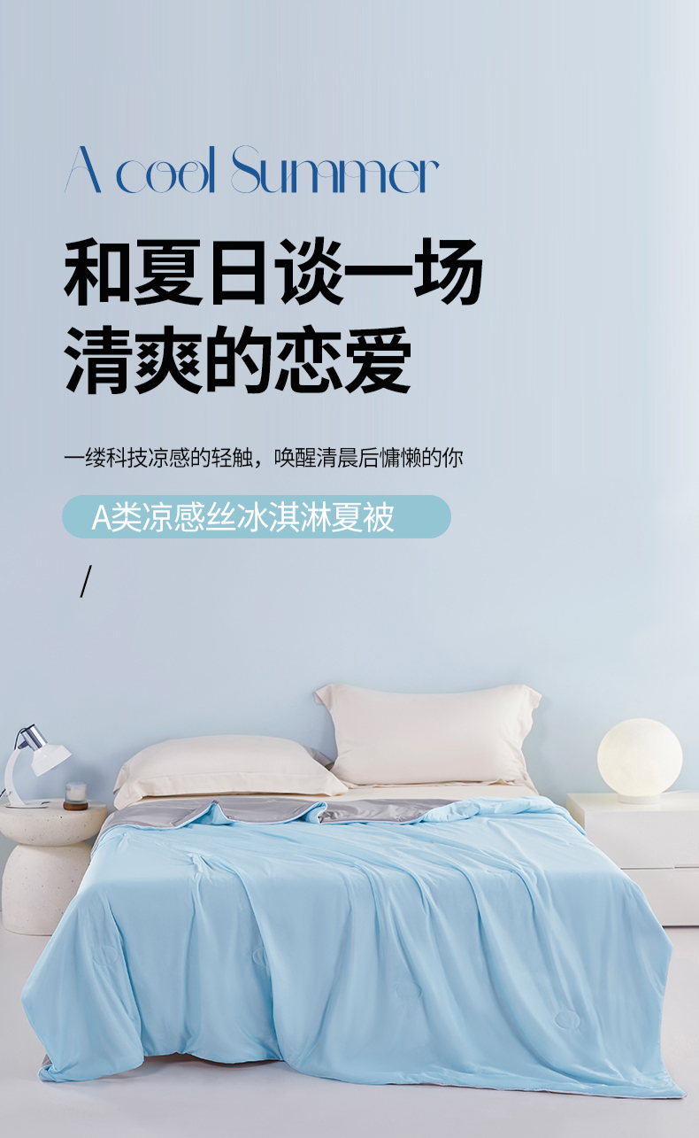 商品名称:美宜家 2025新款A类氨纶凉感丝冰激凌夏被被子被芯 蓝灰