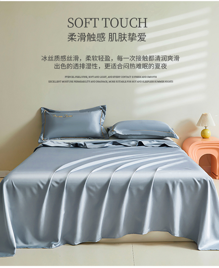商品名称:七仙女家纺2025新款A类水洗真丝冰丝床单系列 梦幻家园-静谧兰