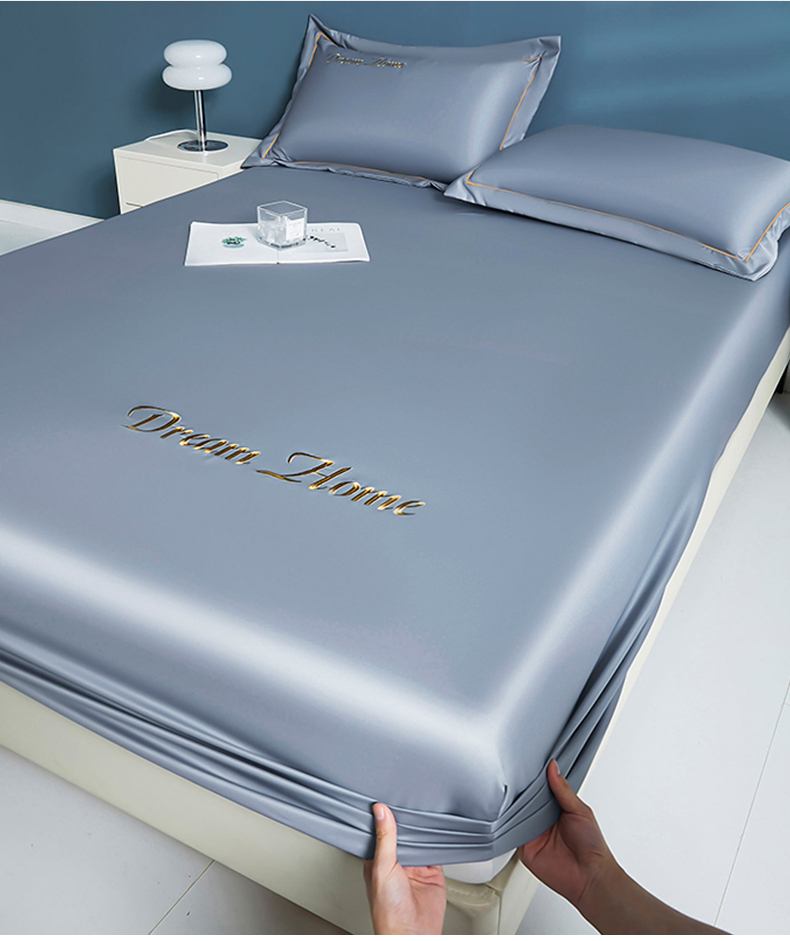 商品名称:七仙女家纺2025新款A类水洗真丝冰丝床笠系列 梦幻家园-静谧兰