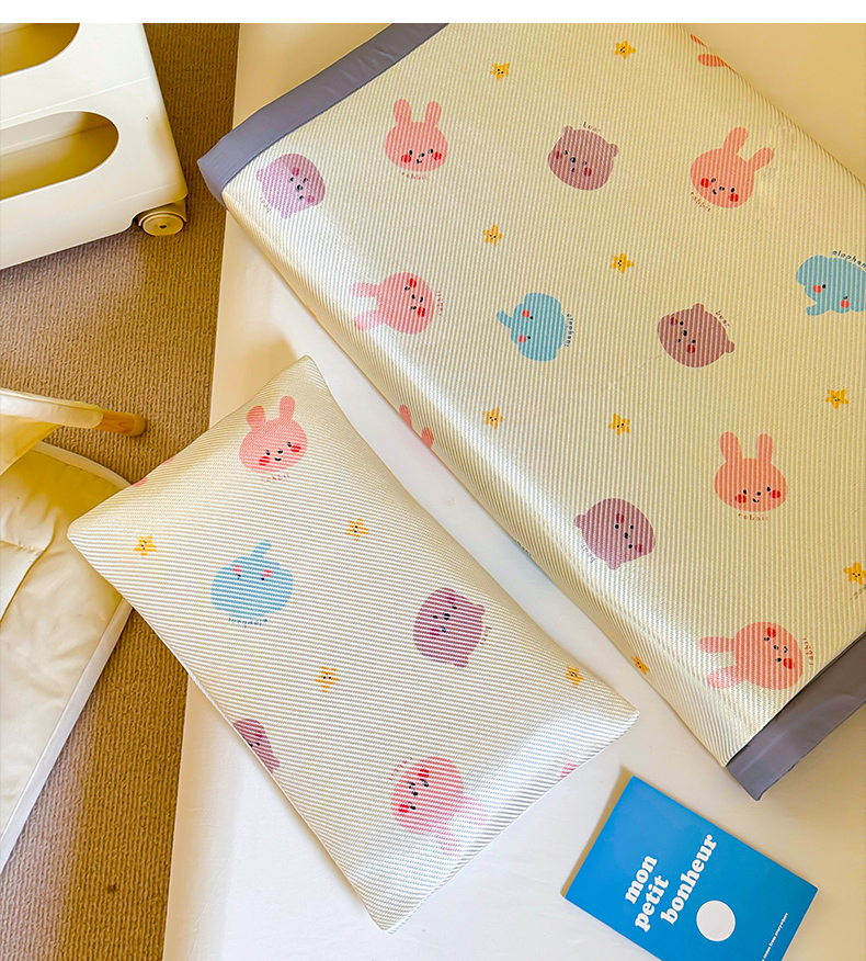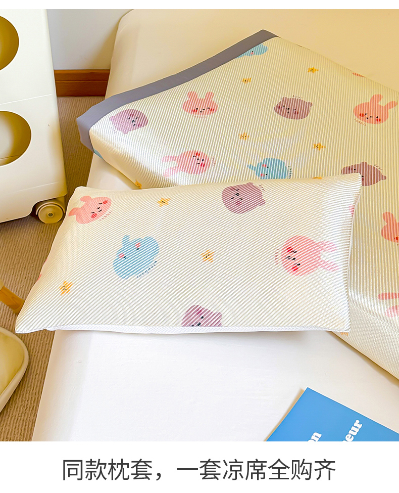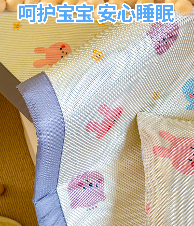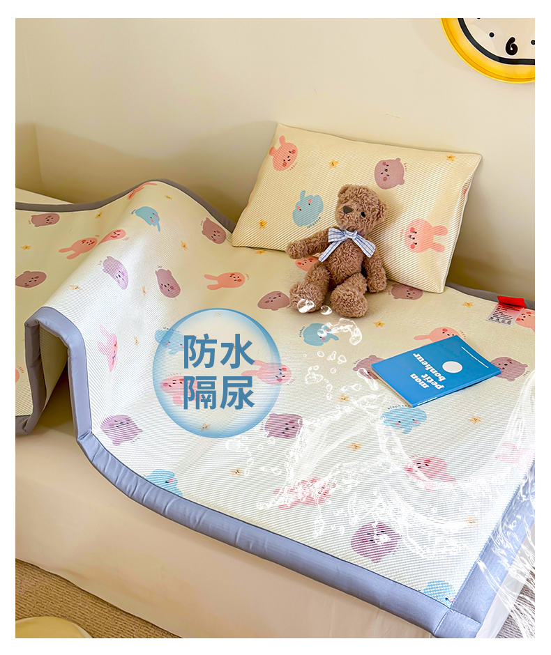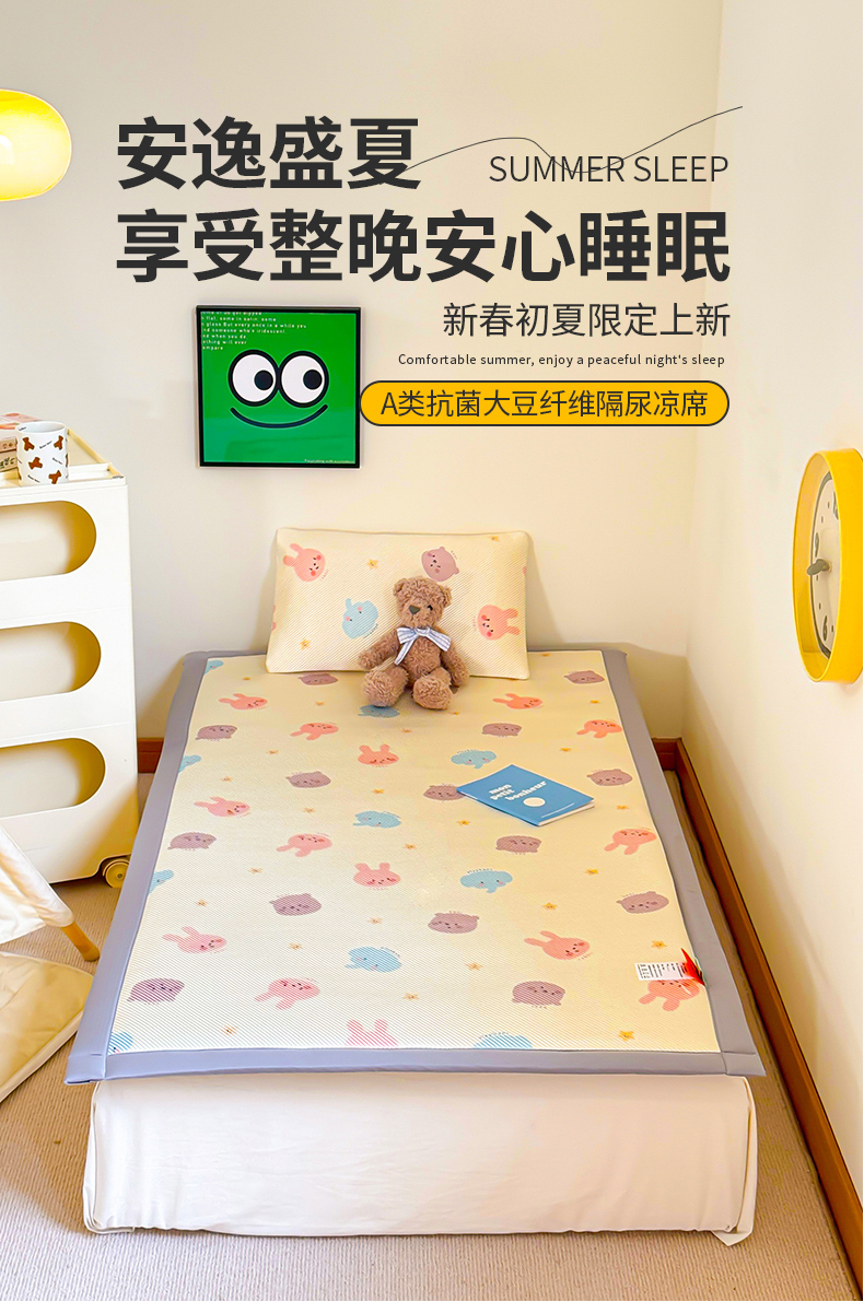 • 91家纺网 家纺一手货源 找家纺 喜多兔儿童家纺 2024新款抗菌大豆纤维隔尿凉席 米色萌趣小动物