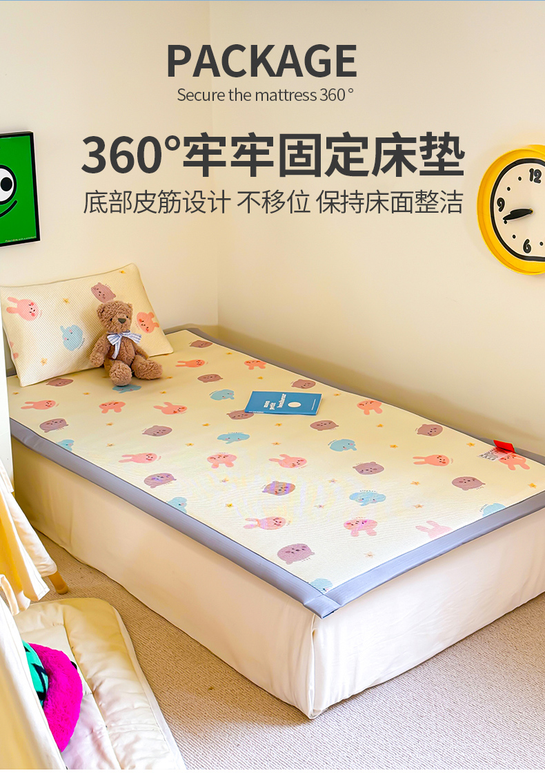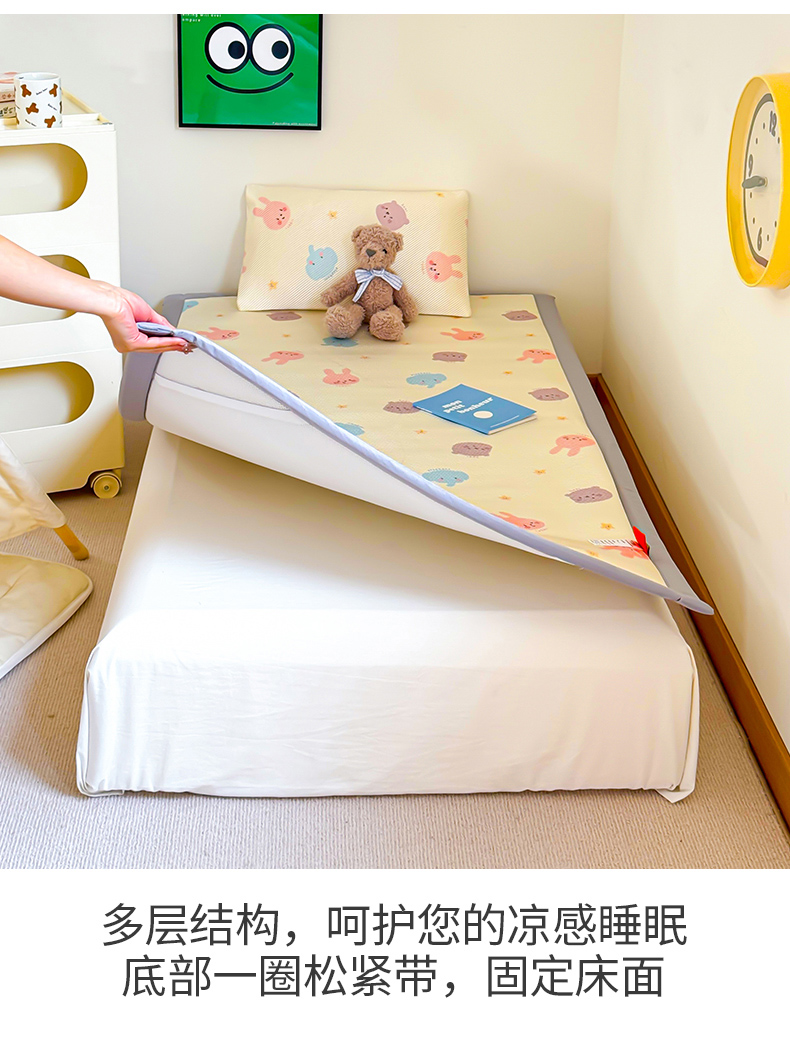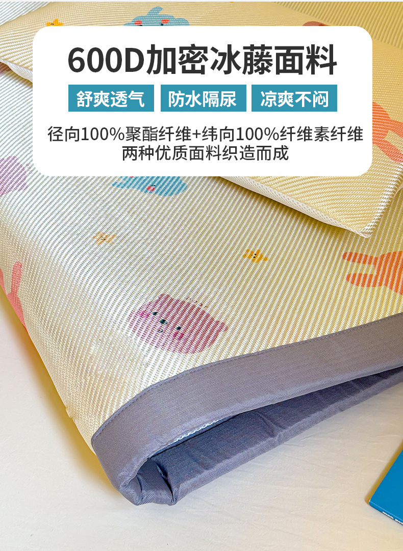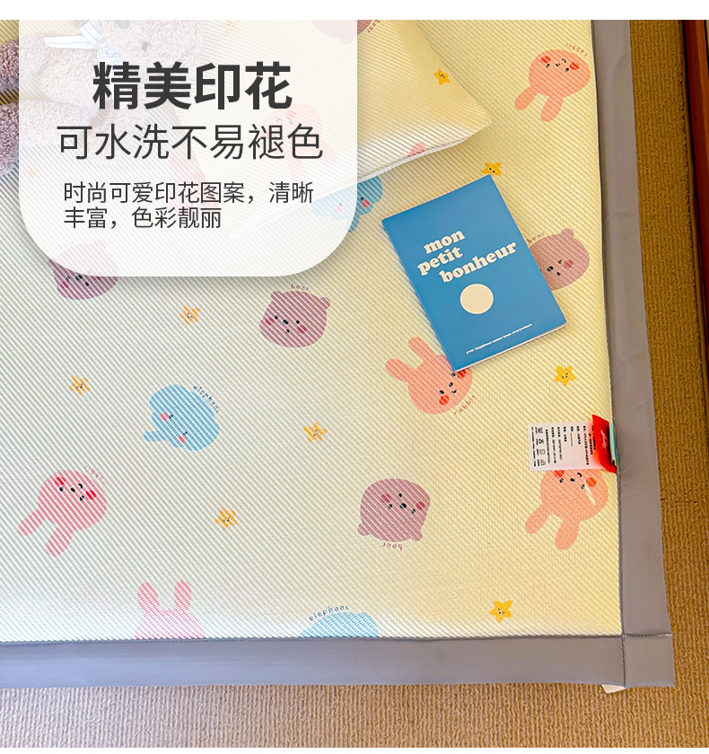 • 91家纺网 家纺一手货源 找家纺 喜多兔儿童家纺 2024新款抗菌大豆纤维隔尿凉席 米色萌趣小动物