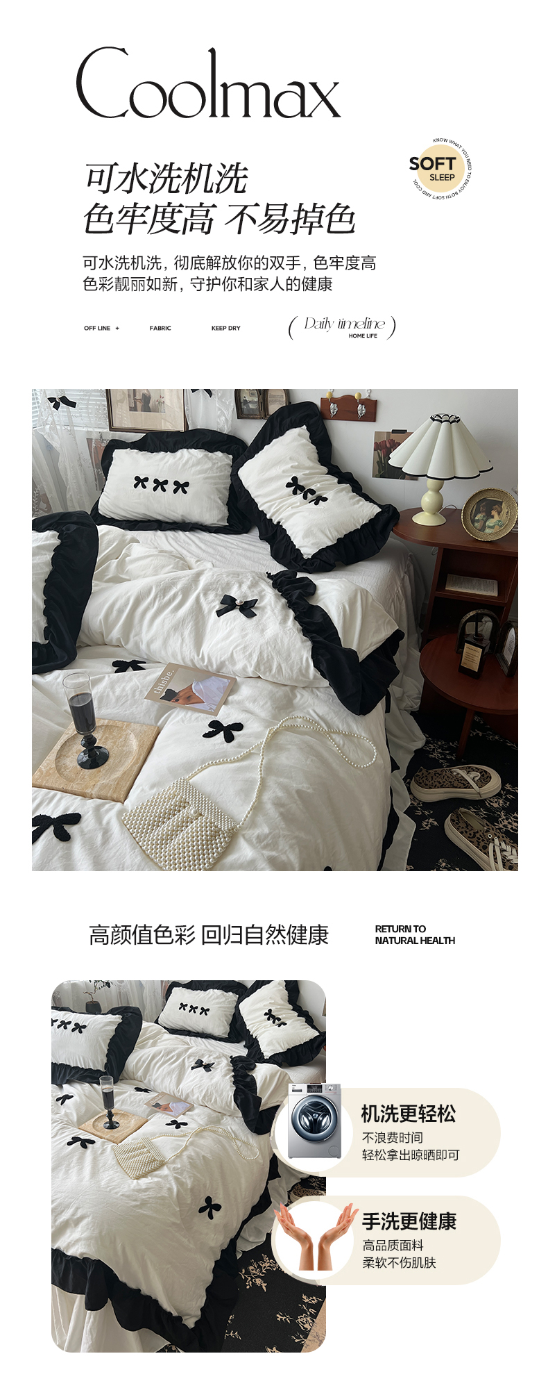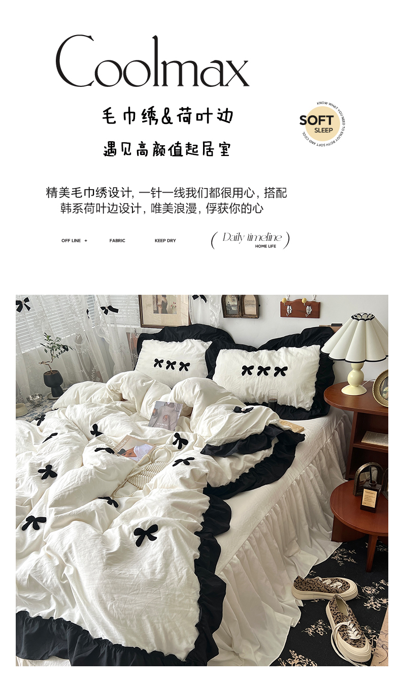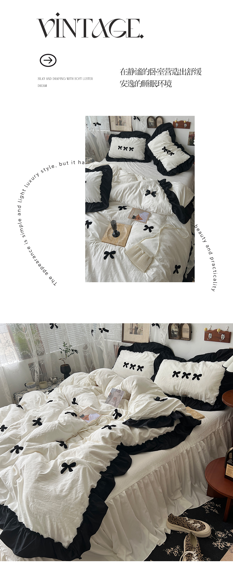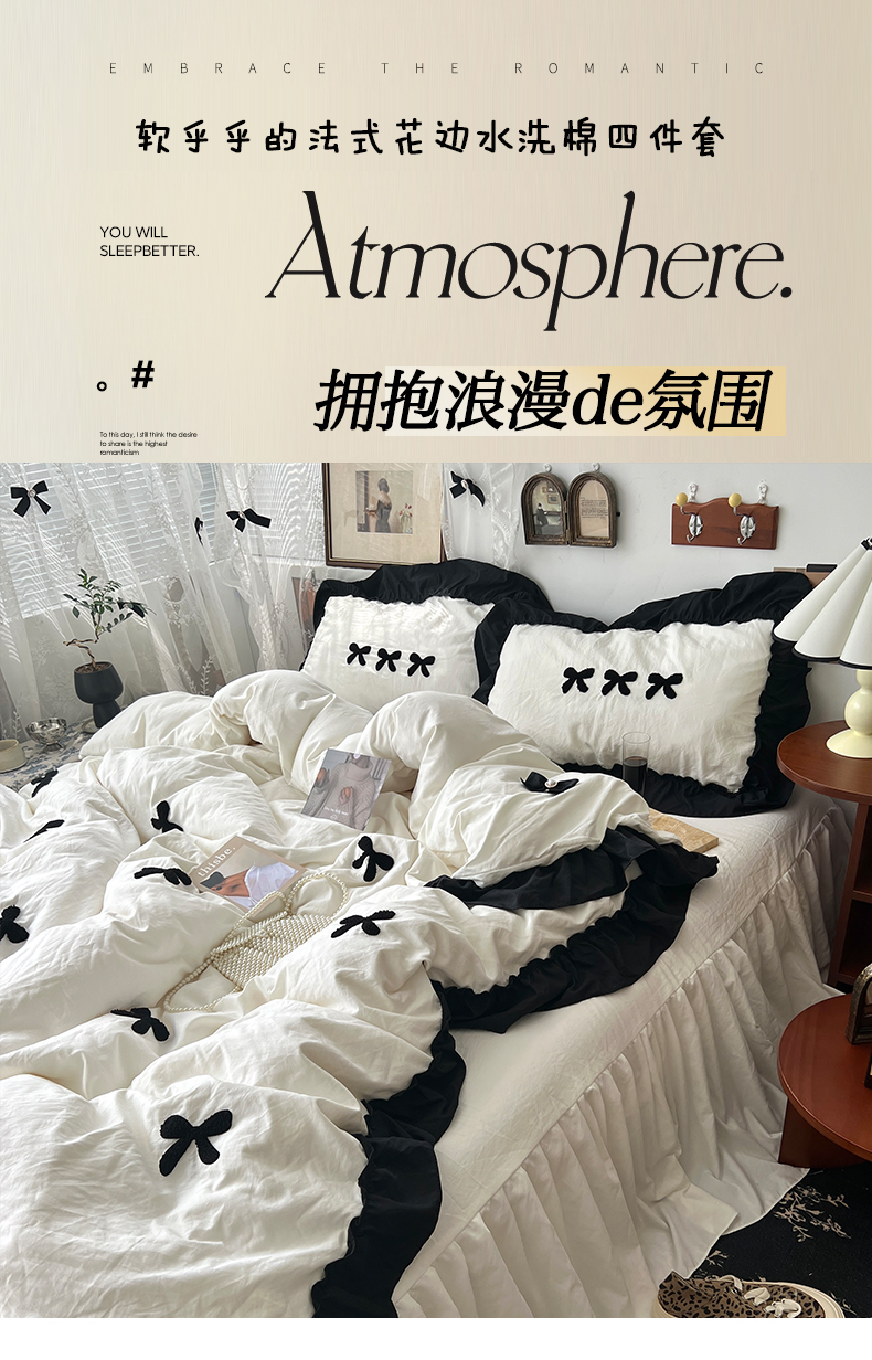 当前位置: 91家纺网 > 商品网购 > 床品套件 > 四件套 > 水洗棉四件套 > 原素 2024新款赫本系列法式花边水洗棉四件套 法式奶白