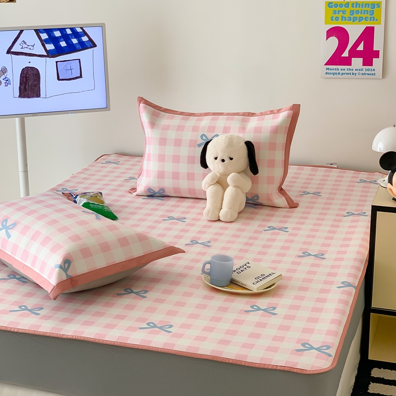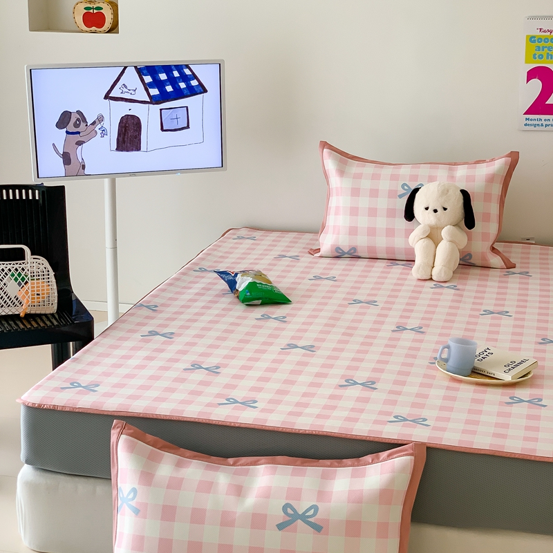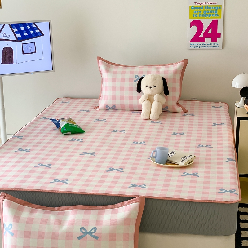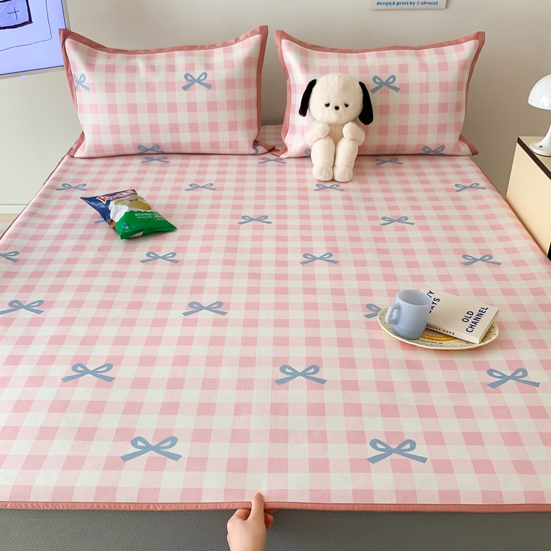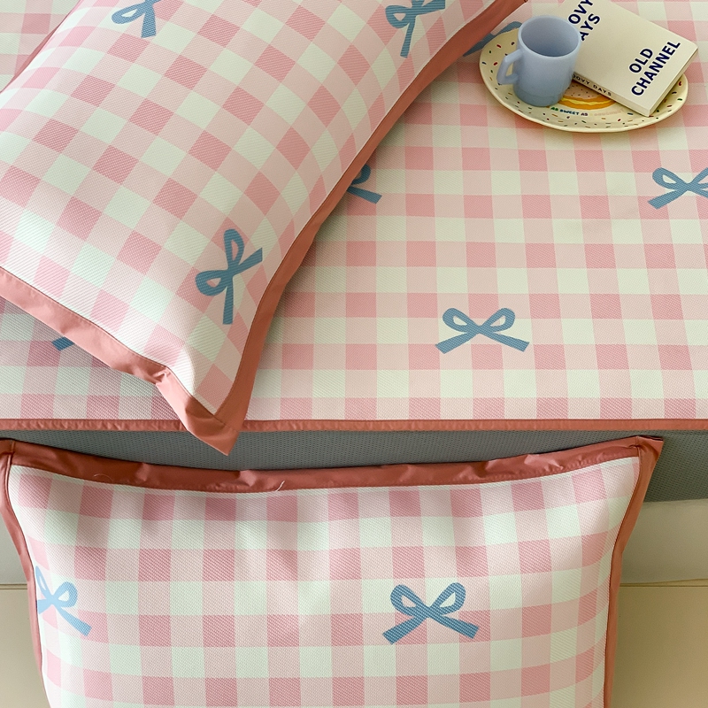 昔可家纺 2024新款冰藤席床笠款--卡通系列 粉蓝格蝴蝶结