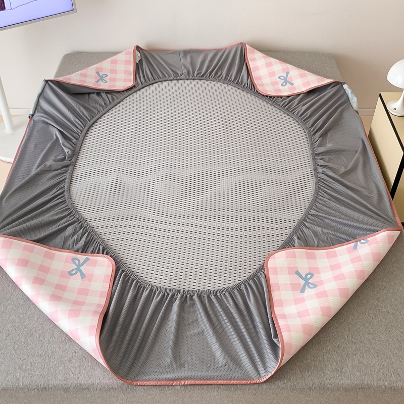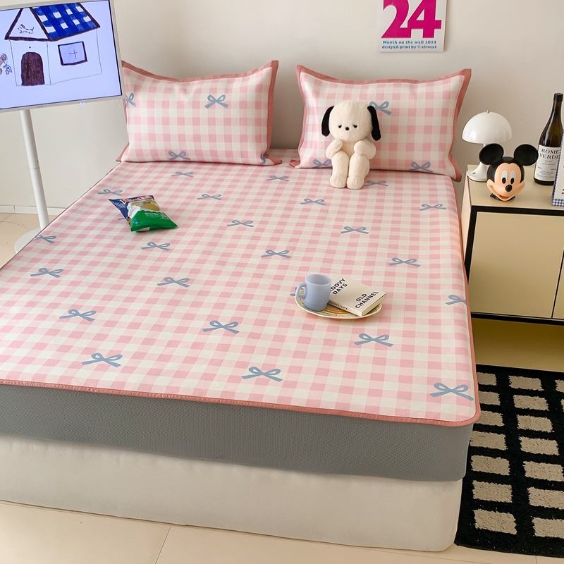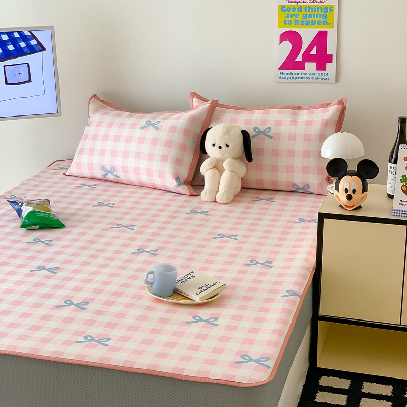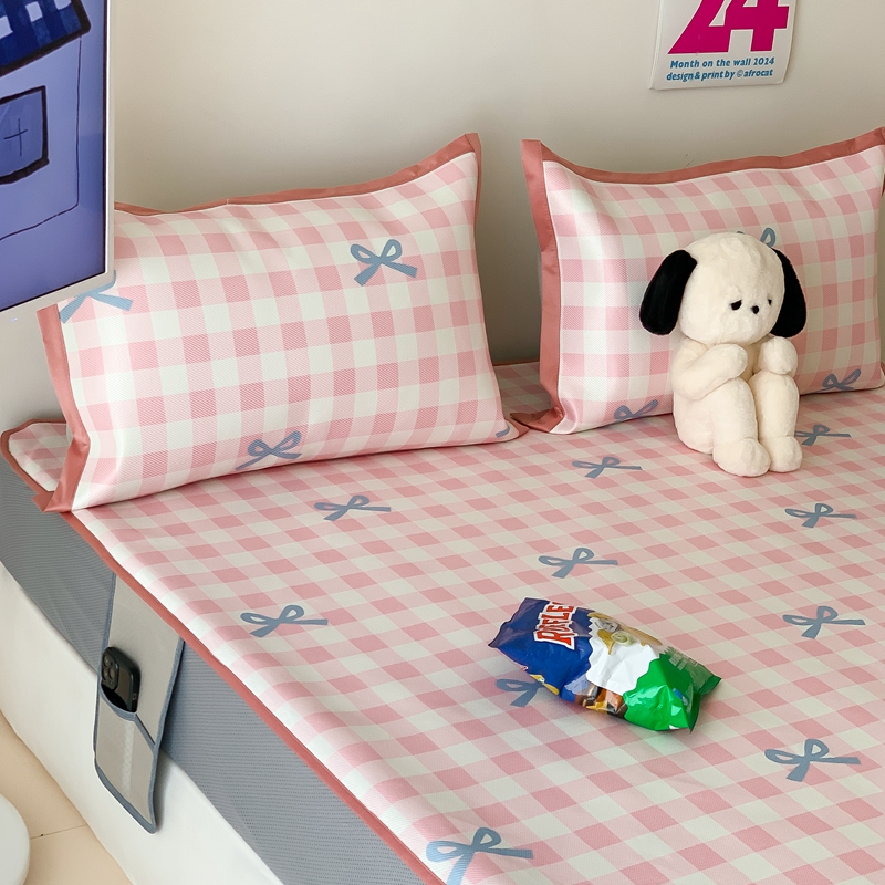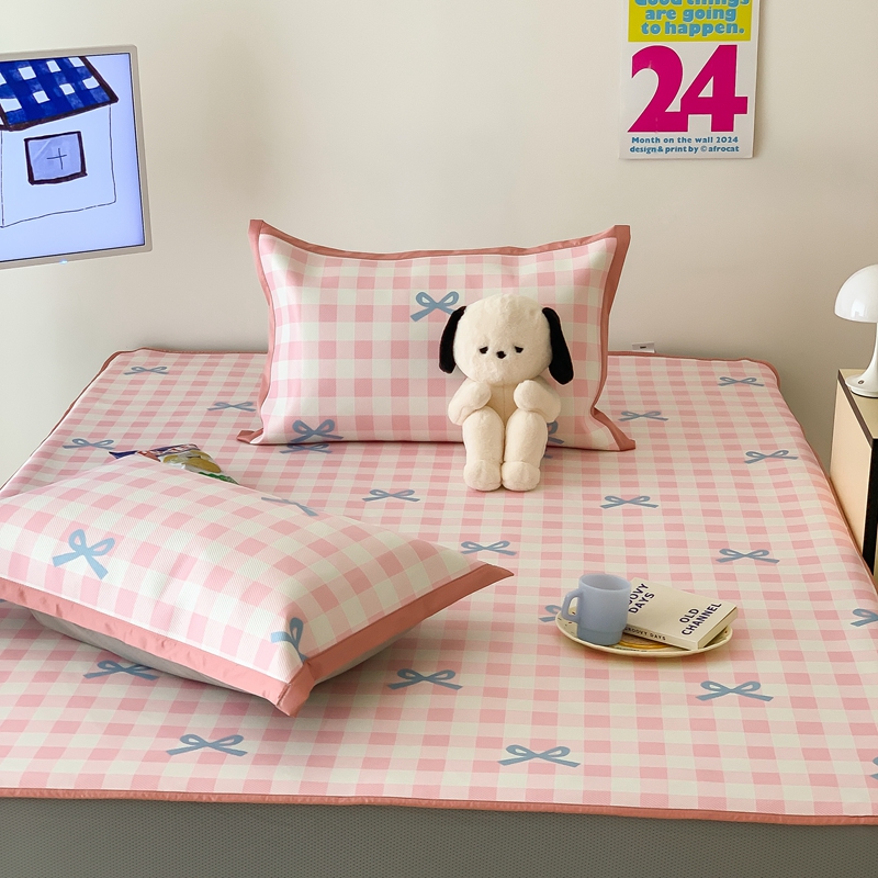 昔可家纺 2024新款冰藤席床笠款--卡通系列 粉蓝格蝴蝶结