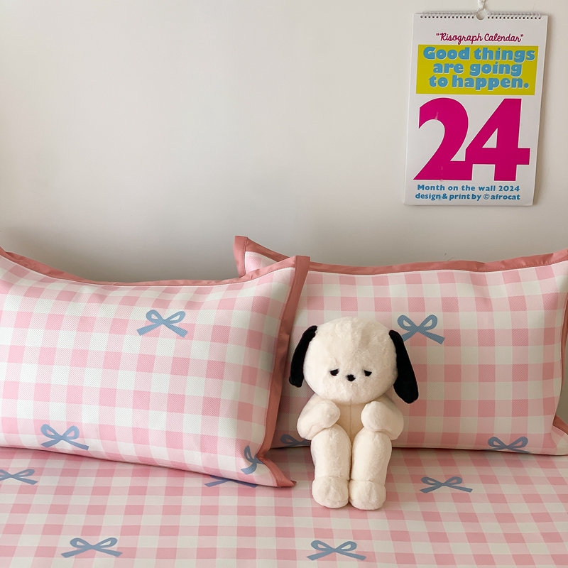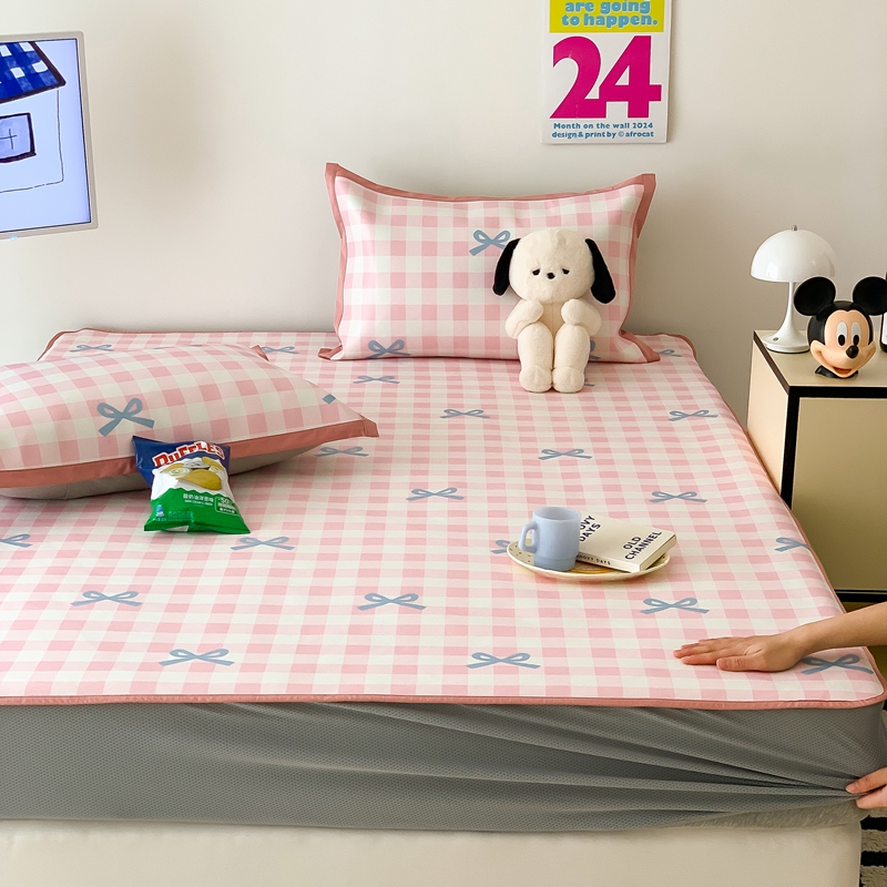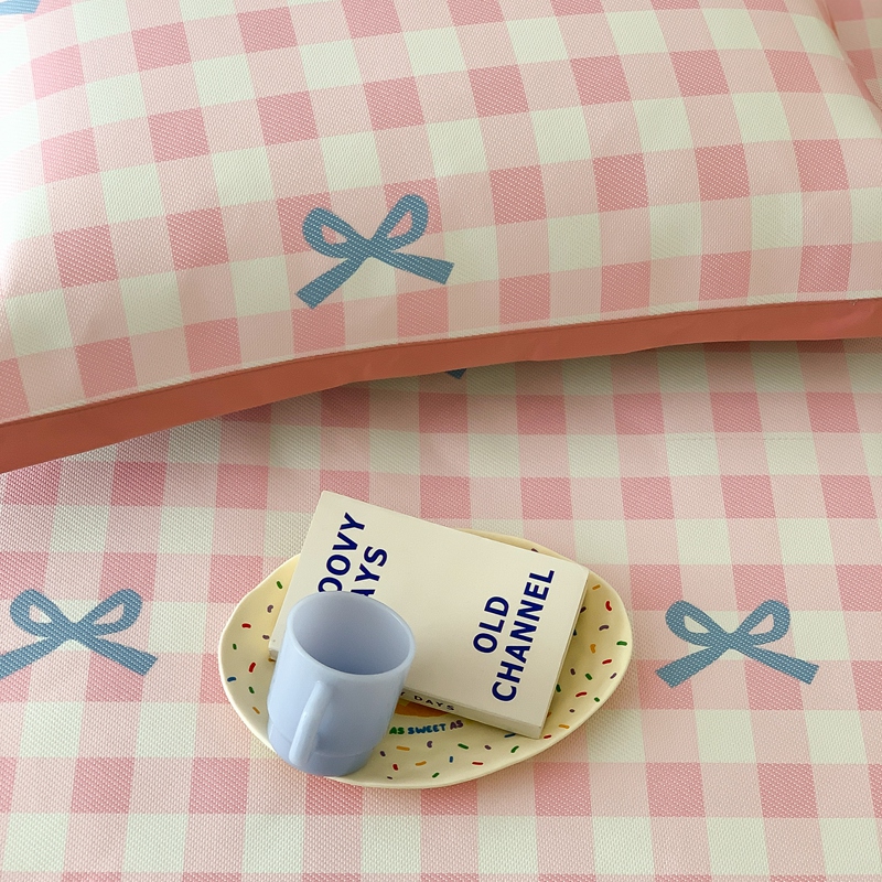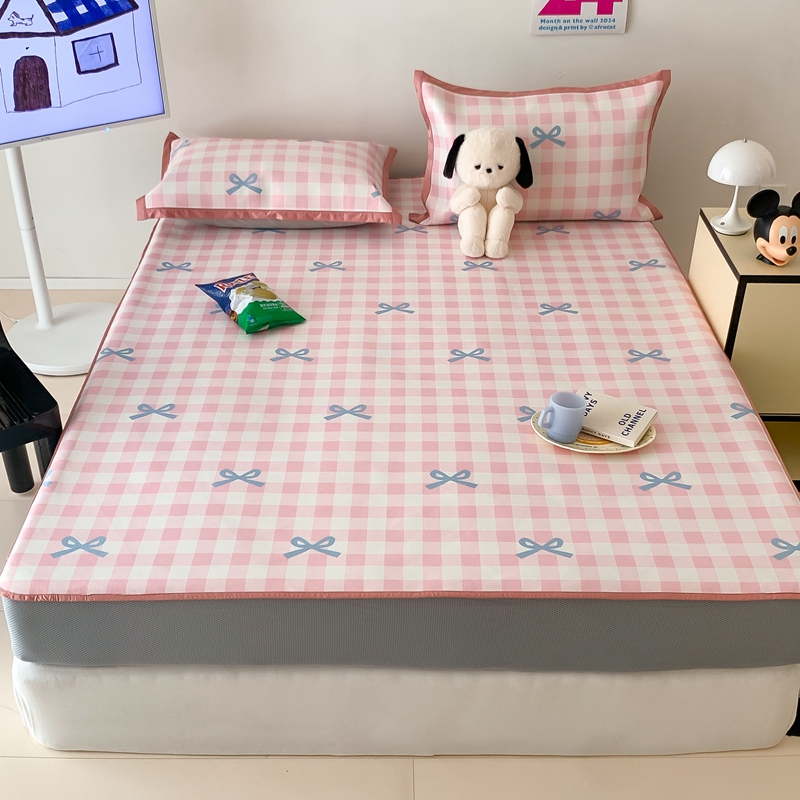商品名称:昔可家纺 2024新款冰藤席床笠款--卡通系列 粉蓝格蝴蝶结