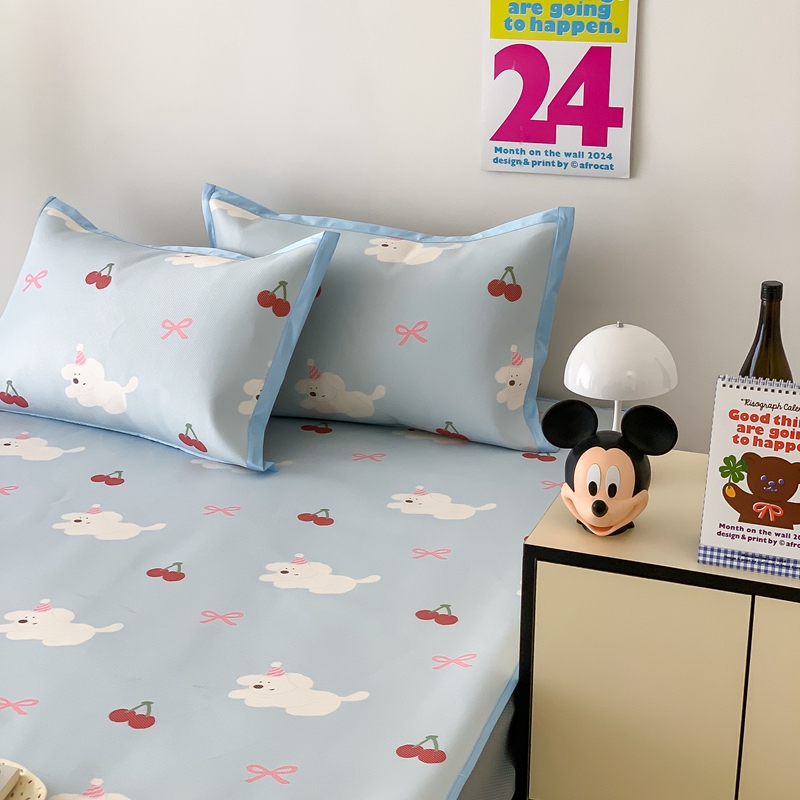 昔可家纺 2024新款冰藤席床笠款--卡通系列 樱桃狗狗