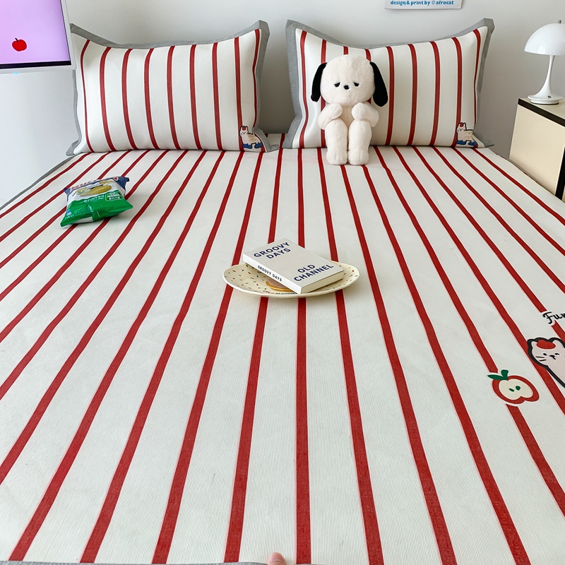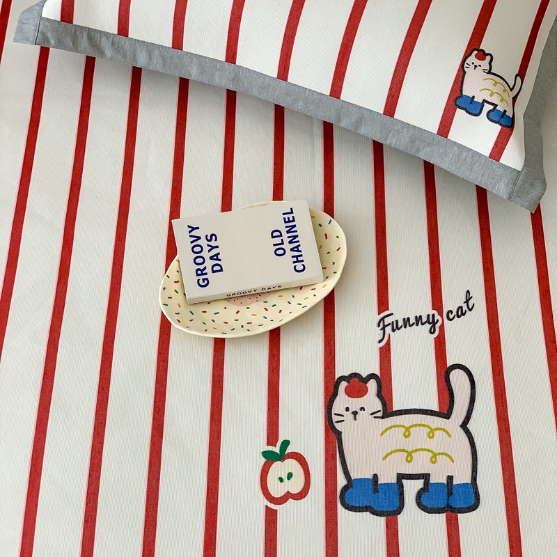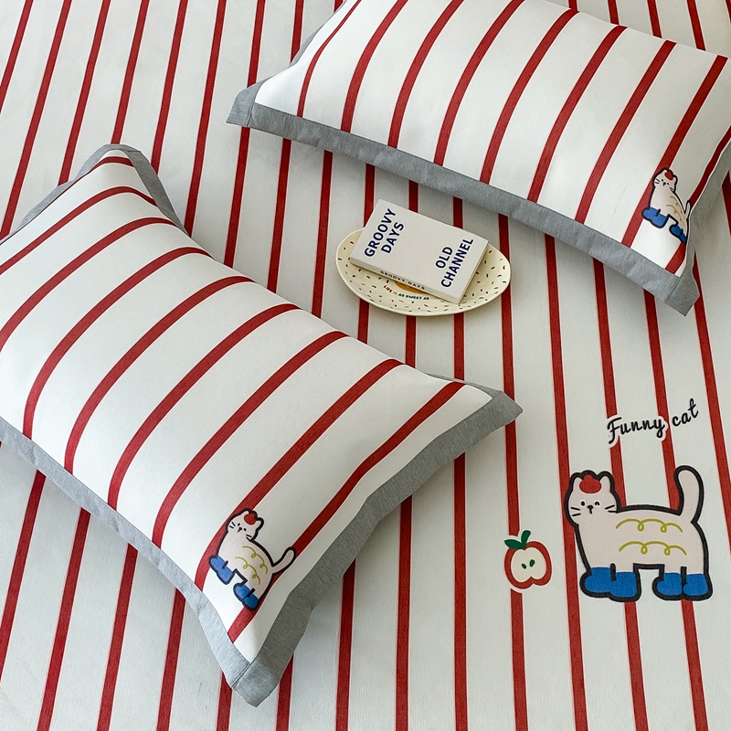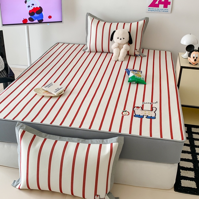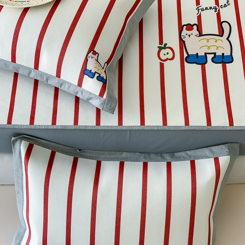 商品名称:昔可家纺 2024新款大版数码印花冰藤席床笠款 苹果猫咪