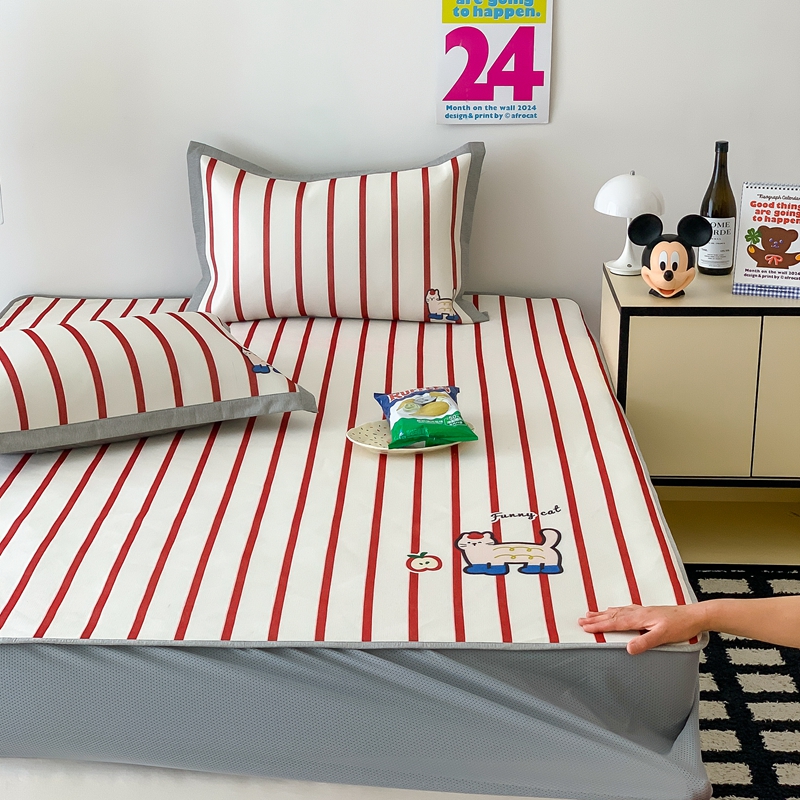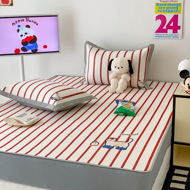 昔可家纺 2024新款大版数码印花冰藤席床笠款 苹果猫咪