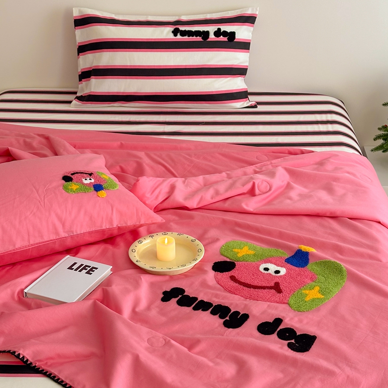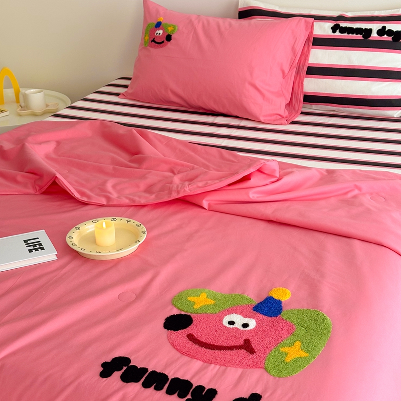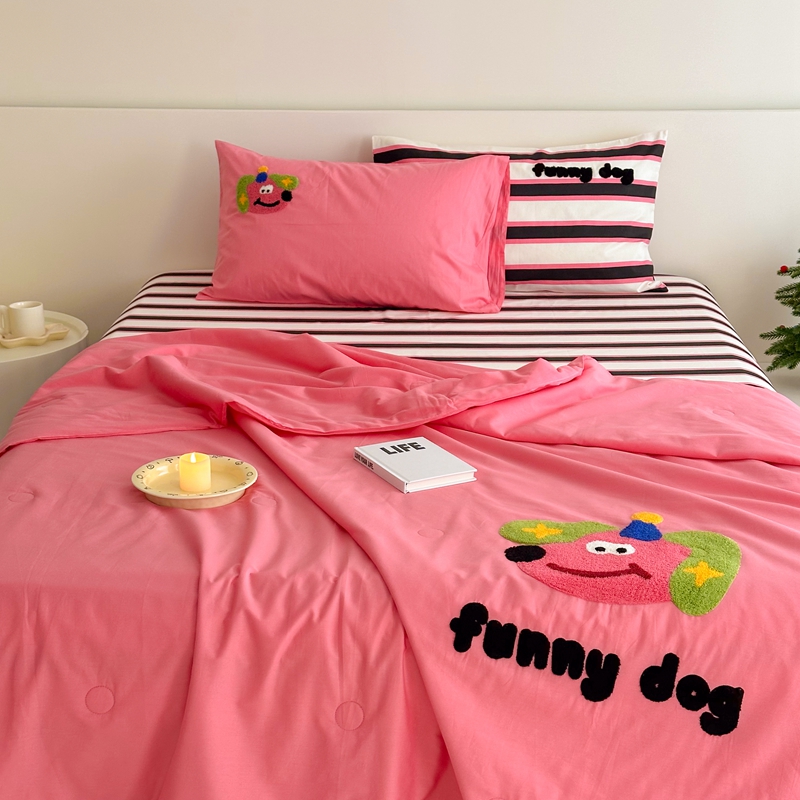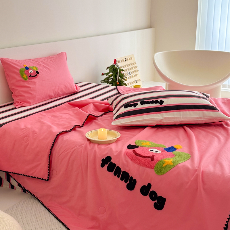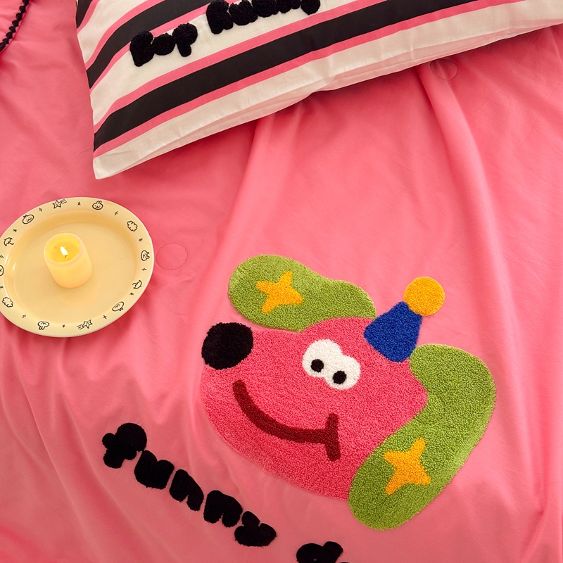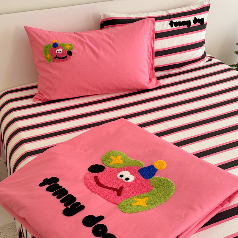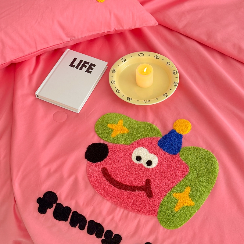 商品名称:珺柔家纺 2024新款毛巾绣三角针夏被四件套 皮皮狗红