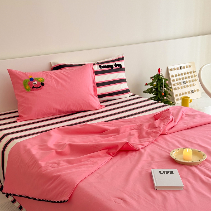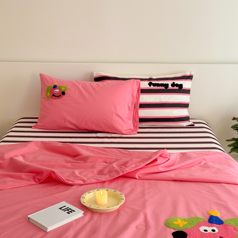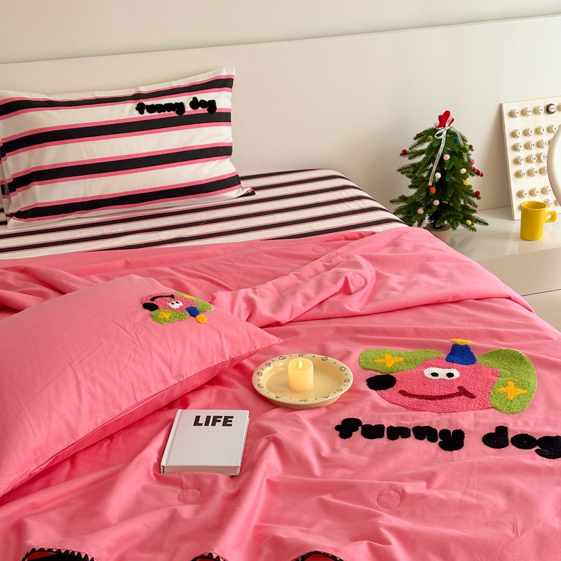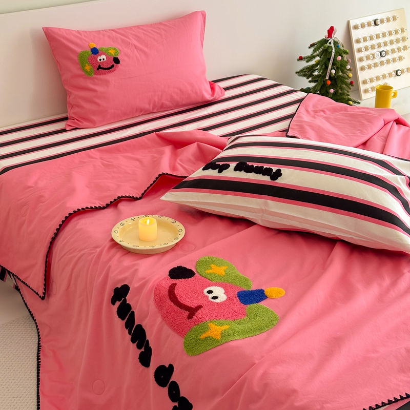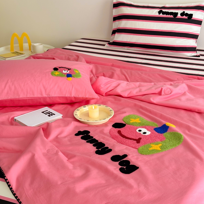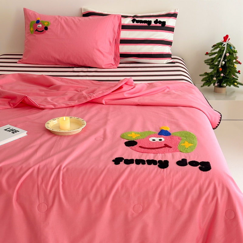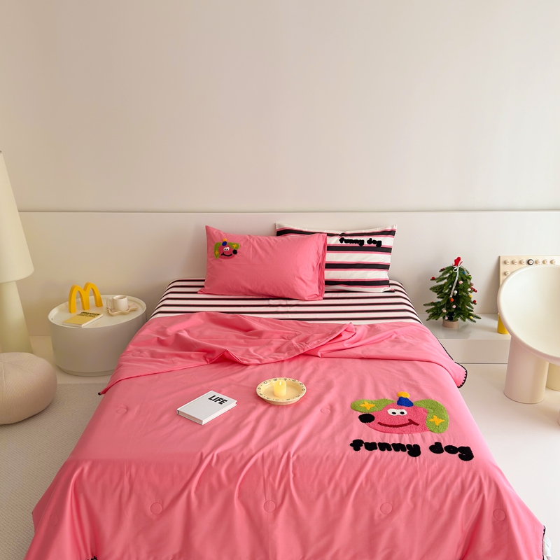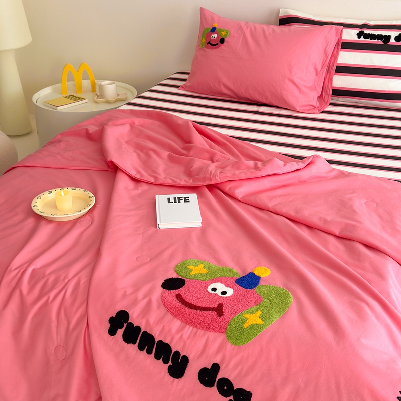 商品名称:珺柔家纺 2024新款毛巾绣三角针夏被四件套 皮皮狗红