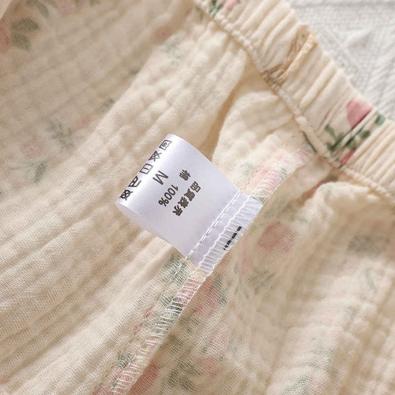 商品名称:洛兰沙家居馆【只代发】【只代发】 2024新款温柔女碎花纯棉棉纱宽松双层纱布家居服半袖长裤三件套 玫瑰花园