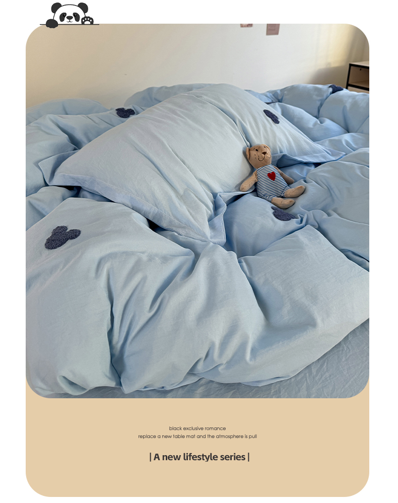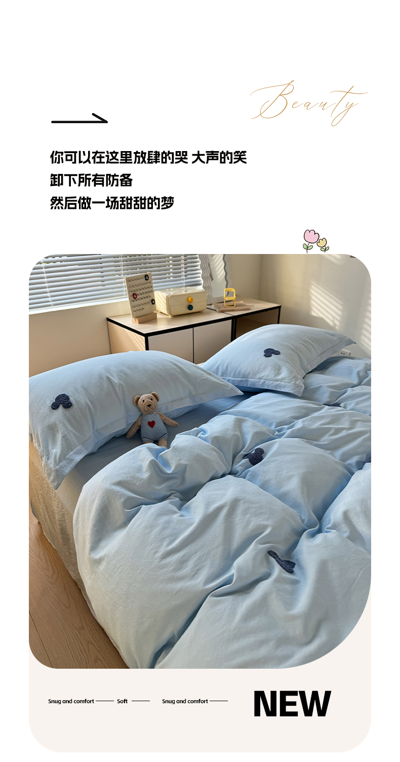(总)布可家纺 2025新款小清新卡通时尚印花水洗棉四件套,爱心豹纹,饼干熊,可可猫咪,蓝枝兔,落日玫瑰,泡芙狗,少女日记,小狗总动员,小猫碎语