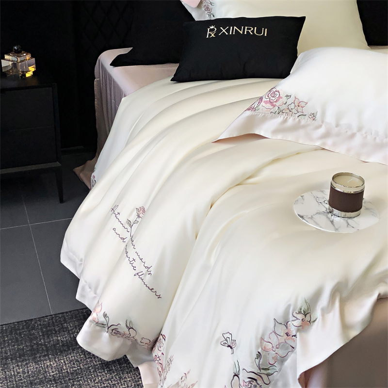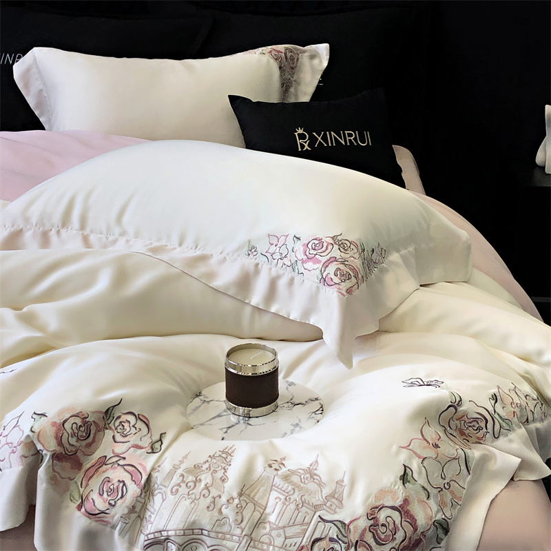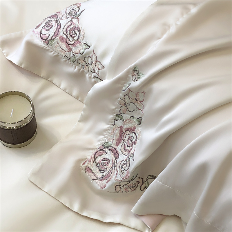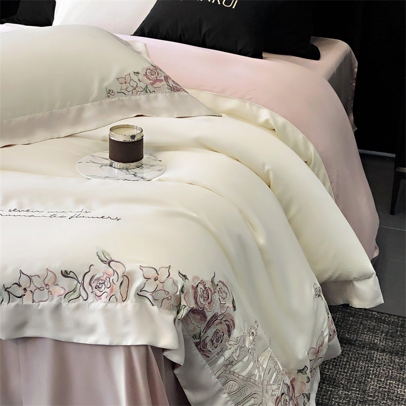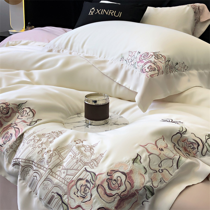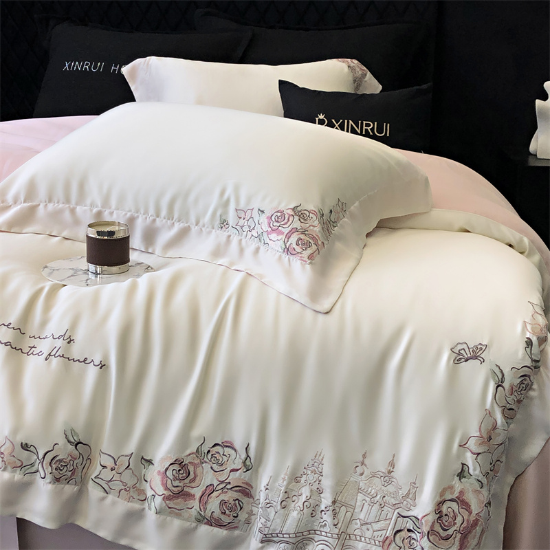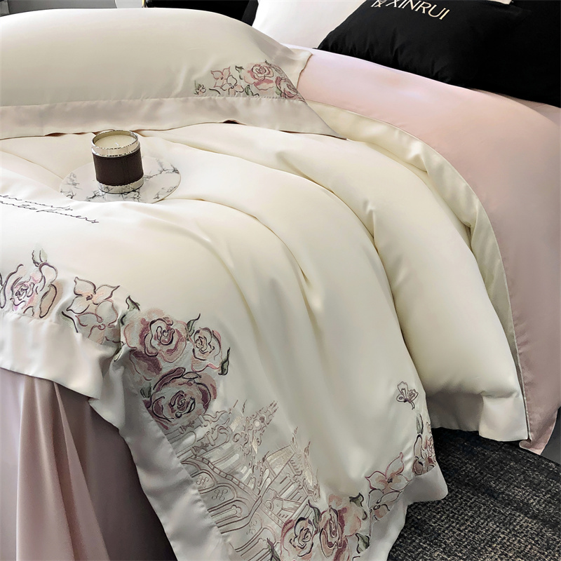 当前位置: 91家纺网 > 商品网购 > 床品套件 > 四件套 > 莱赛尔四件套 > 馨蕊家居 2024新款80s兰精天丝刺绣四件套-洛克庄园 天丝洛克庄园 -粉白