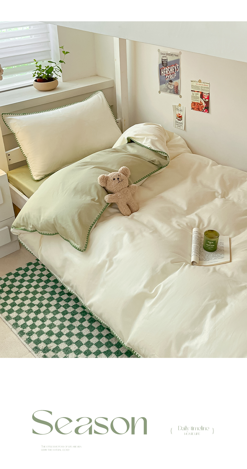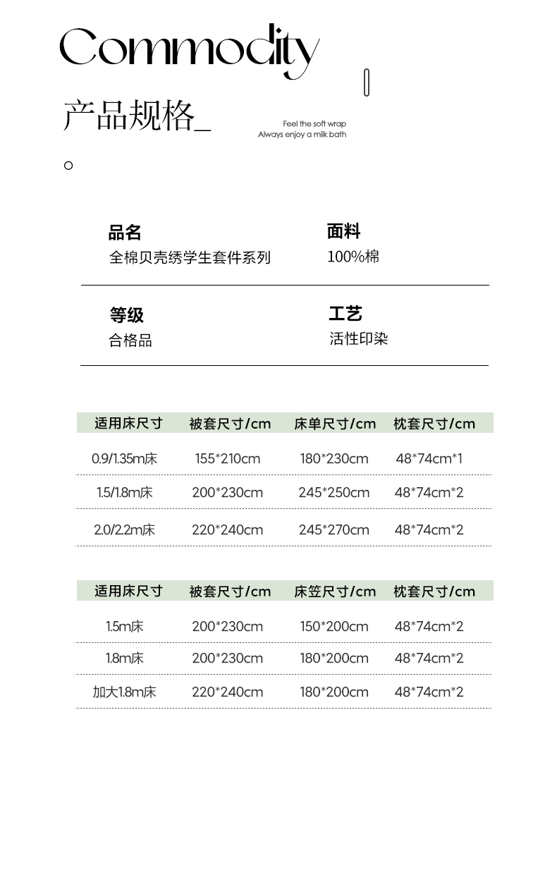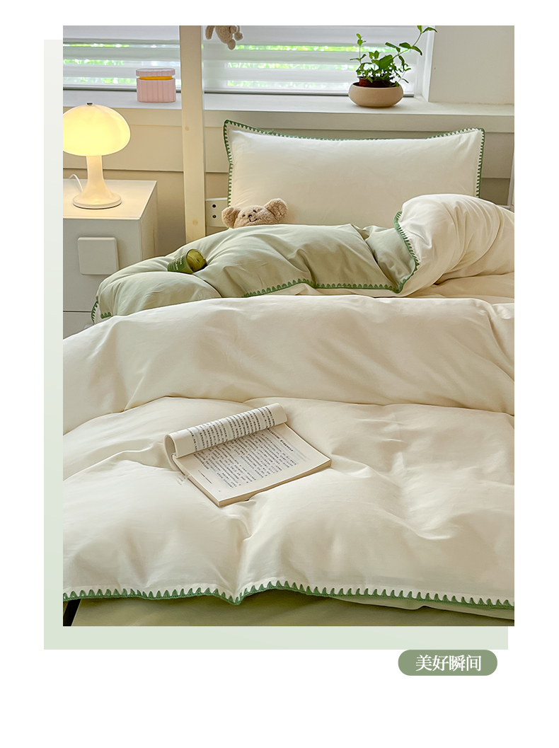 当前位置: 91家纺网 > 商品网购 > 床品套件 > 四件套 > 全棉普通四件套 > 莱登卡奴 2025新款全棉13374贝壳绣学生三件套四件套套件系列 贝壳绣-奶白拼抹茶绿