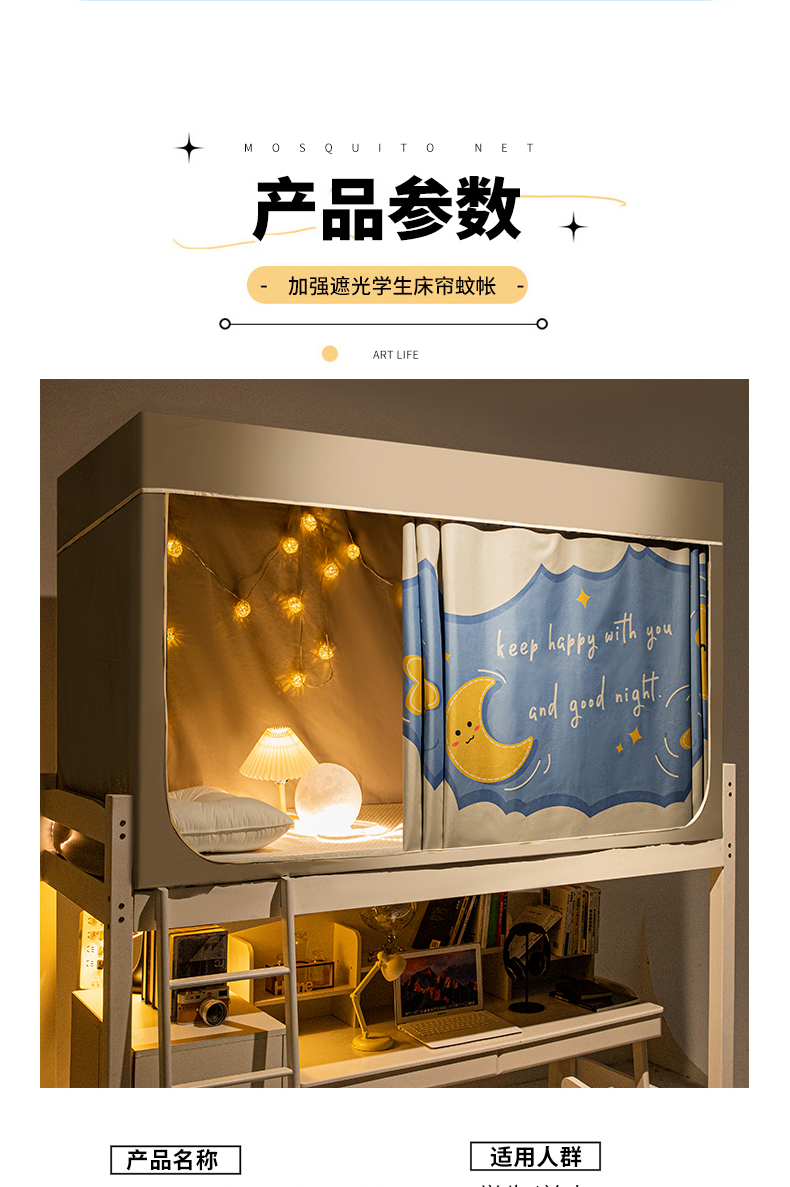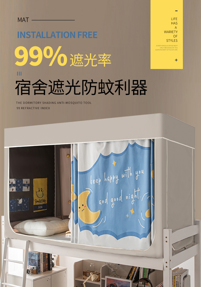 当前位置: 91家纺网 > 商品网购 > 床上用品 > 蚊帐 > 学生蚊帐 > 宅部落 2024新款学生床帘宿舍上下铺床帘式印花强遮光学生蚊帐 晚安