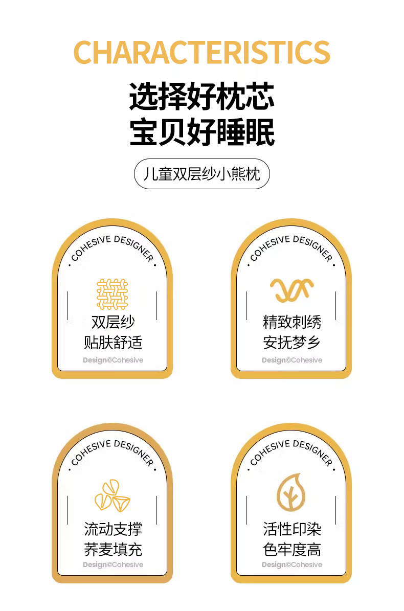 商品名称:(总)织布人 2024新款荞麦枕儿童学生卡通全棉双层纱富贵熊荞麦枕头枕芯