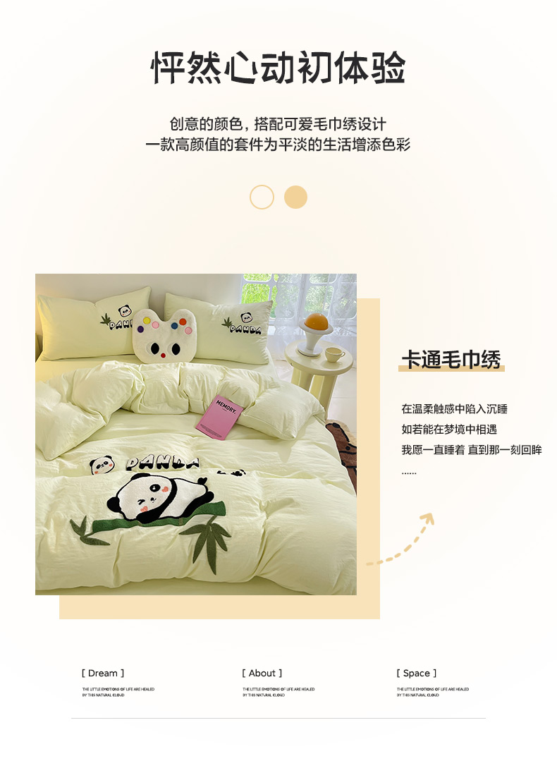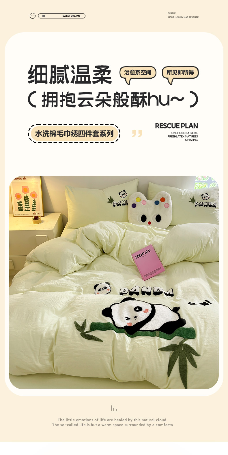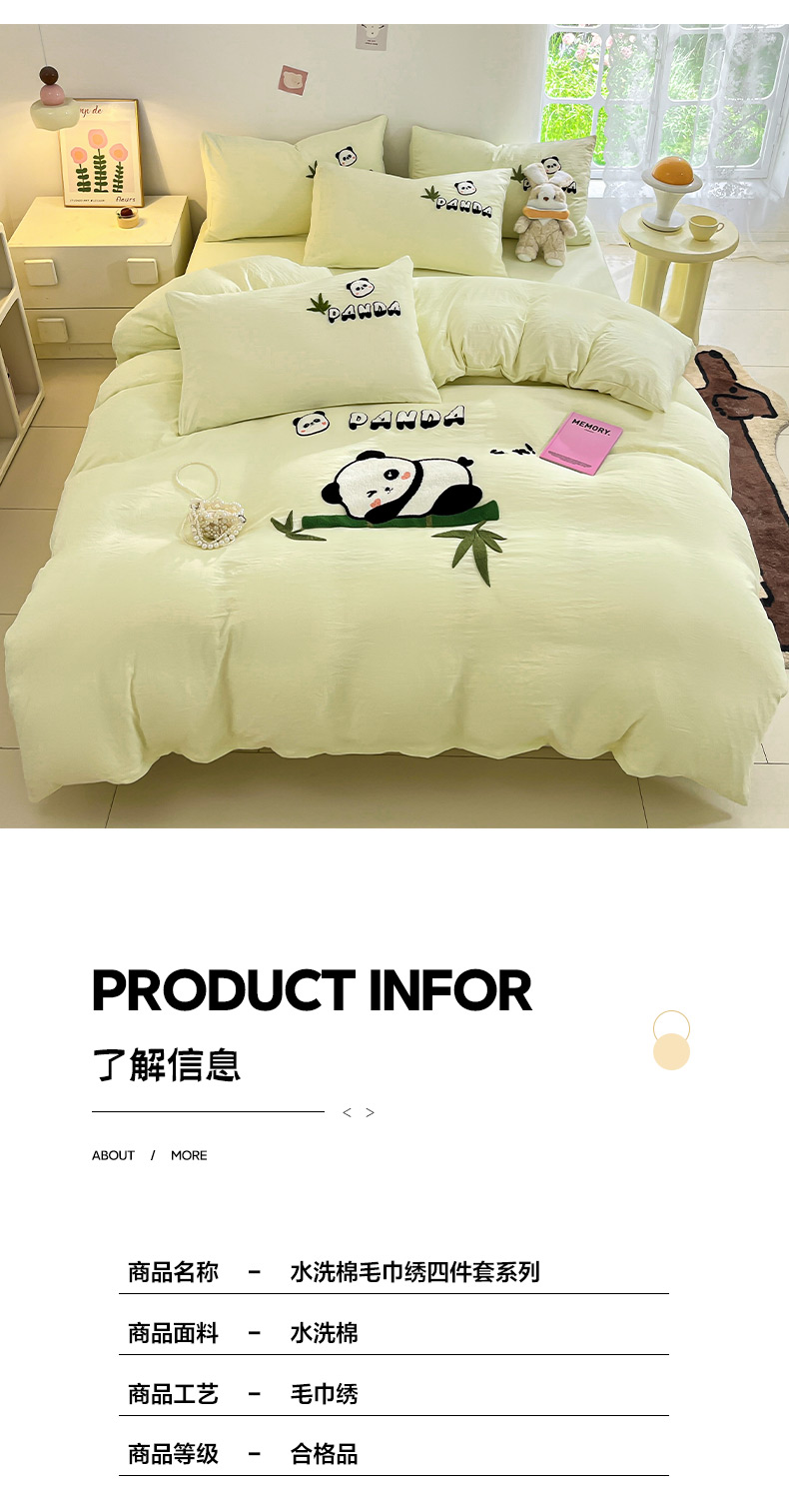 当前位置: 91家纺网 > 商品网购 > 床品套件 > 四件套 > 水洗棉四件套 > 卡迪熊家纺 2024新款水洗m毛巾绣四件套系列 翠竹熊猫