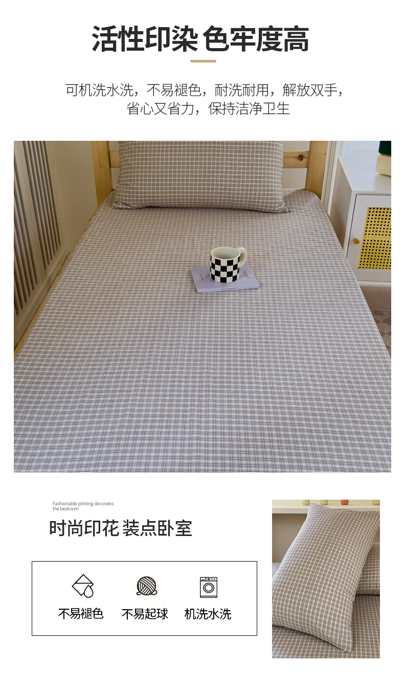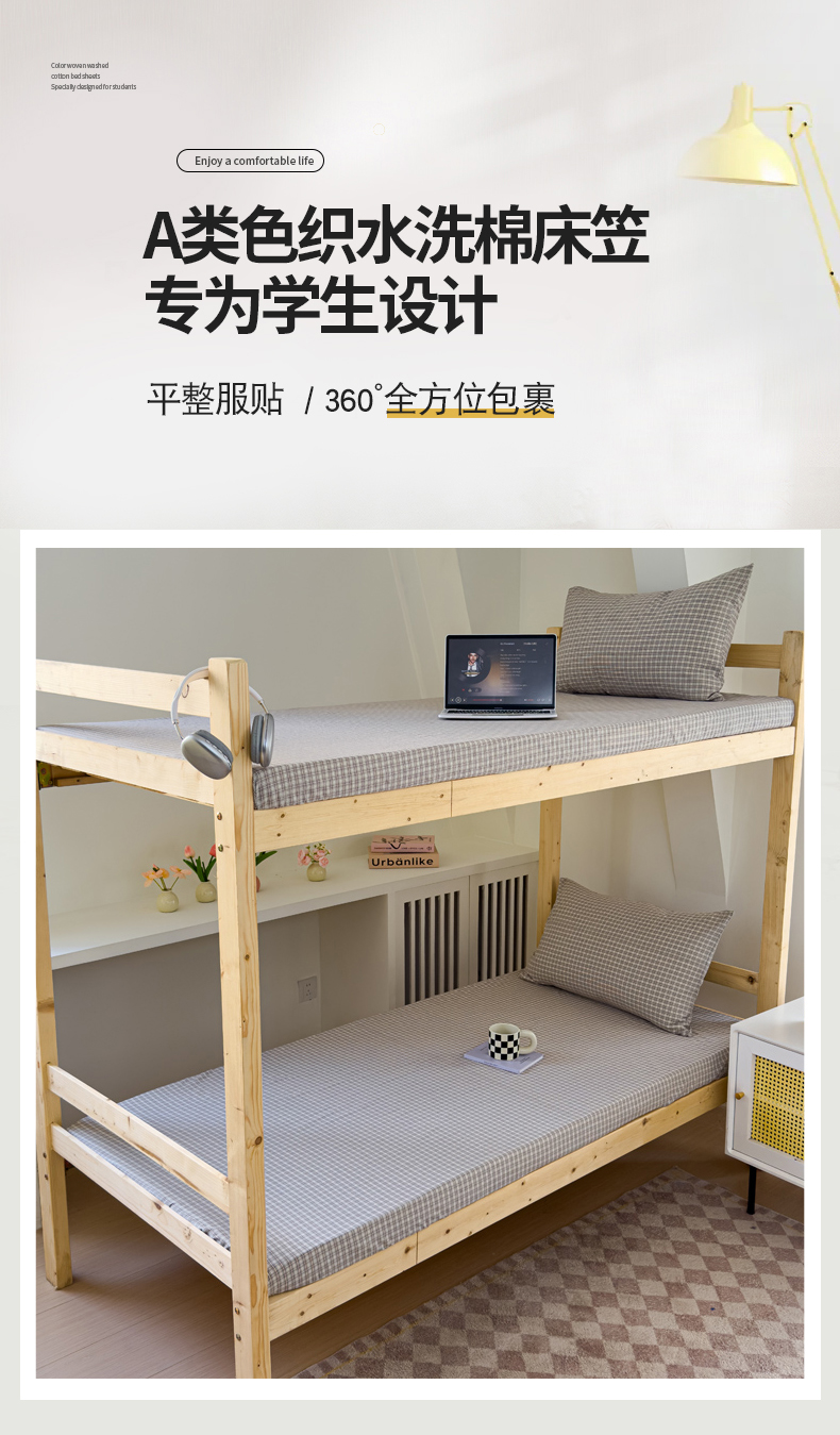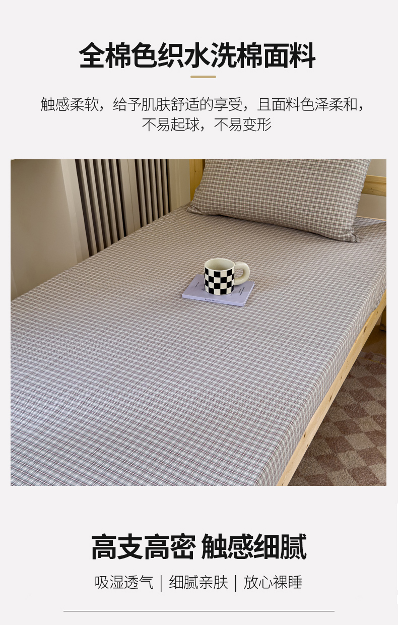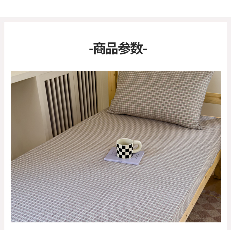 金丝鸟家纺 2024新款A类全棉色织水洗棉单床笠系列(学生床) 浅绿红条田格