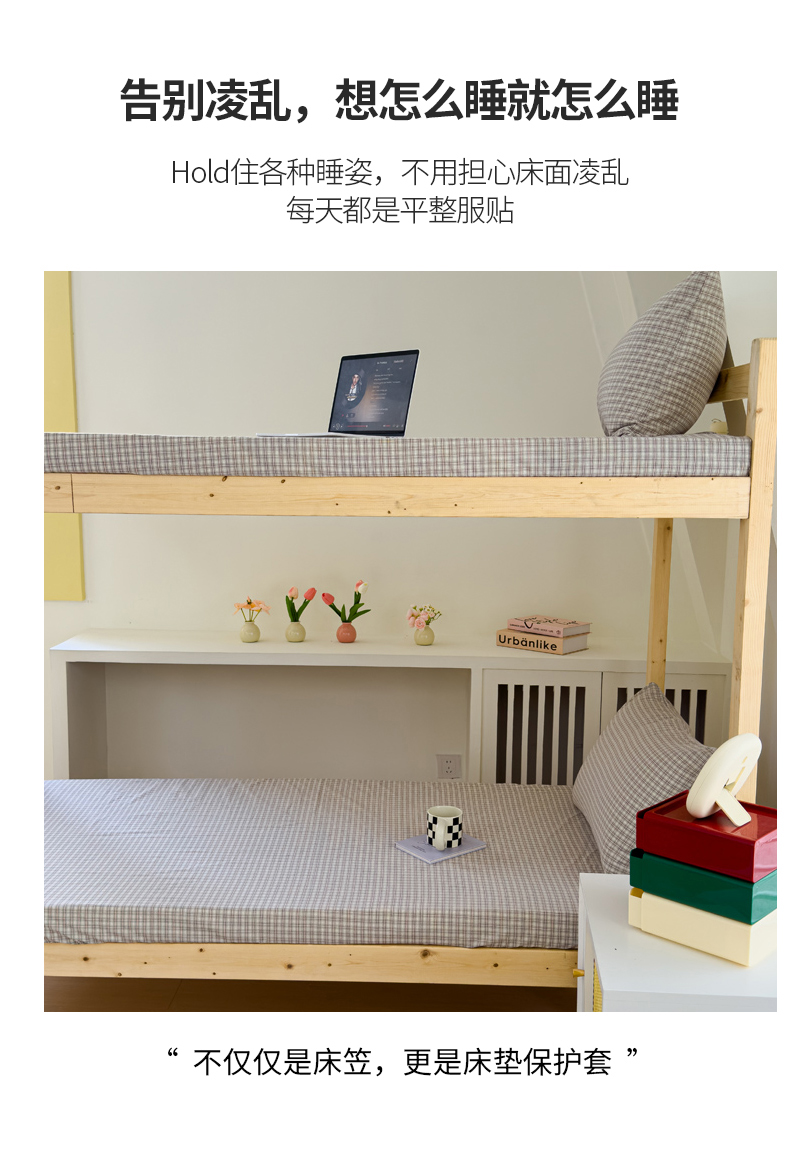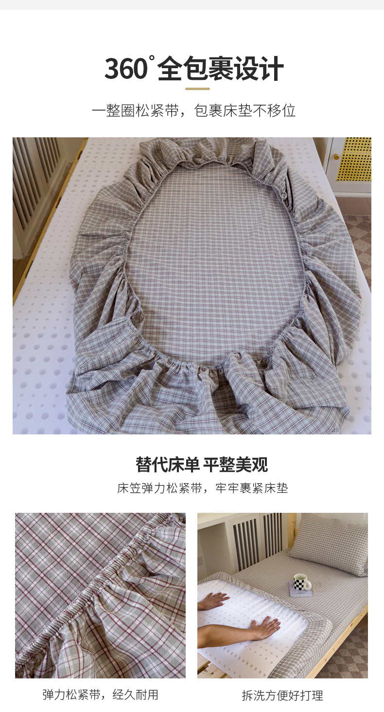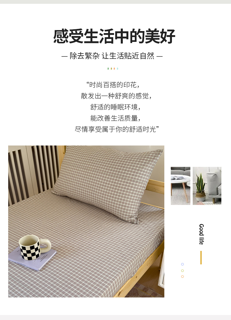 金丝鸟家纺 2024新款A类全棉色织水洗棉单床笠系列(学生床) 浅绿红条田格
